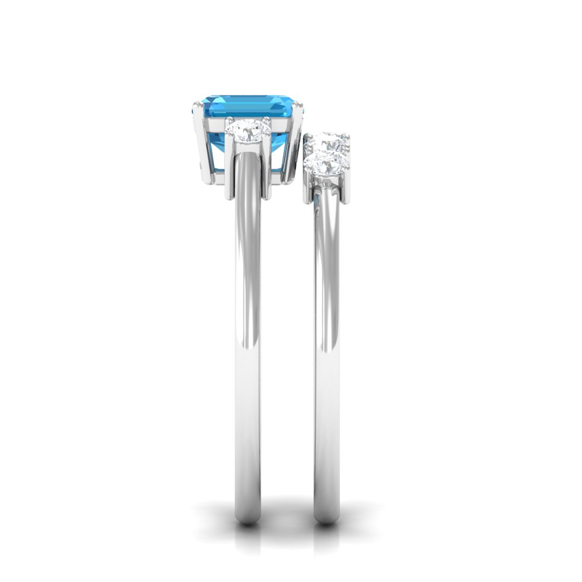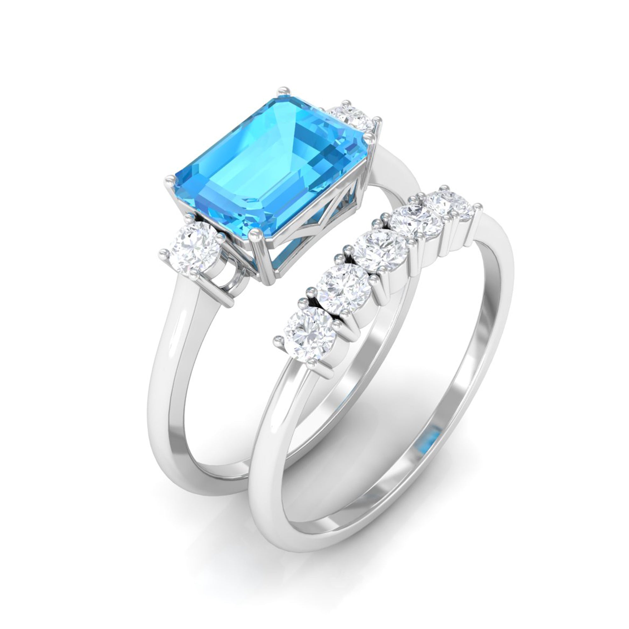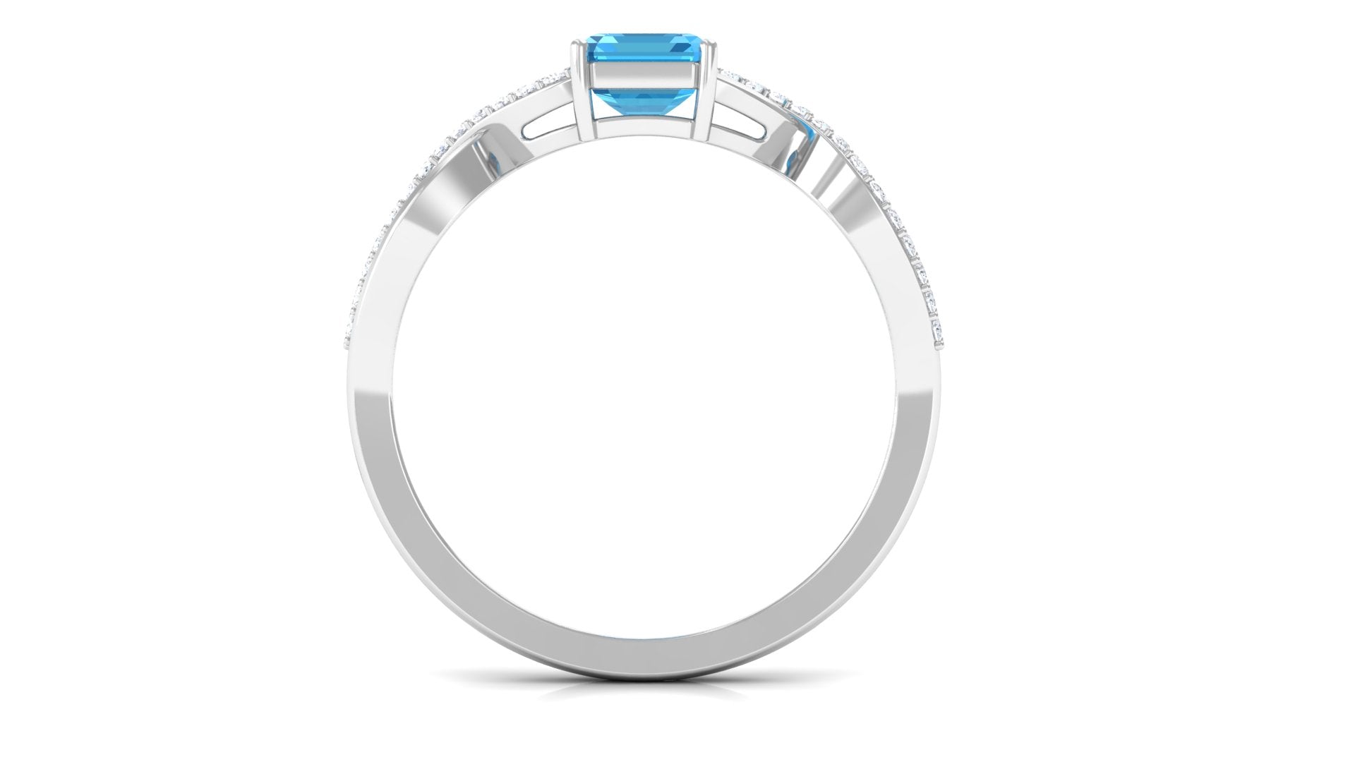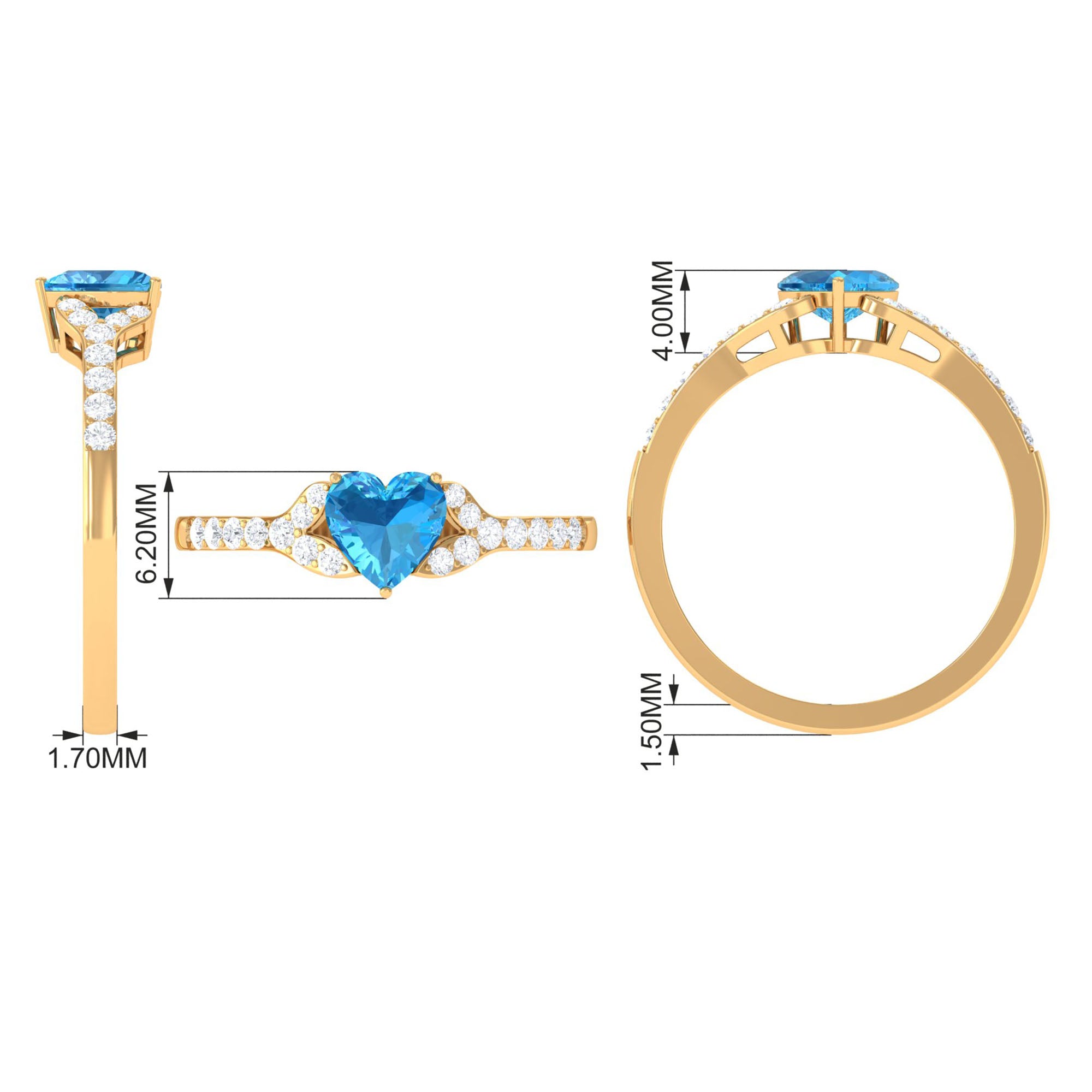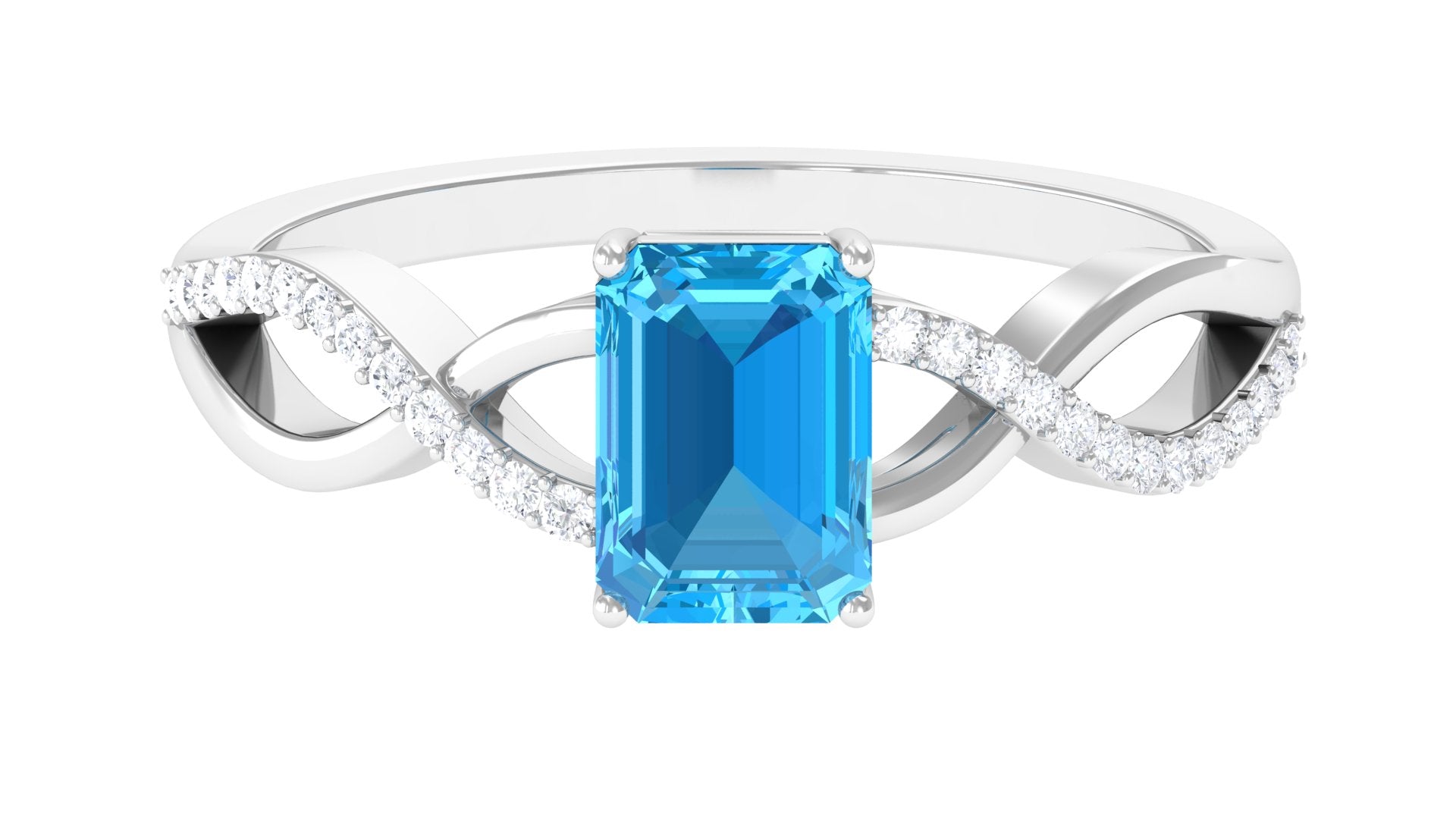 • Color: The color specific to Swiss blue topaz engagement rings is defined by bright and light shades falling in the mid-range of London Blue to Sky Blue Topaz.