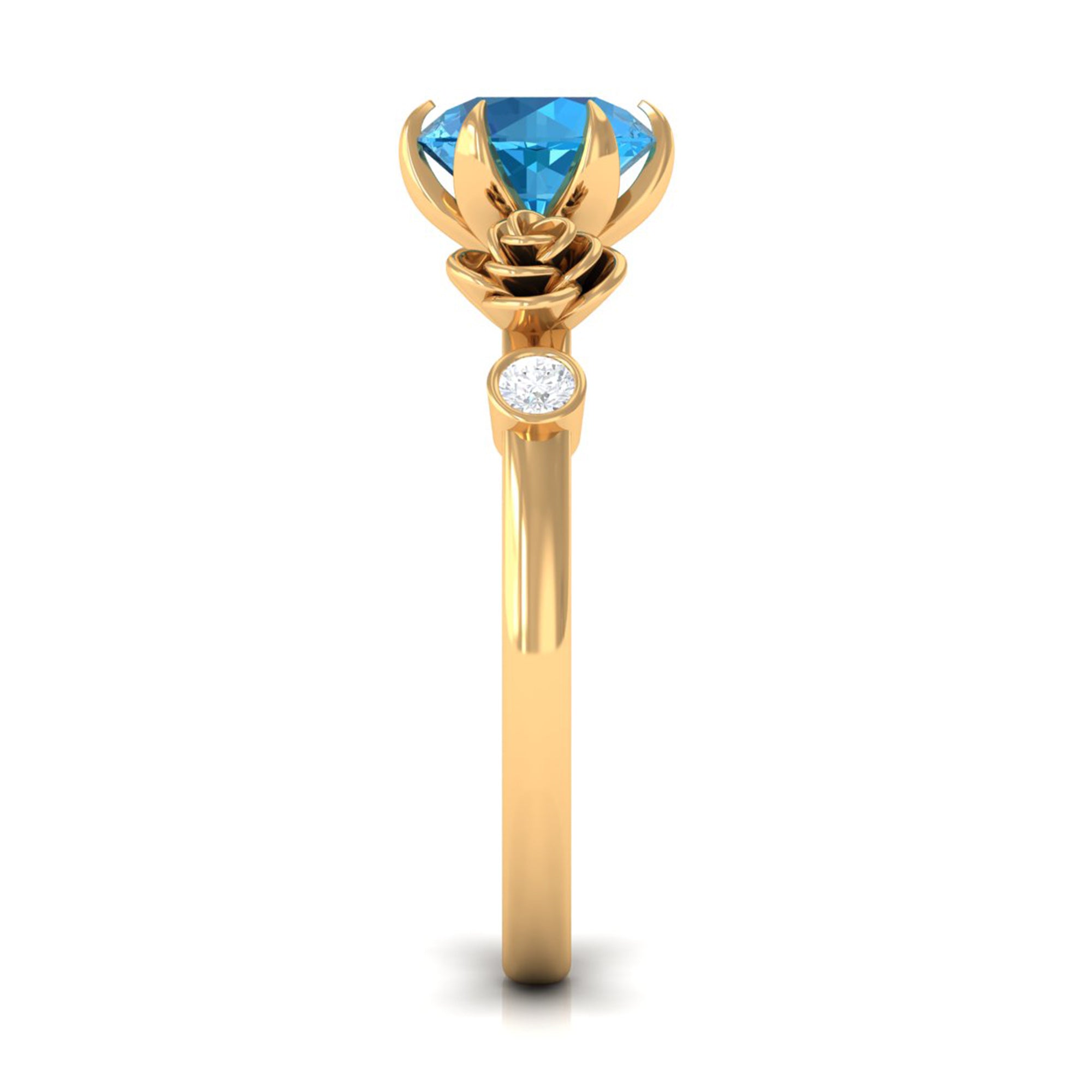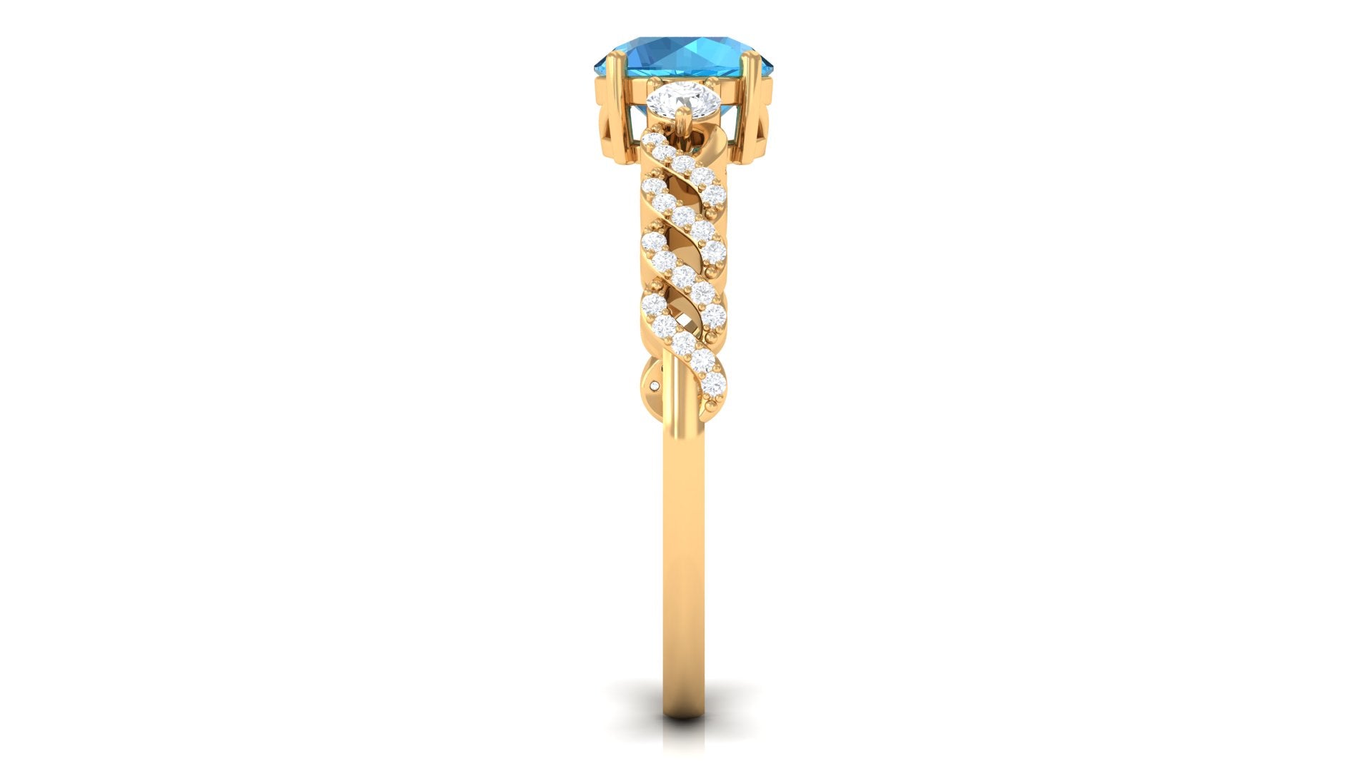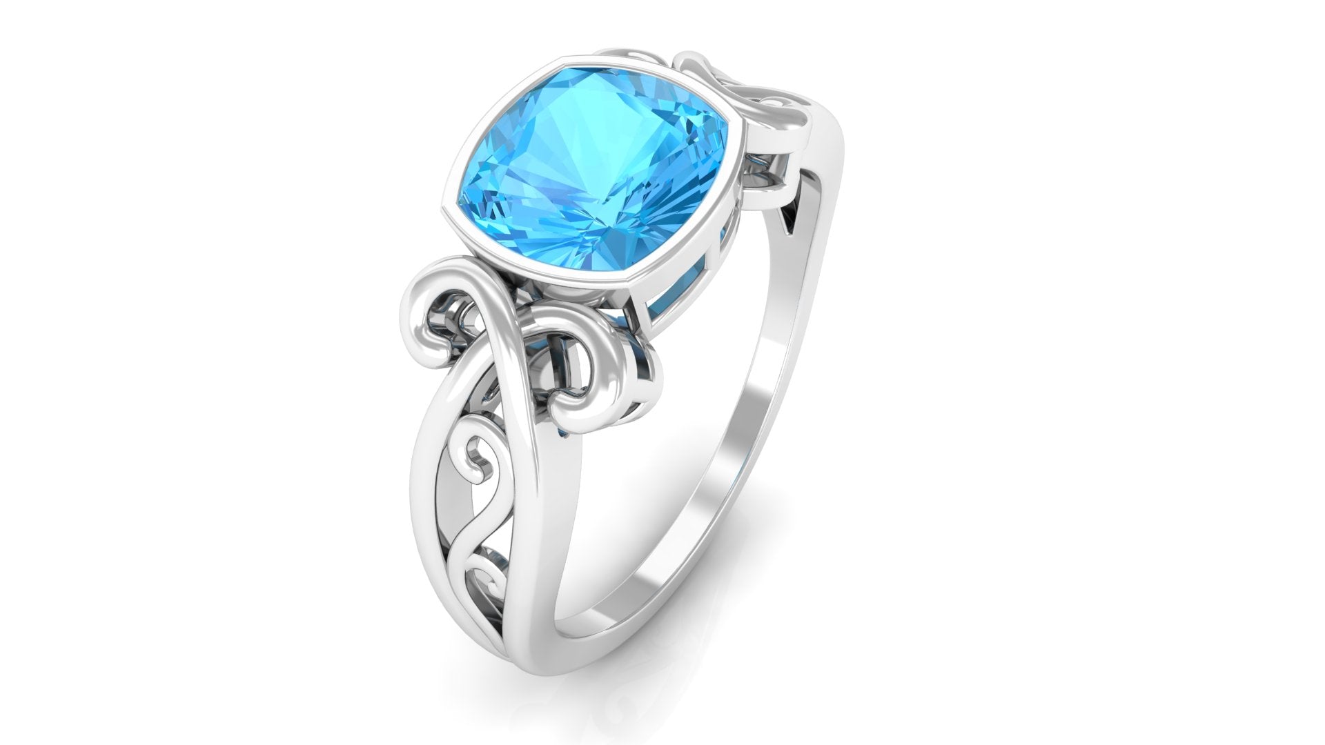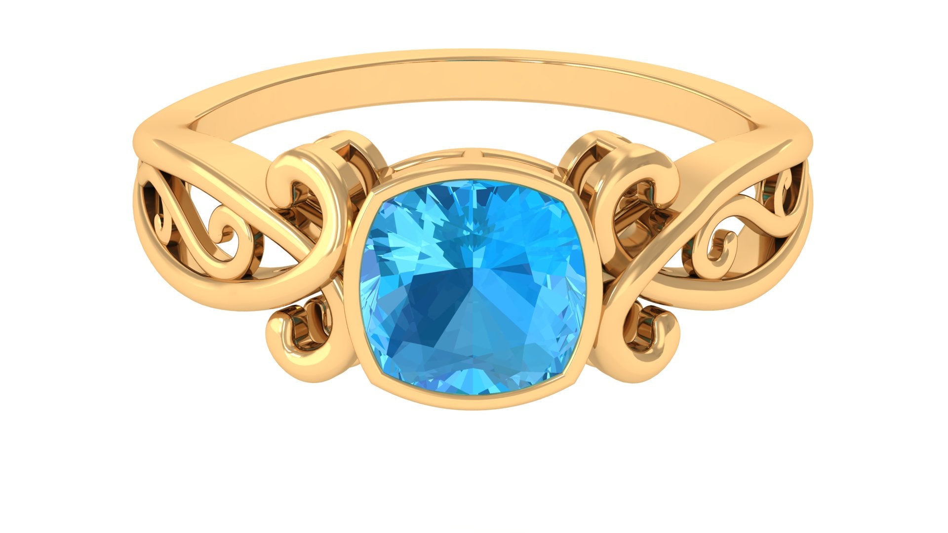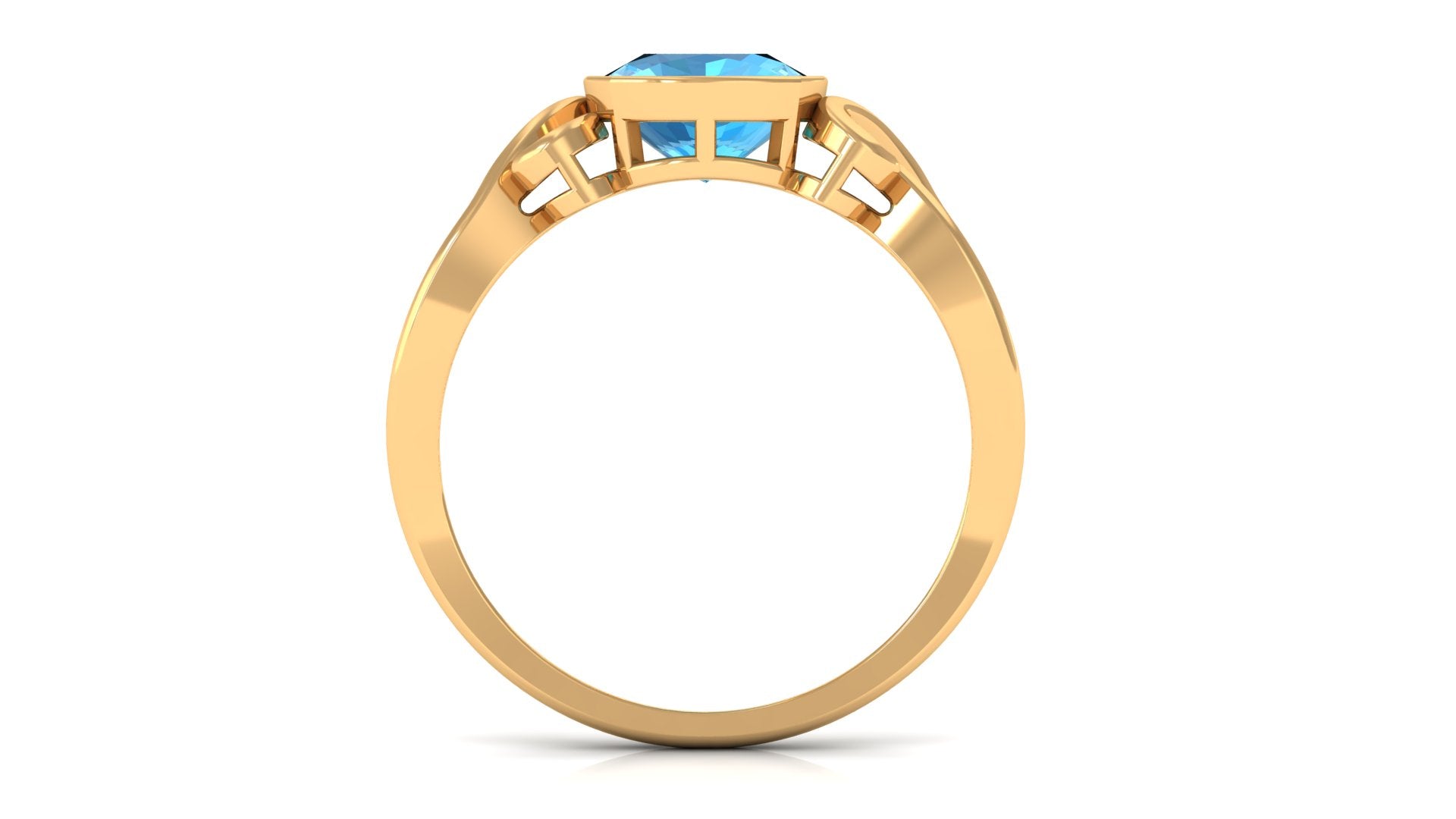 For the amalgamation of ring designs, our experts constantly experiment with different gold colors and Swiss blue topaz shapes to curate out of the box designs of Swiss blue topaz ring in yellow gold, white gold and rose gold. Popular & diverse shapes like oval, round, princess and cushion, further helps in broadening Swiss blue topaz engagement ring styles. Also, fine metal details and embellishments helps us in crafting vintage style blue topaz rings and many more to best suit your personal style.