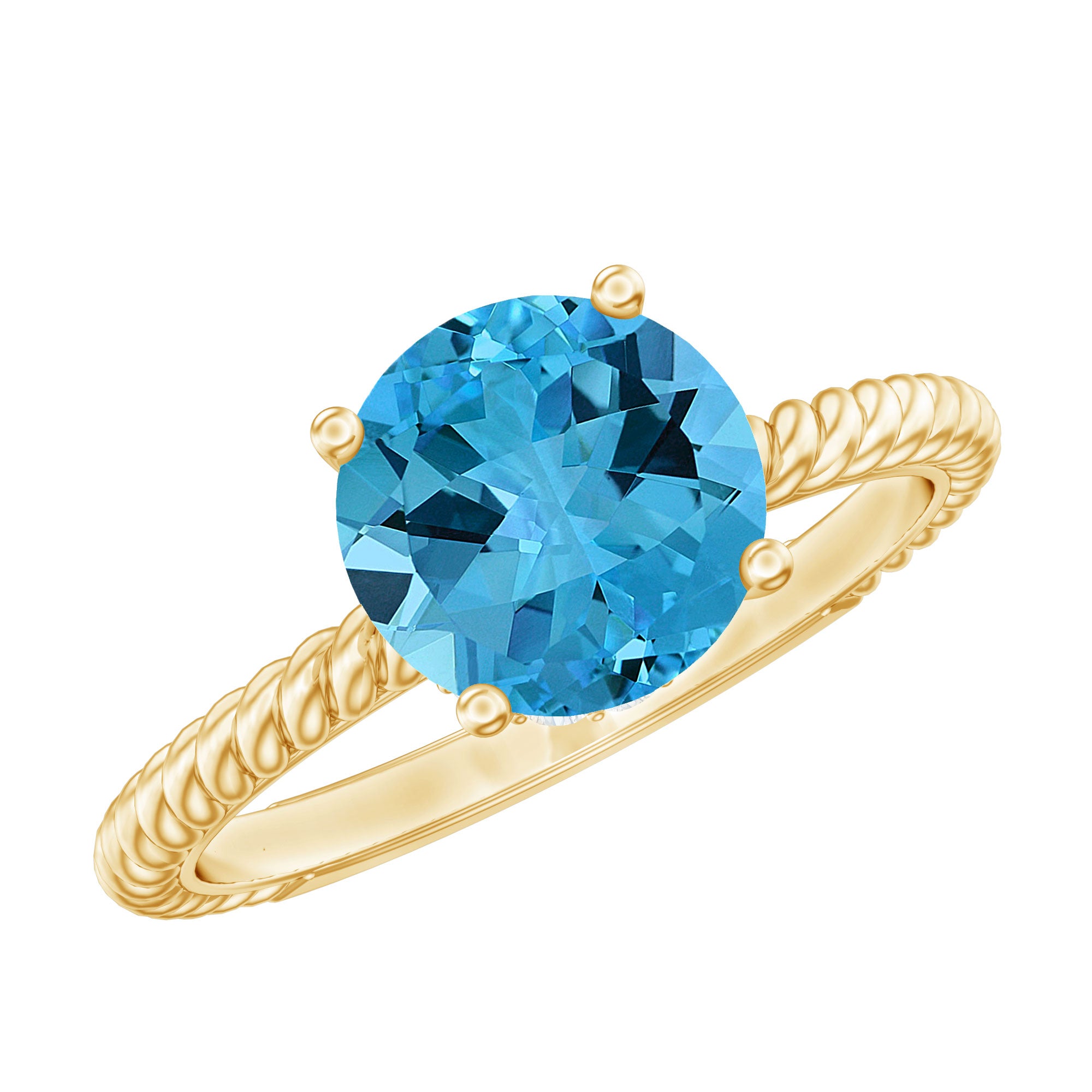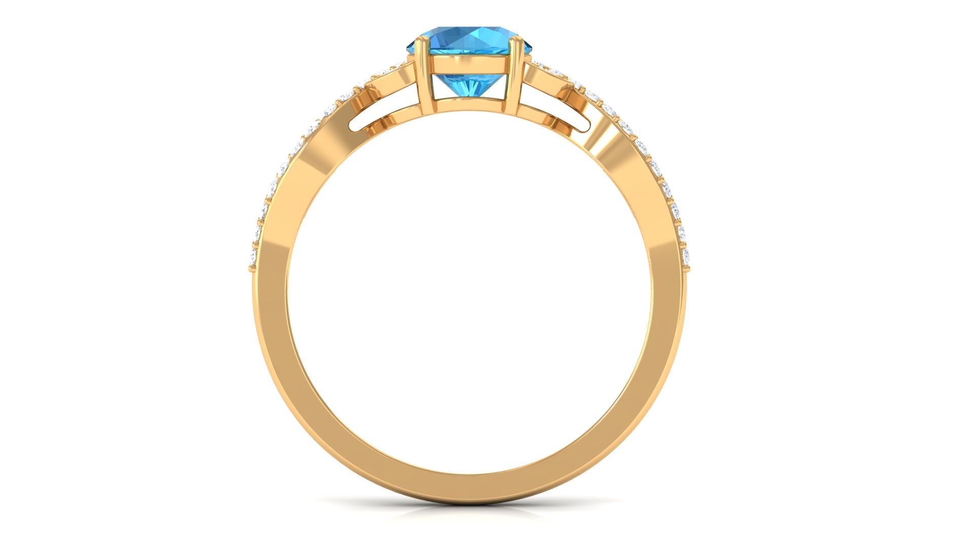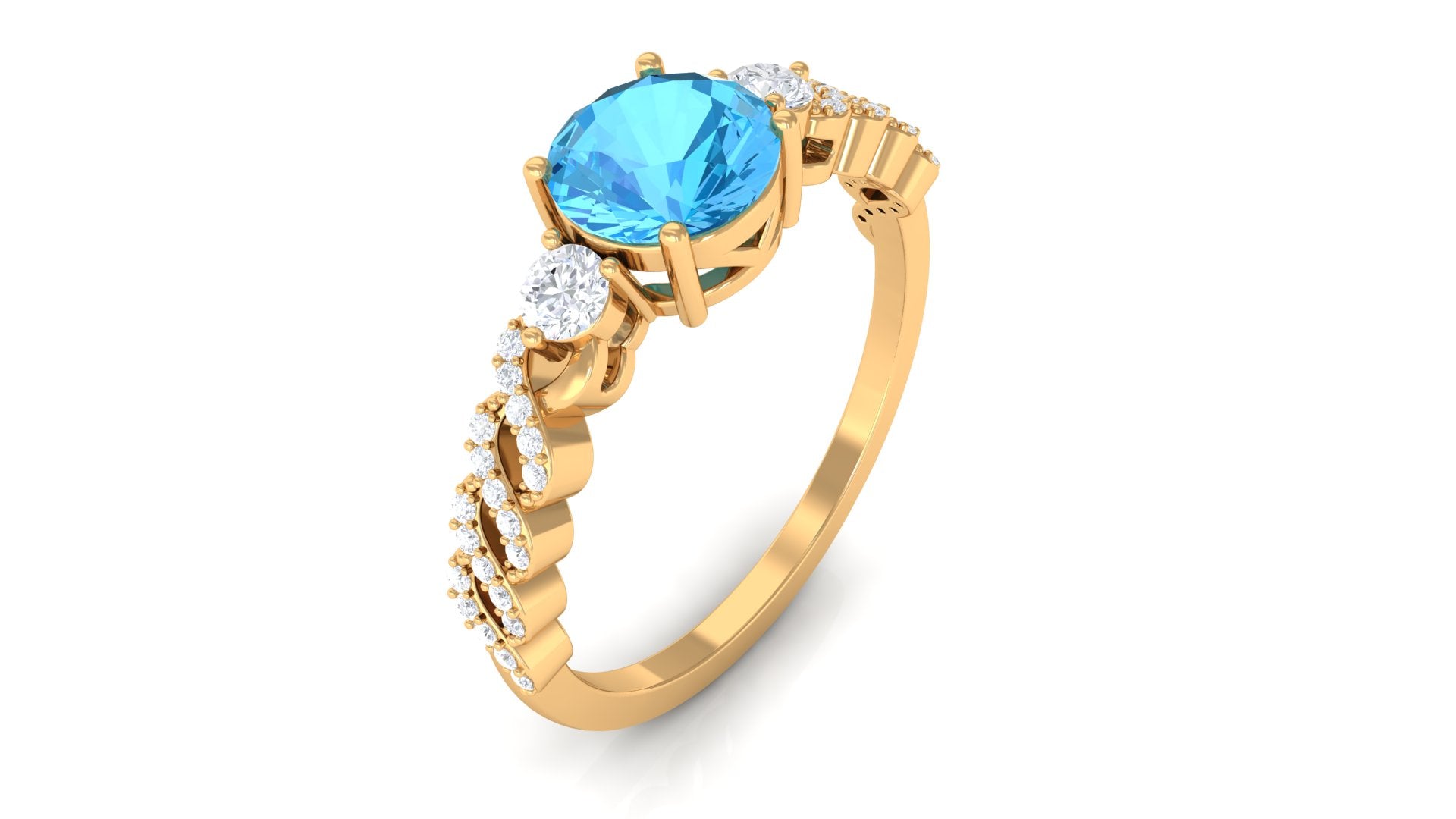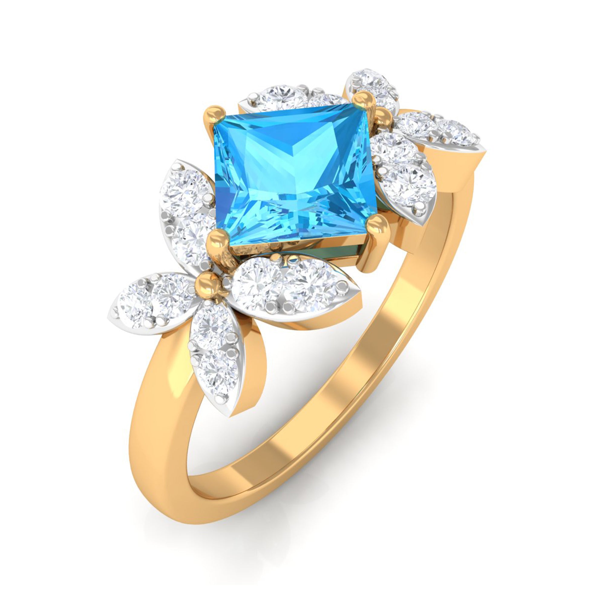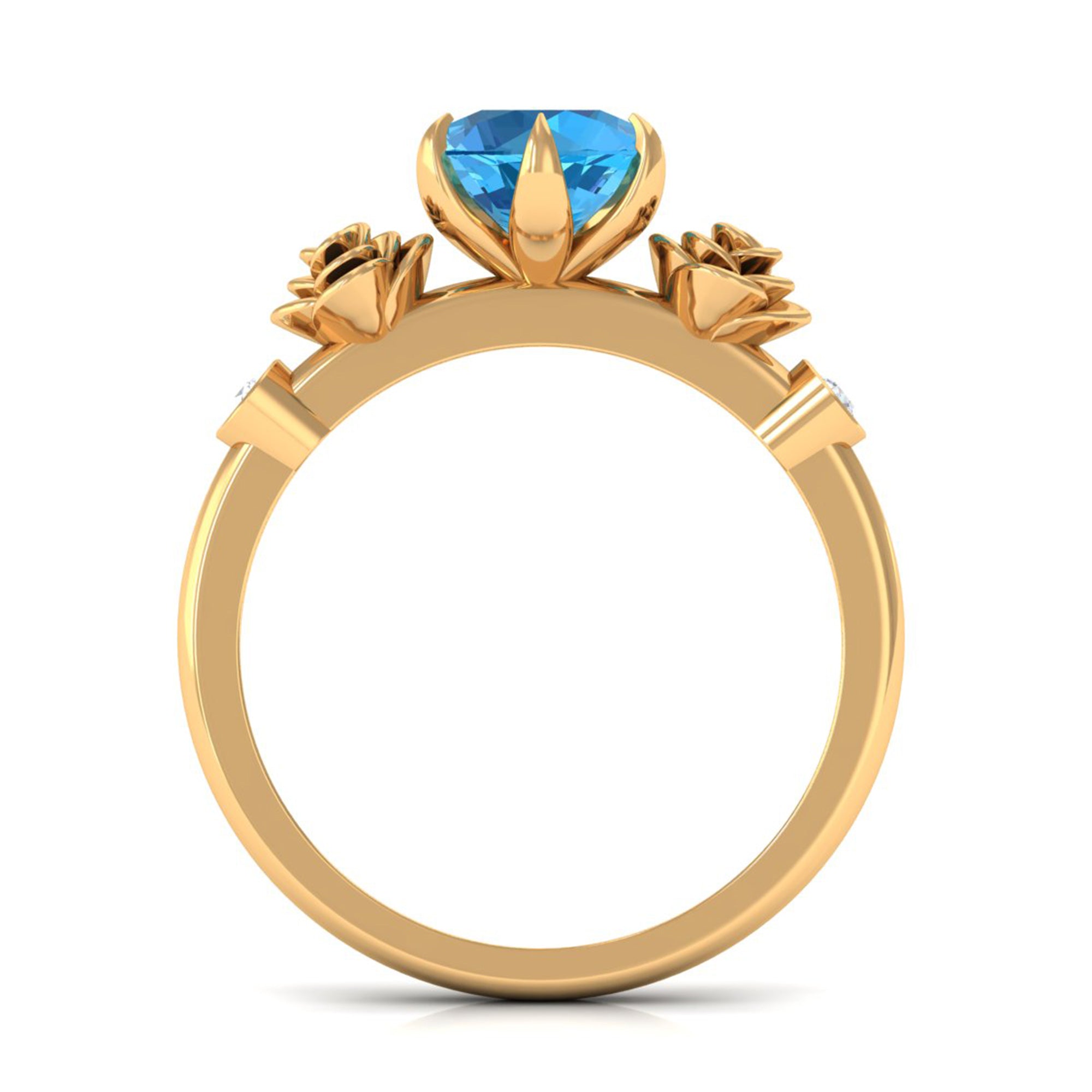 For the amalgamation of ring designs, our experts constantly experiment with different gold colors and Swiss blue topaz shapes to curate out of the box designs of Swiss blue topaz ring in yellow gold, white gold and rose gold. Popular & diverse shapes like oval, round, princess and cushion, further helps in broadening Swiss blue topaz engagement ring styles. Also, fine metal details and embellishments helps us in crafting vintage style blue topaz rings and many more to best suit your personal style.