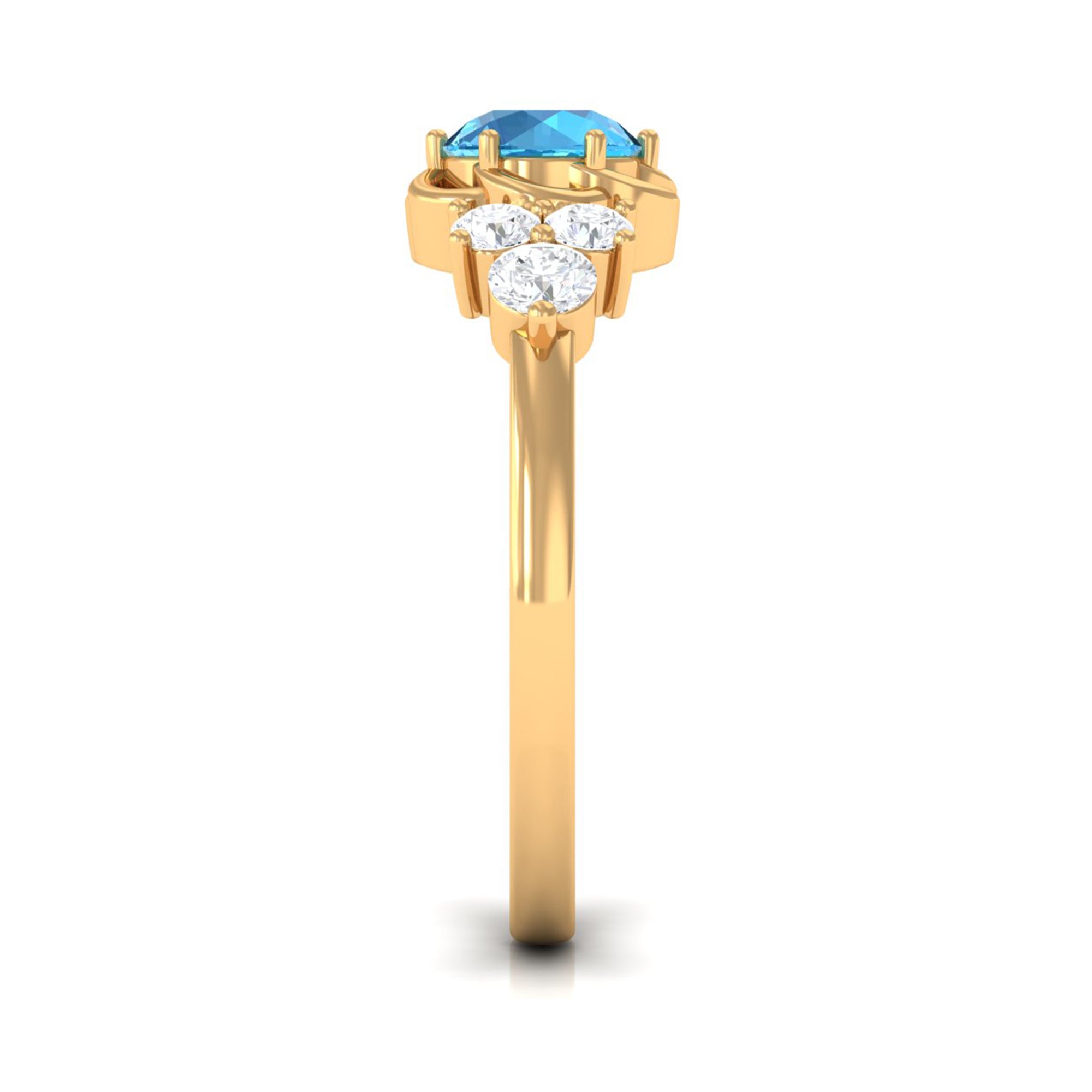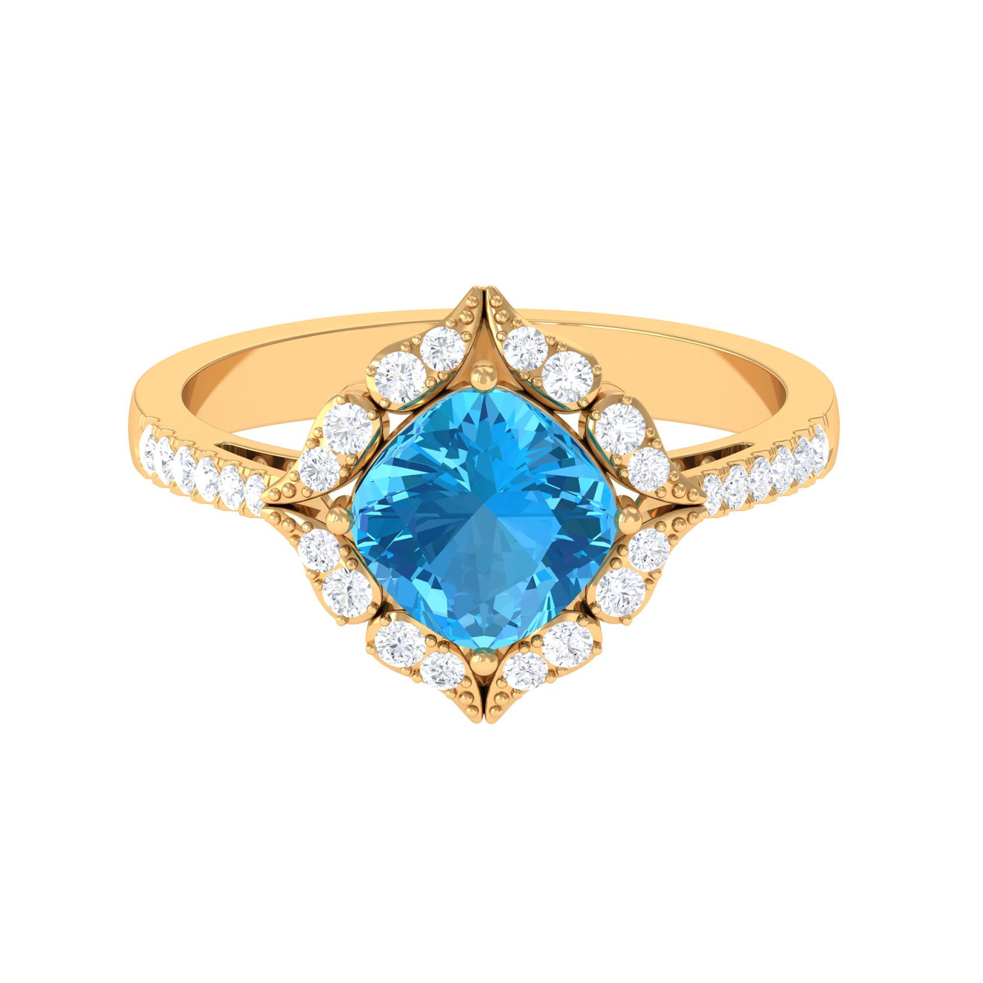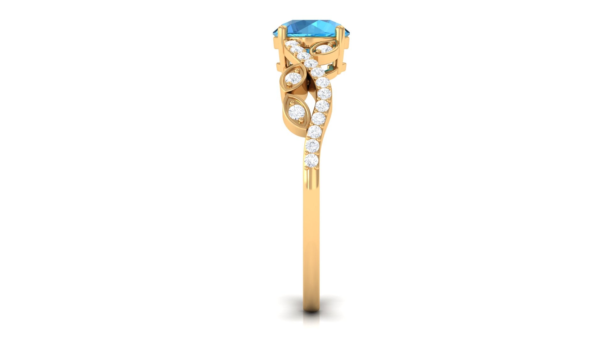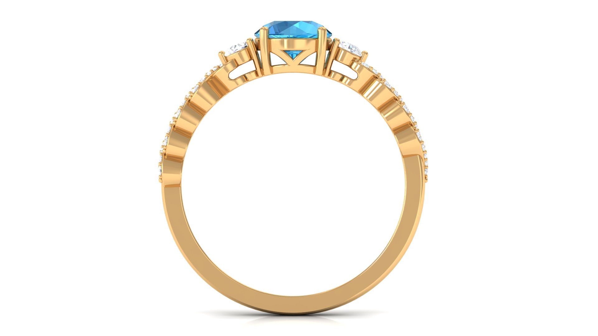 For the amalgamation of ring designs, our experts constantly experiment with different gold colors and Swiss blue topaz shapes to curate out of the box designs of Swiss blue topaz ring in yellow gold, white gold and rose gold. Popular & diverse shapes like oval, round, princess and cushion, further helps in broadening Swiss blue topaz engagement ring styles. Also, fine metal details and embellishments helps us in crafting vintage style blue topaz rings and many more to best suit your personal style.