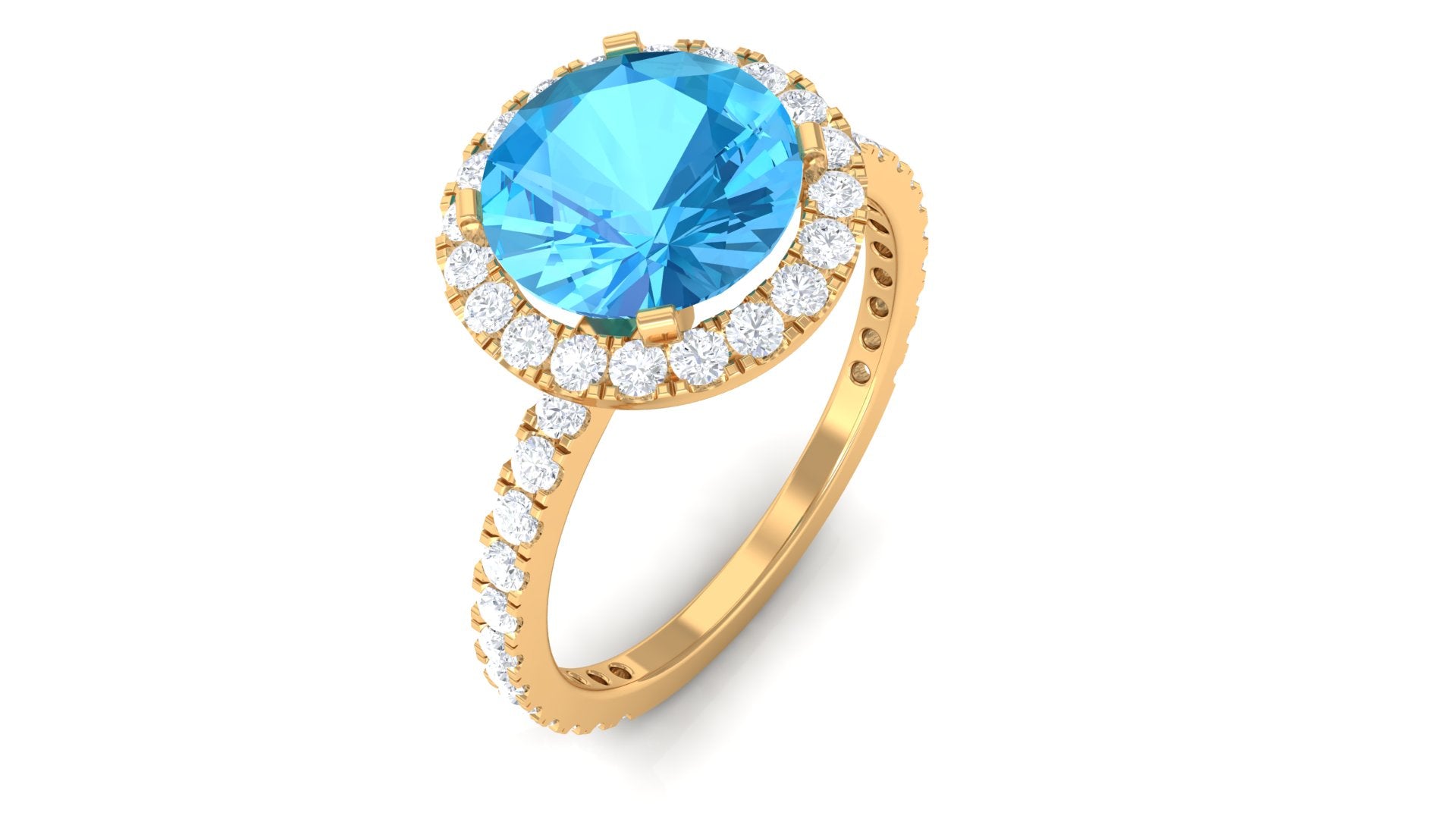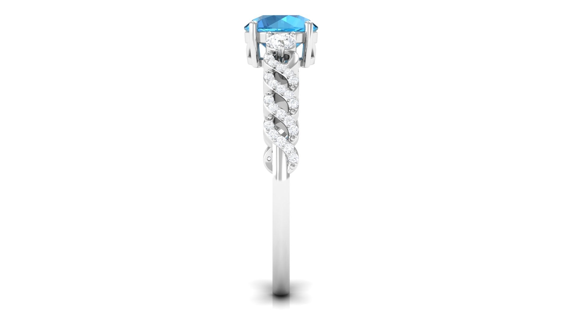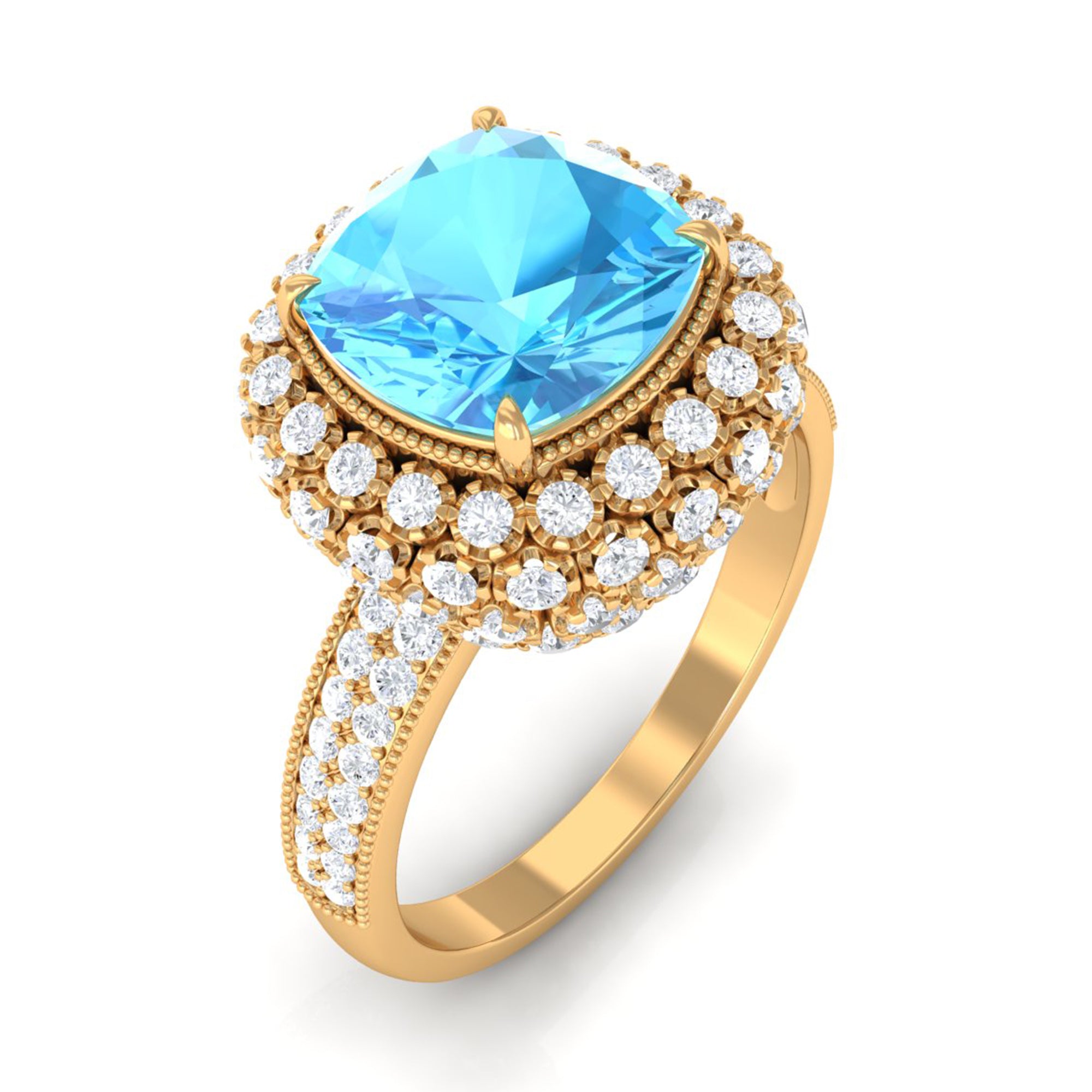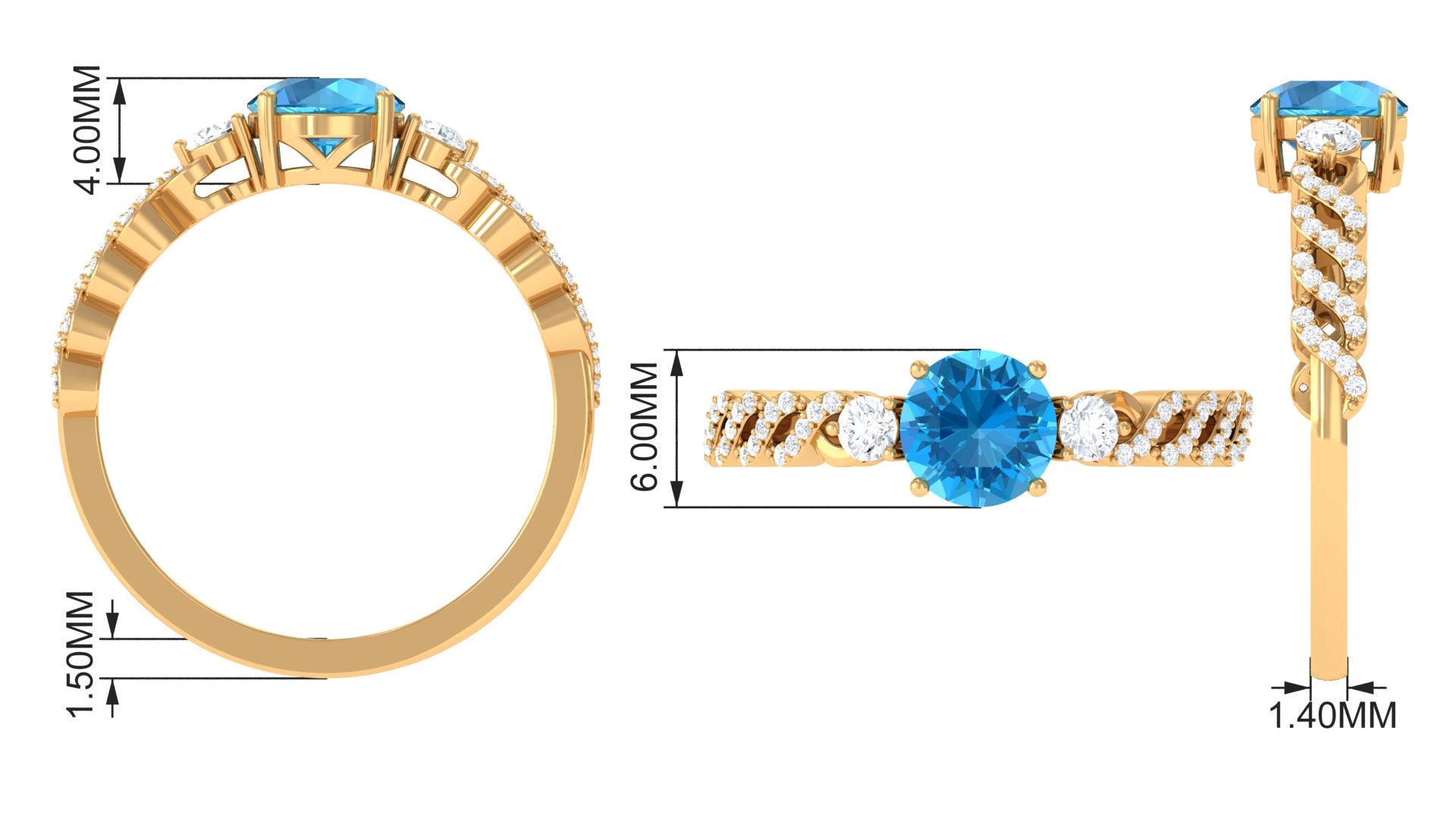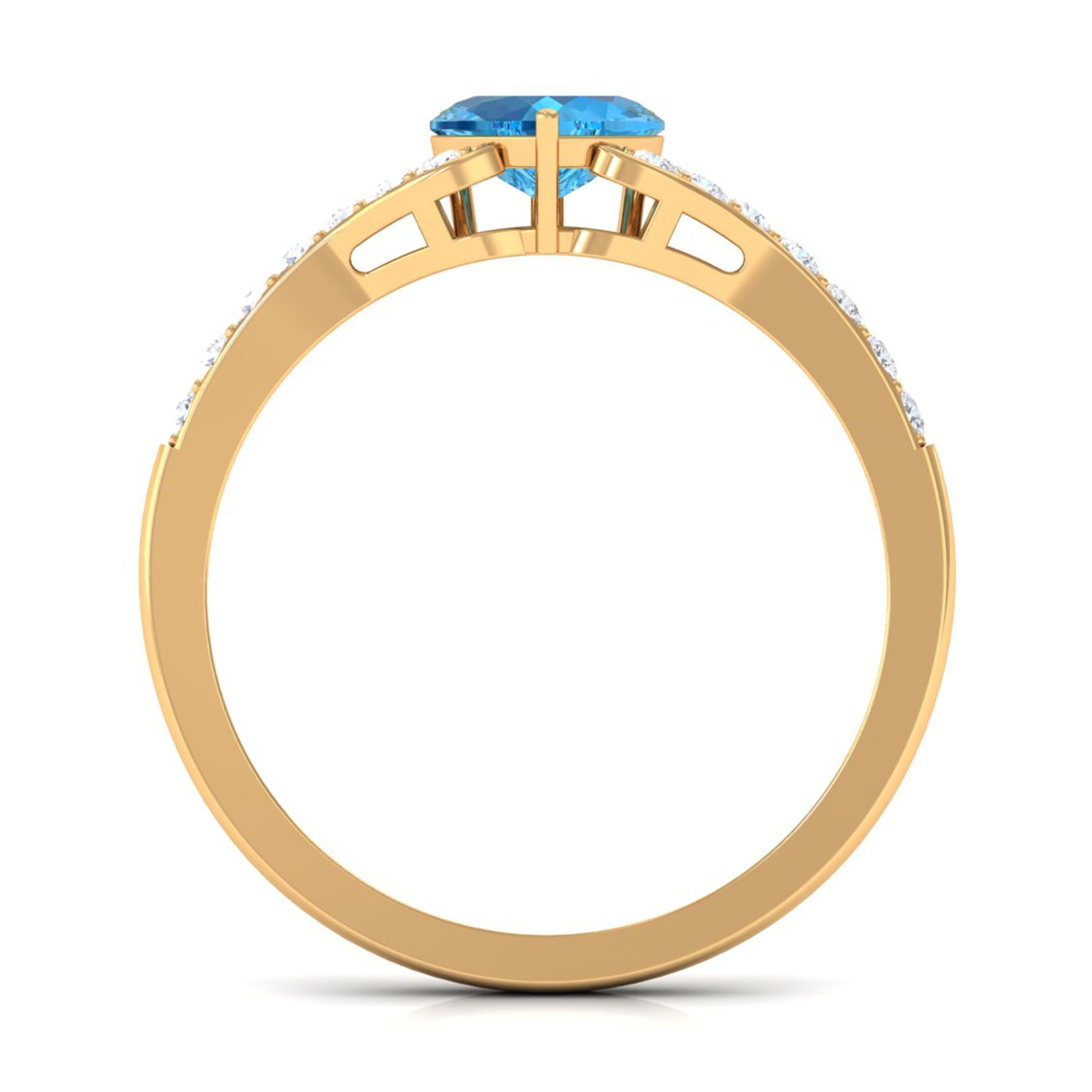 For the amalgamation of ring designs, our experts constantly experiment with different gold colors and Swiss blue topaz shapes to curate out of the box designs of Swiss blue topaz ring in yellow gold, white gold and rose gold. Popular & diverse shapes like oval, round, princess and cushion, further helps in broadening Swiss blue topaz engagement ring styles. Also, fine metal details and embellishments helps us in crafting vintage style blue topaz rings and many more to best suit your personal style.
