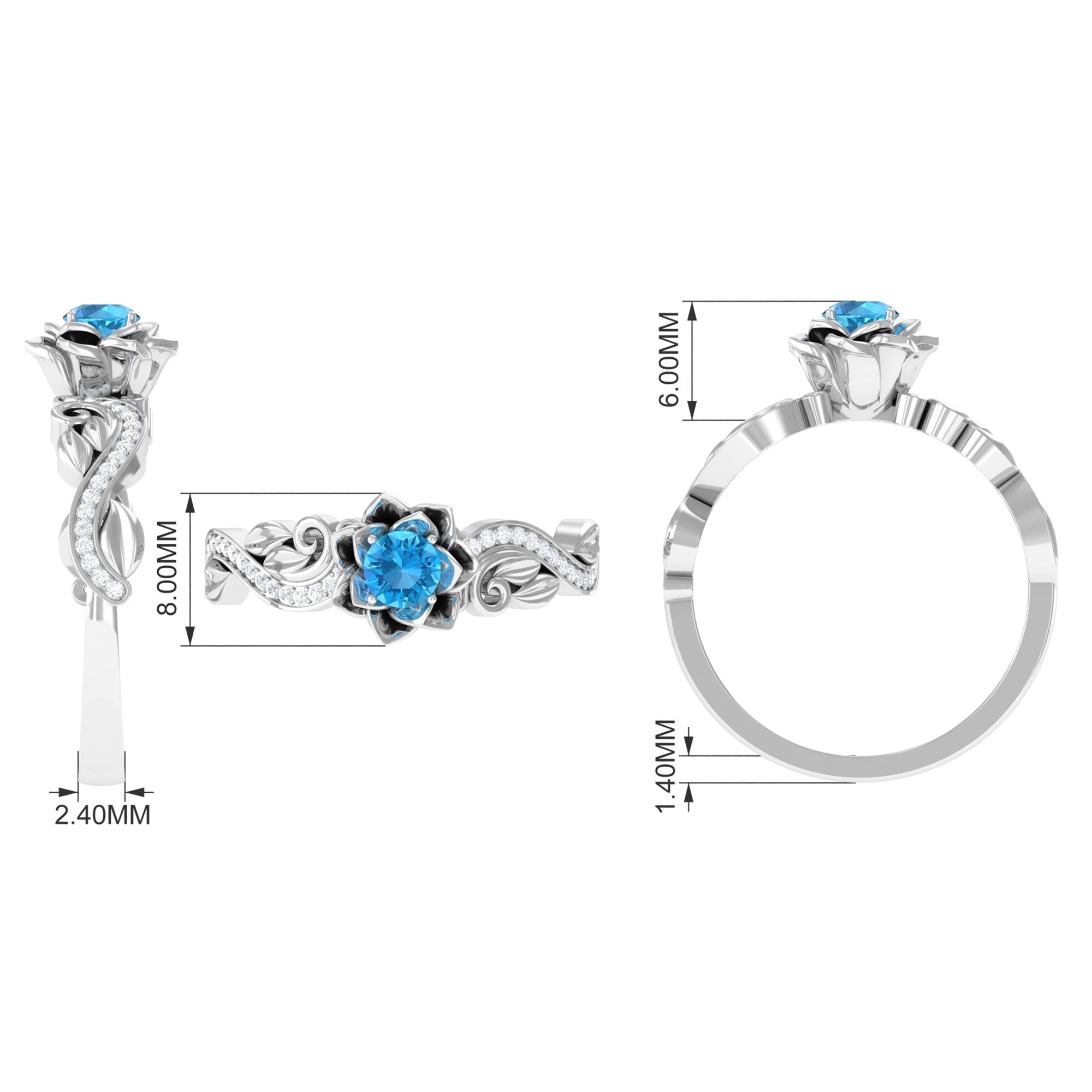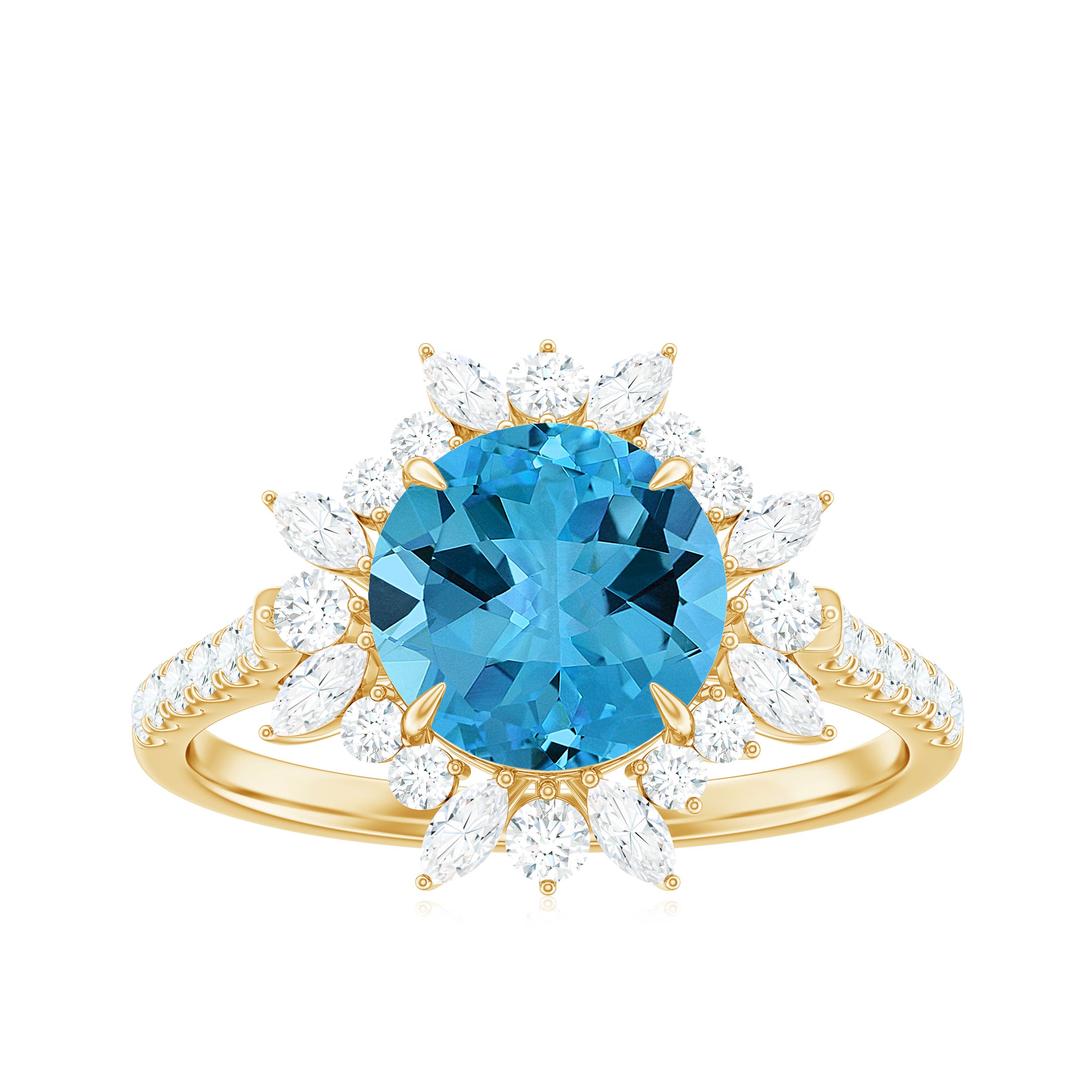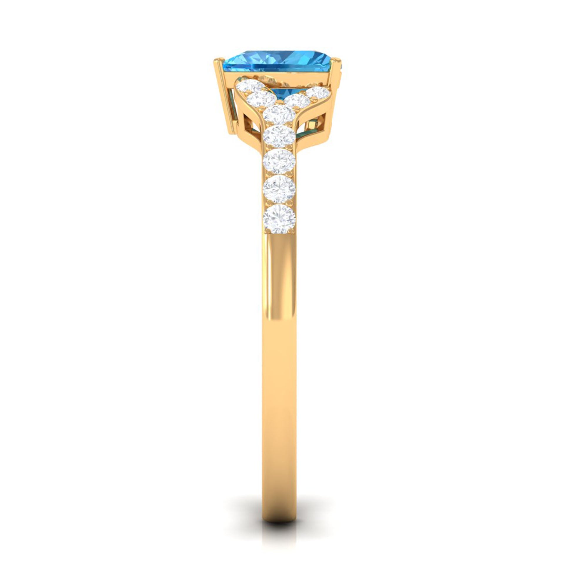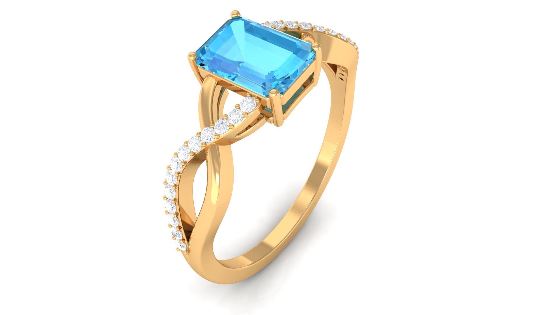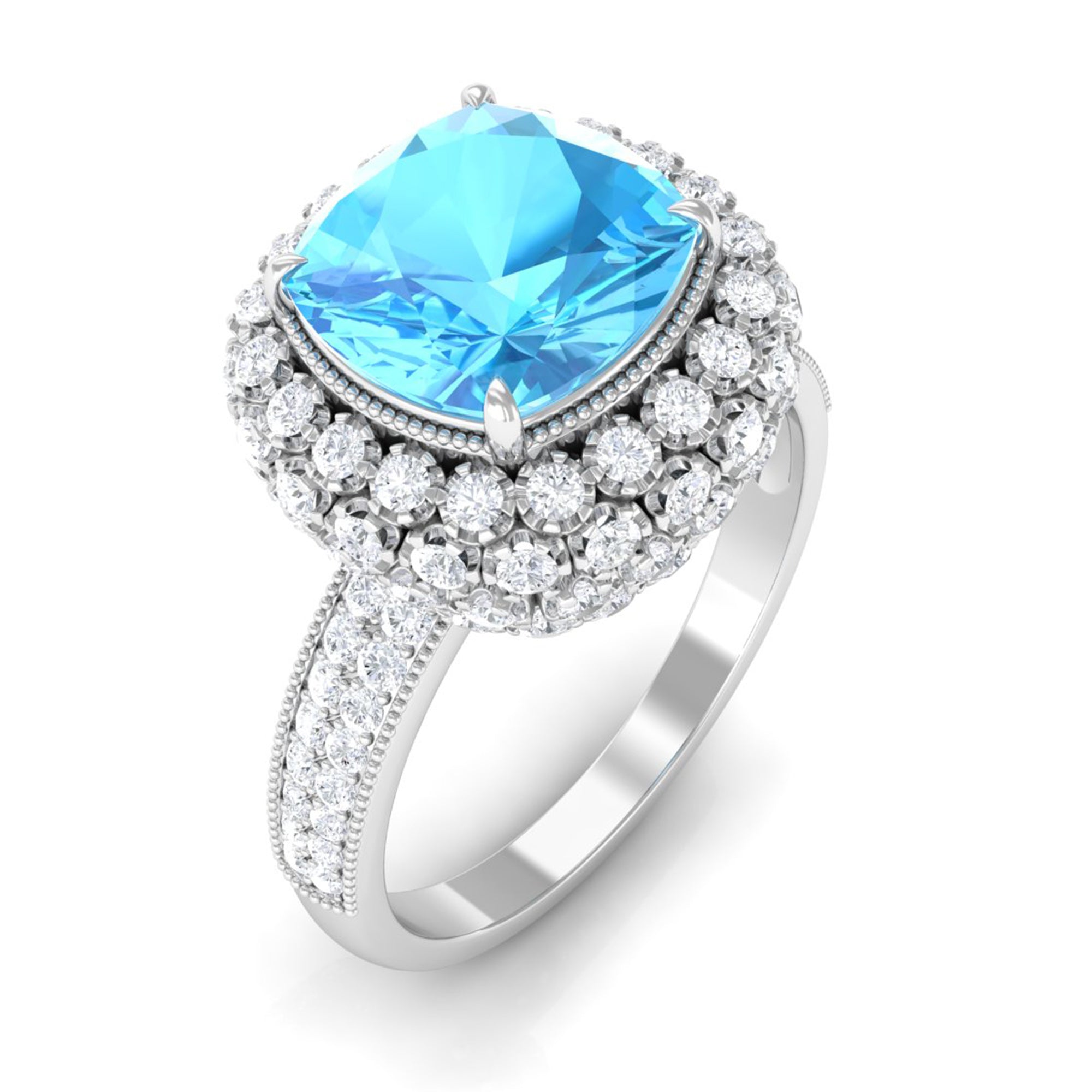 For the amalgamation of ring designs, our experts constantly experiment with different gold colors and Swiss blue topaz shapes to curate out of the box designs of Swiss blue topaz ring in yellow gold, white gold and rose gold. Popular & diverse shapes like oval, round, princess and cushion, further helps in broadening Swiss blue topaz engagement ring styles. Also, fine metal details and embellishments helps us in crafting vintage style blue topaz rings and many more to best suit your personal style.