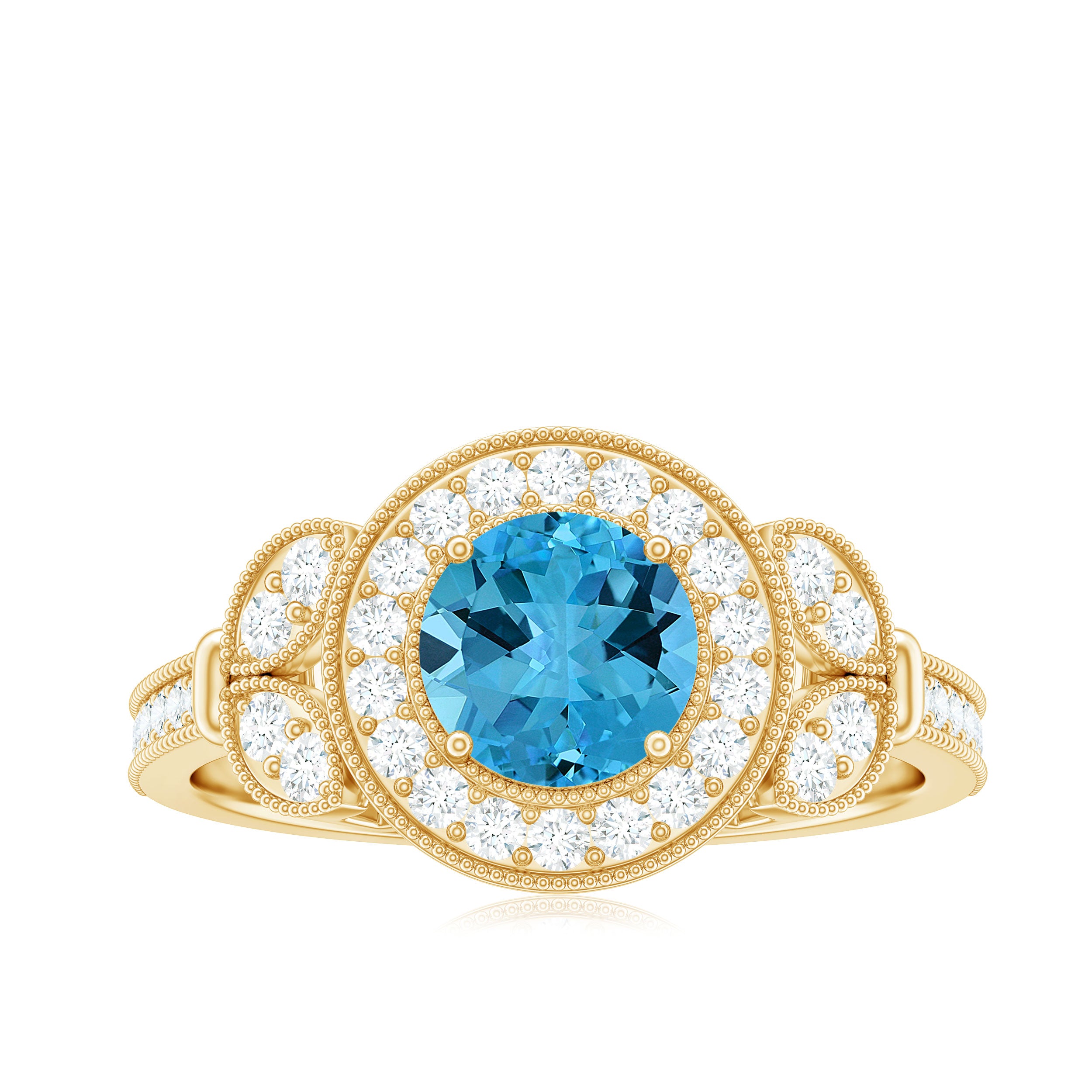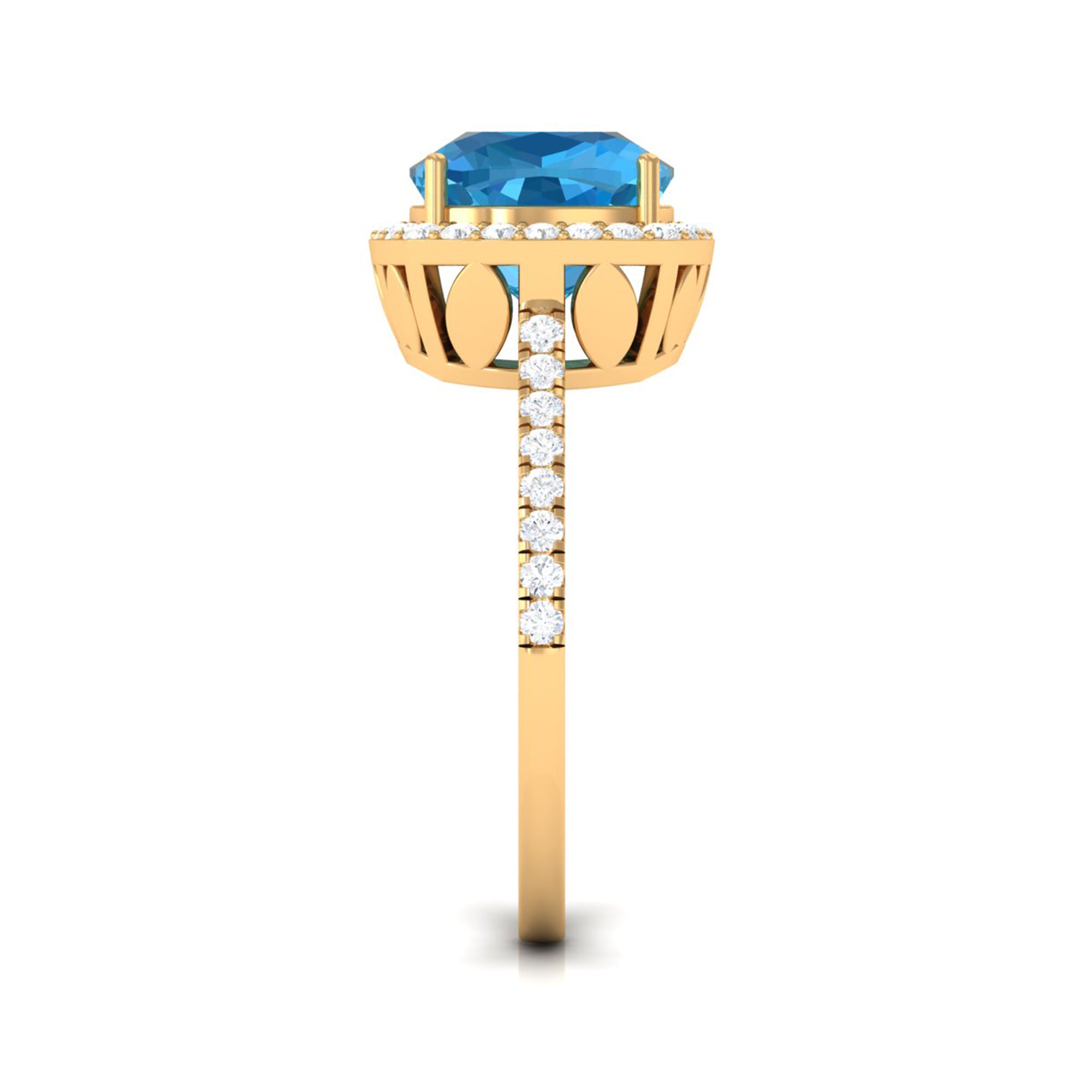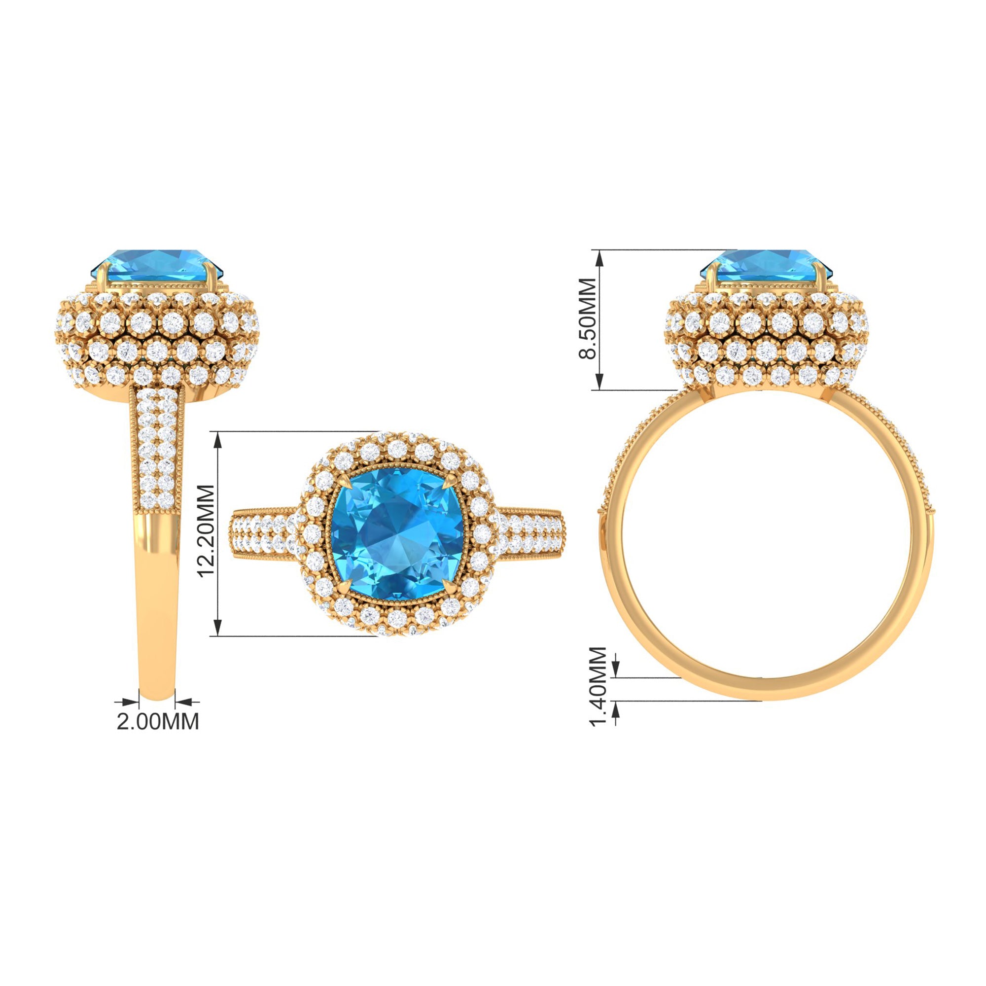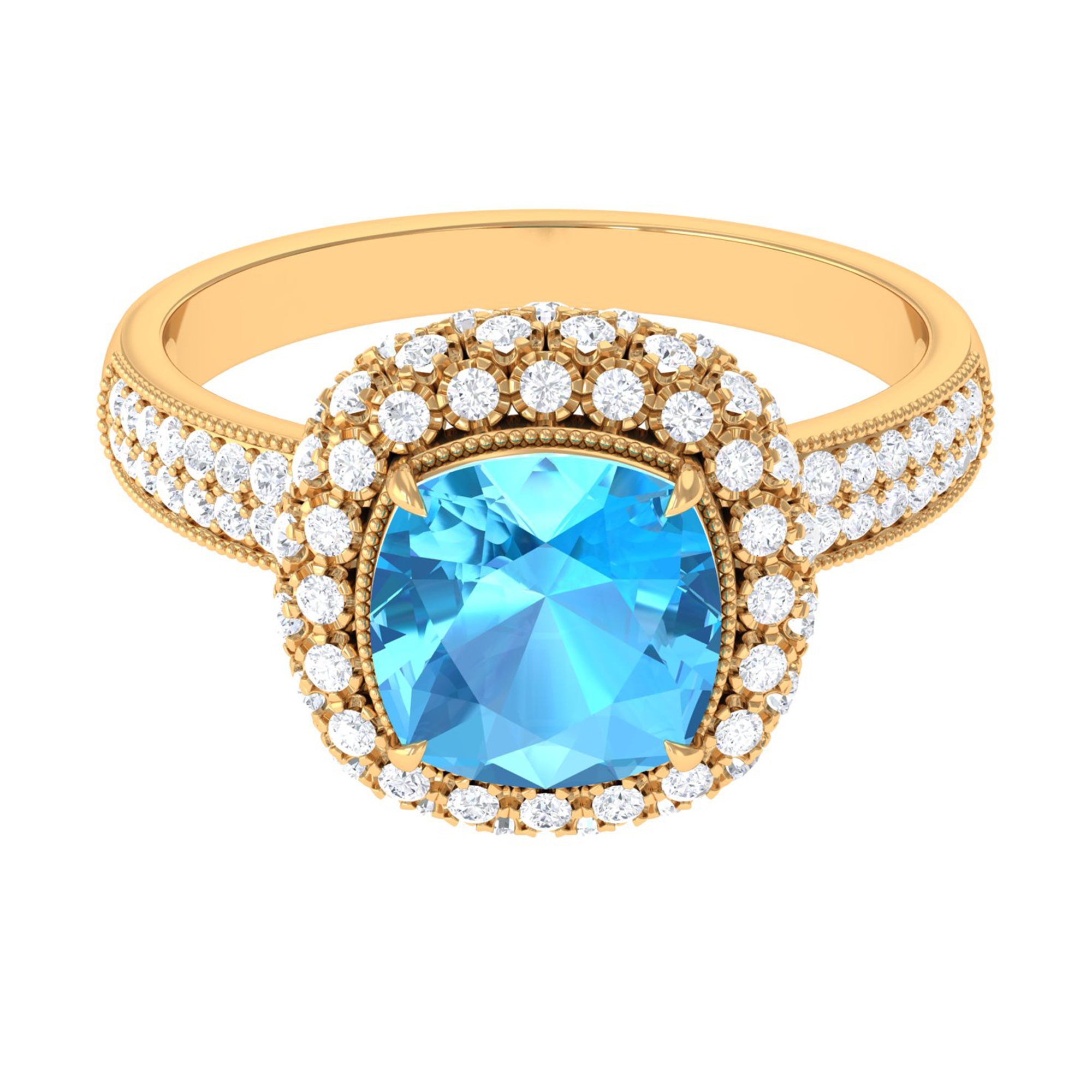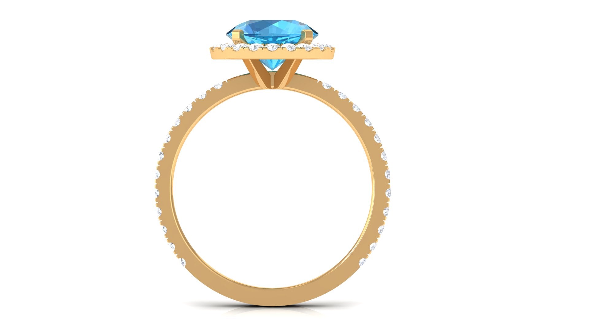 For the amalgamation of ring designs, our experts constantly experiment with different gold colors and Swiss blue topaz shapes to curate out of the box designs of Swiss blue topaz ring in yellow gold, white gold and rose gold. Popular & diverse shapes like oval, round, princess and cushion, further helps in broadening Swiss blue topaz engagement ring styles. Also, fine metal details and embellishments helps us in crafting vintage style blue topaz rings and many more to best suit your personal style.