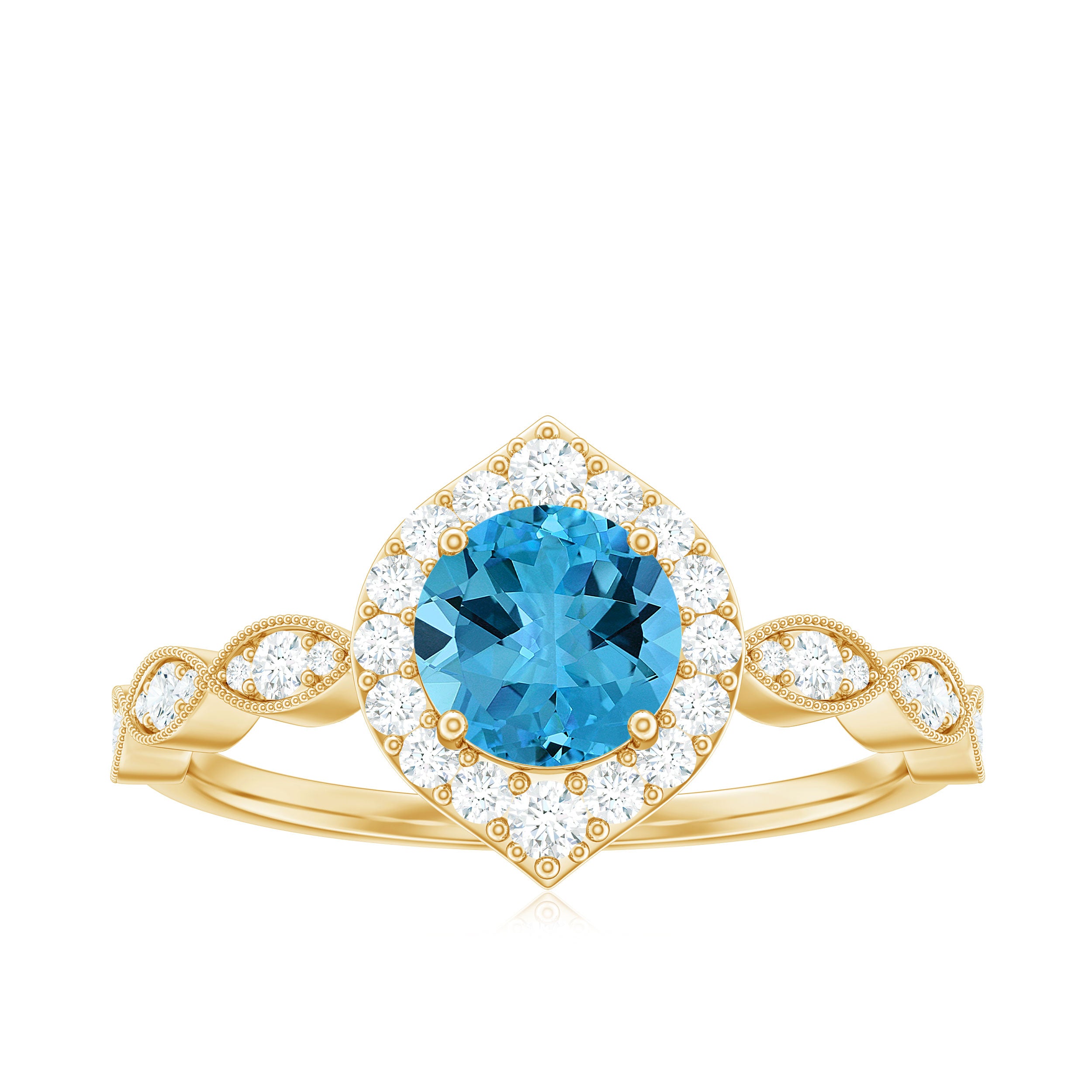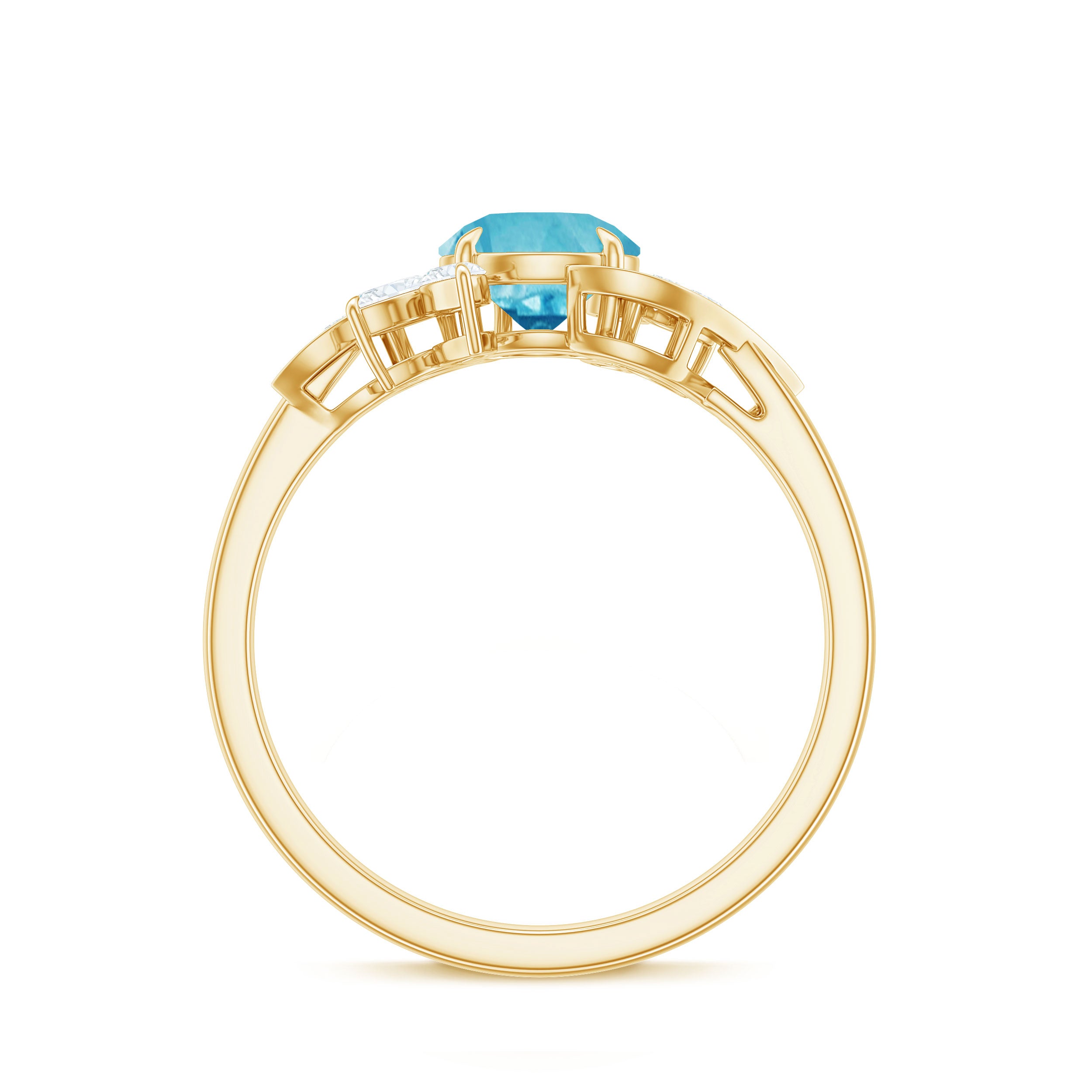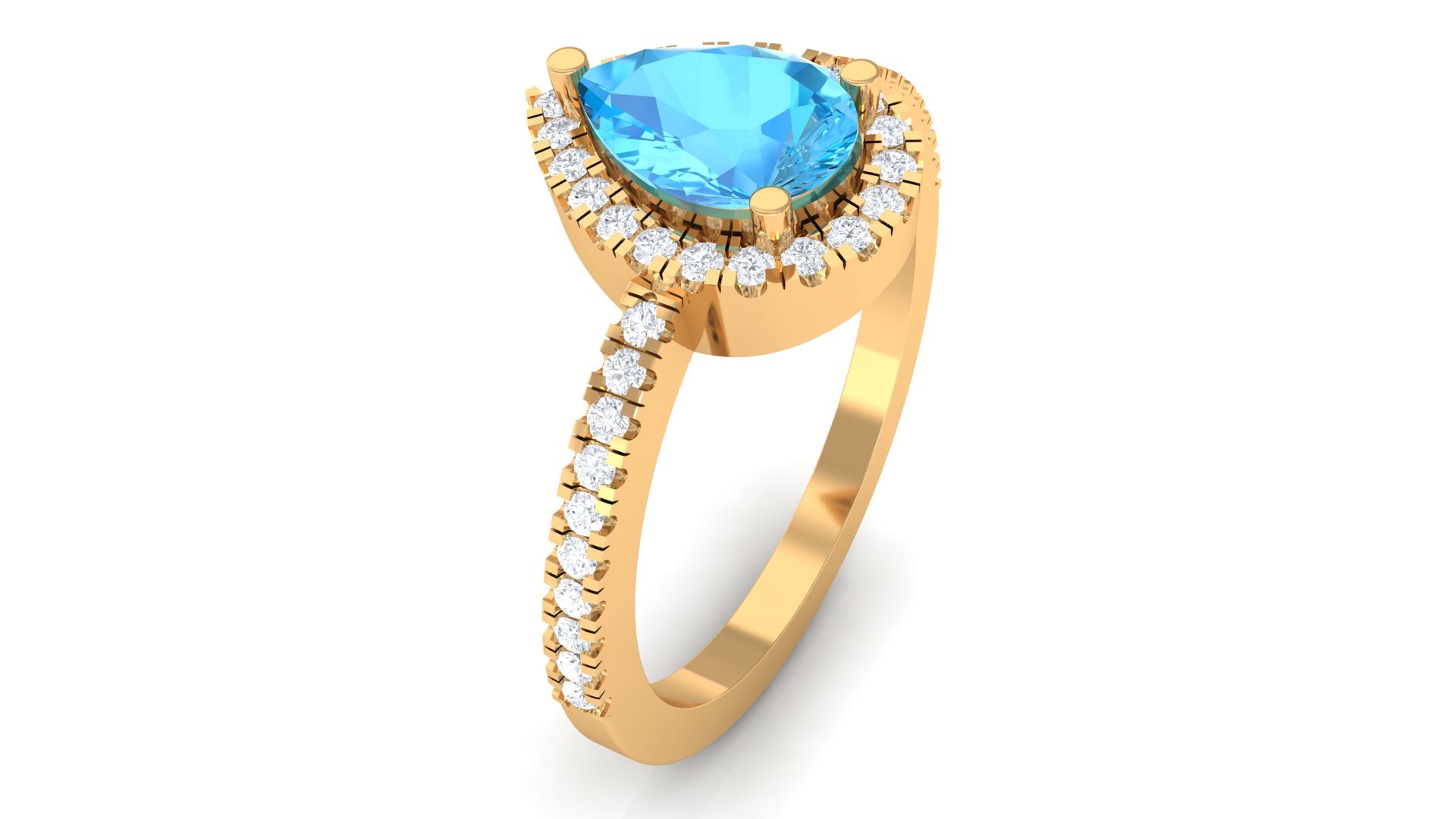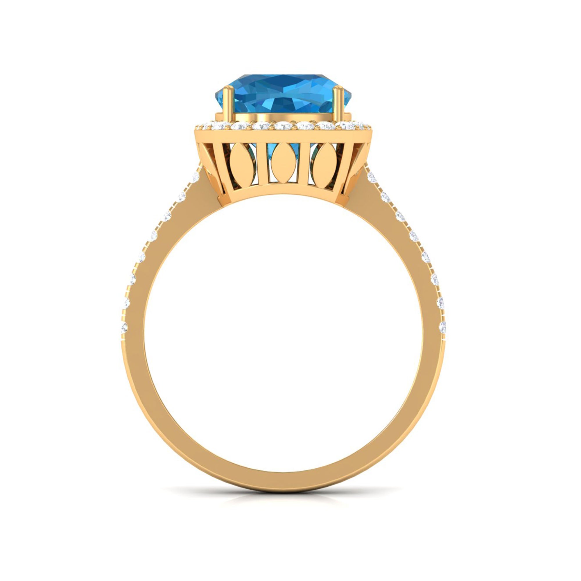 For the amalgamation of ring designs, our experts constantly experiment with different gold colors and Swiss blue topaz shapes to curate out of the box designs of Swiss blue topaz ring in yellow gold, white gold and rose gold. Popular & diverse shapes like oval, round, princess and cushion, further helps in broadening Swiss blue topaz engagement ring styles. Also, fine metal details and embellishments helps us in crafting vintage style blue topaz rings and many more to best suit your personal style.