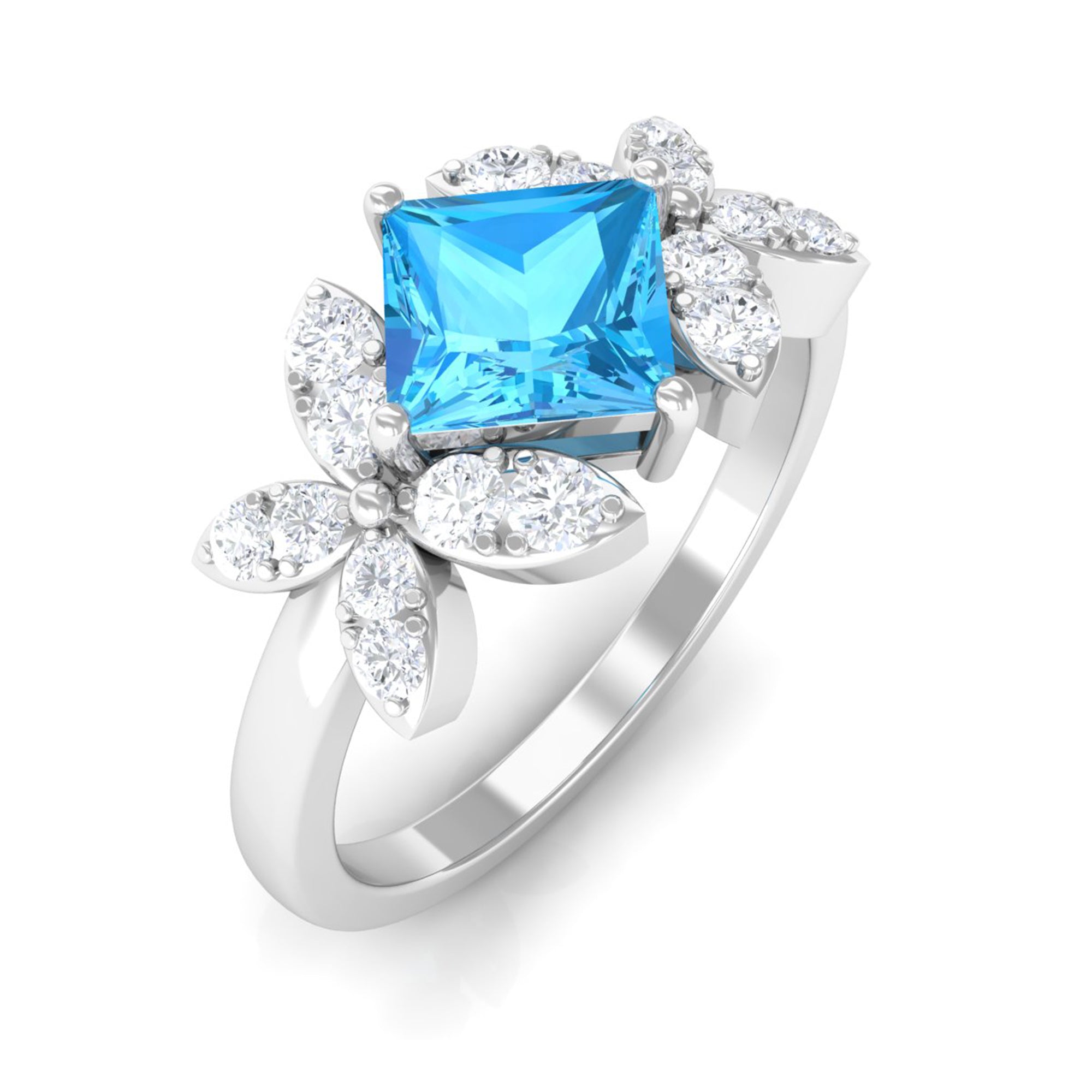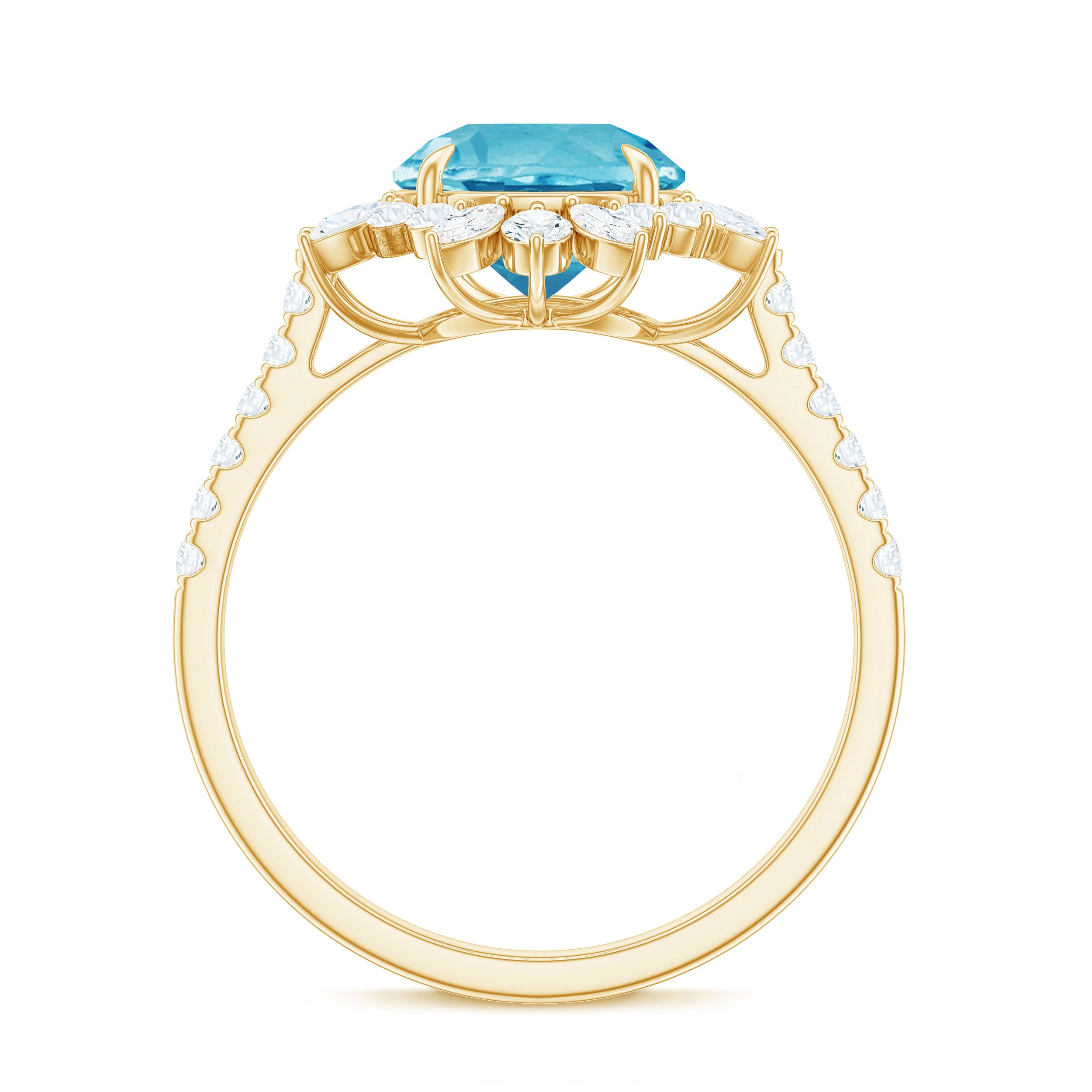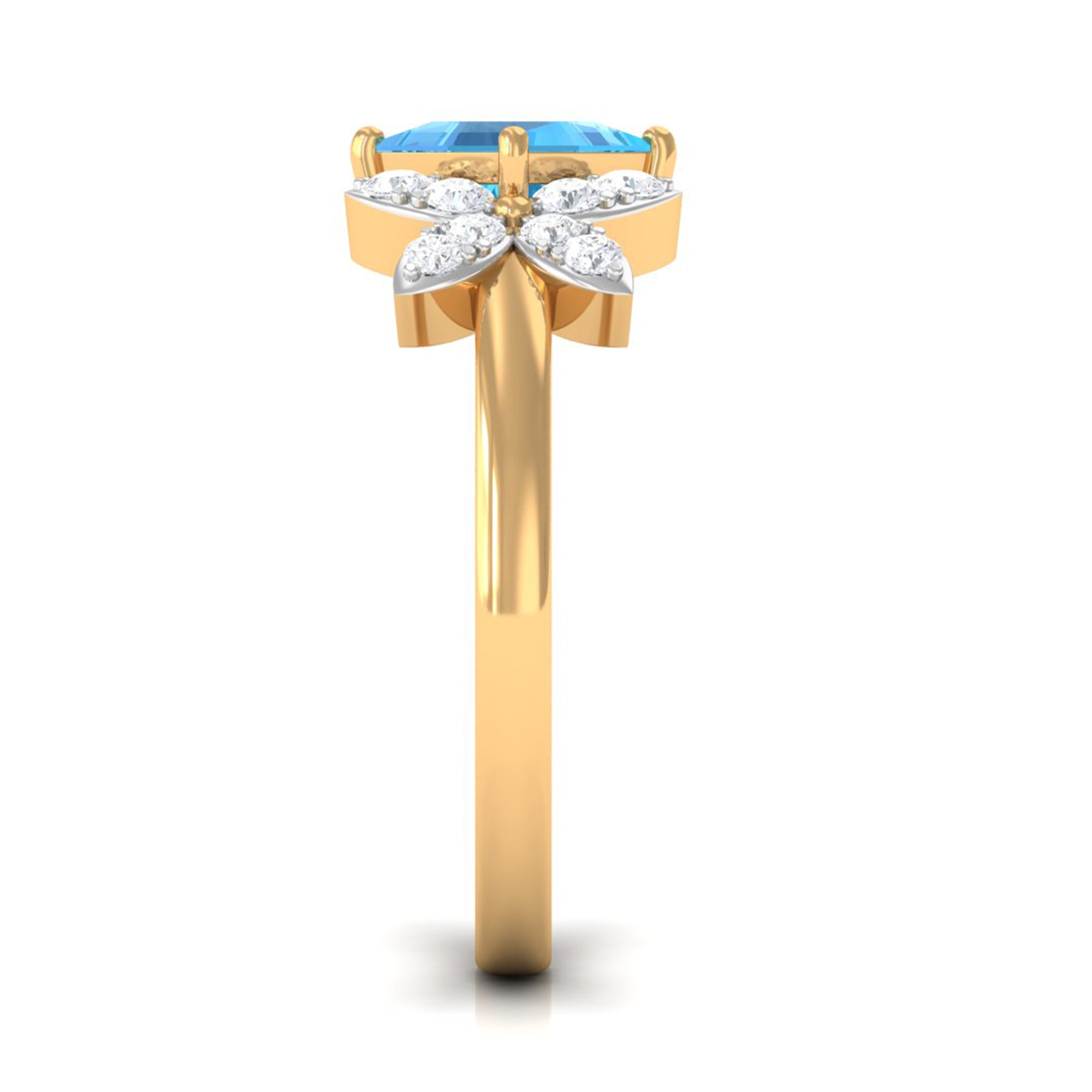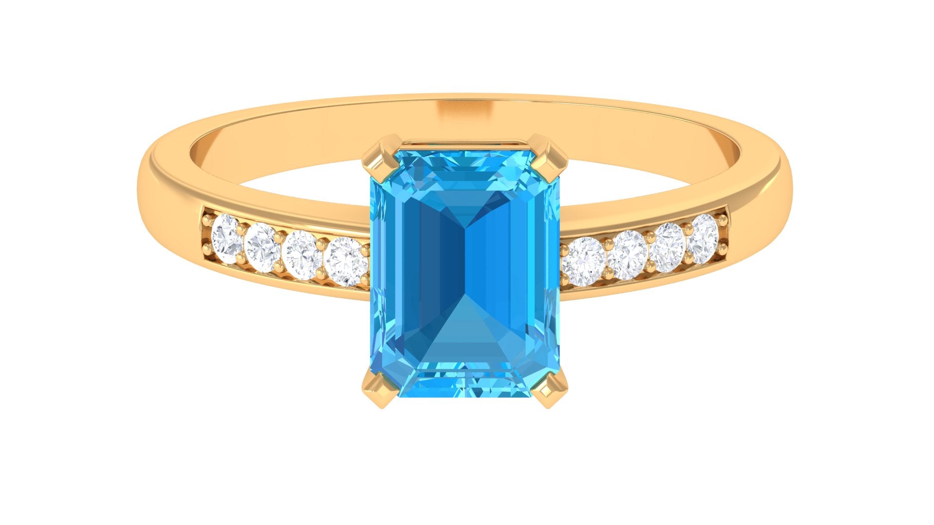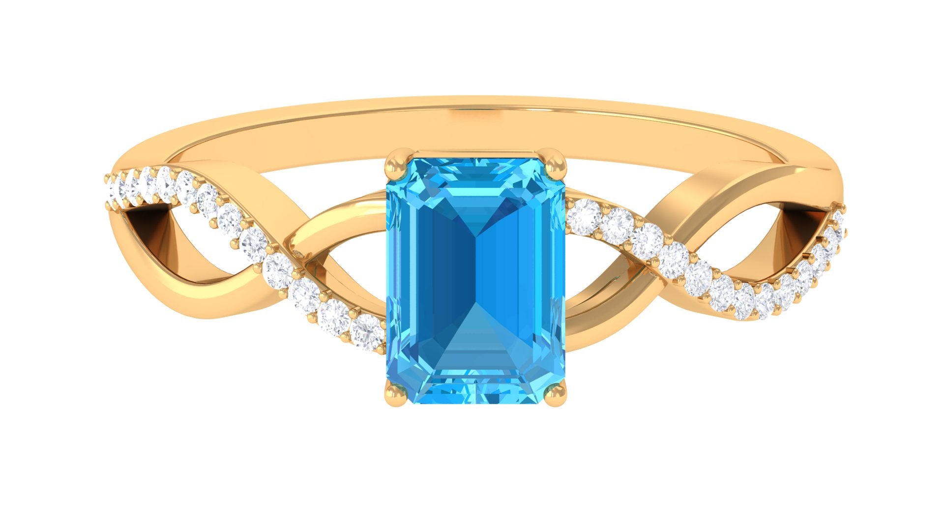 For the amalgamation of ring designs, our experts constantly experiment with different gold colors and Swiss blue topaz shapes to curate out of the box designs of Swiss blue topaz ring in yellow gold, white gold and rose gold. Popular & diverse shapes like oval, round, princess and cushion, further helps in broadening Swiss blue topaz engagement ring styles. Also, fine metal details and embellishments helps us in crafting vintage style blue topaz rings and many more to best suit your personal style.