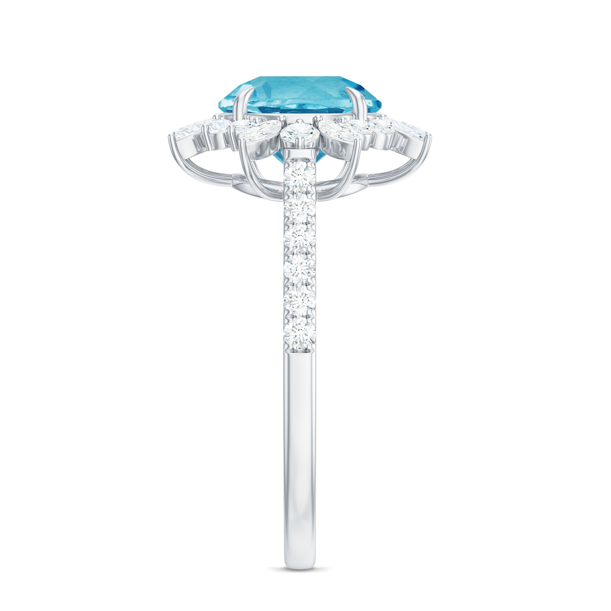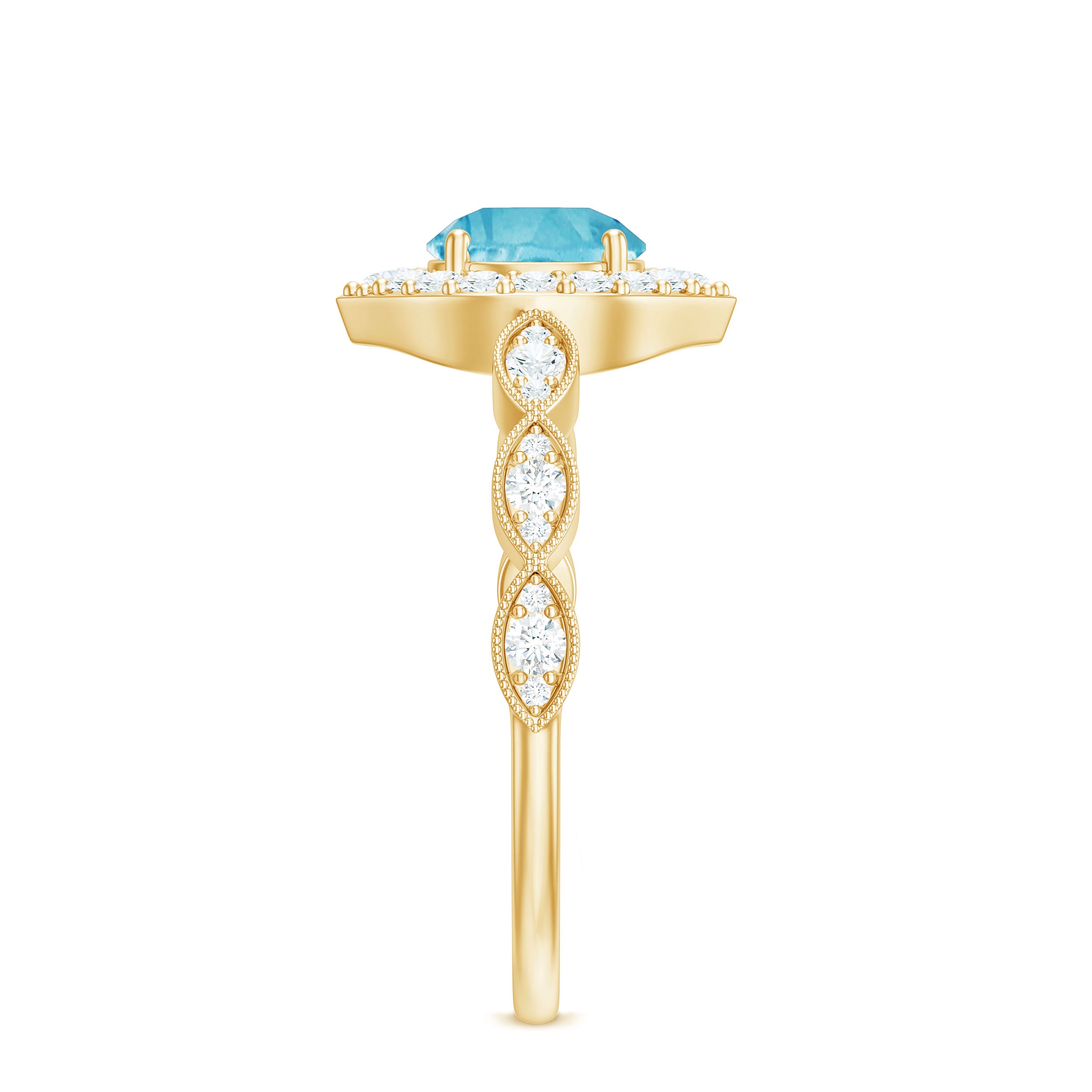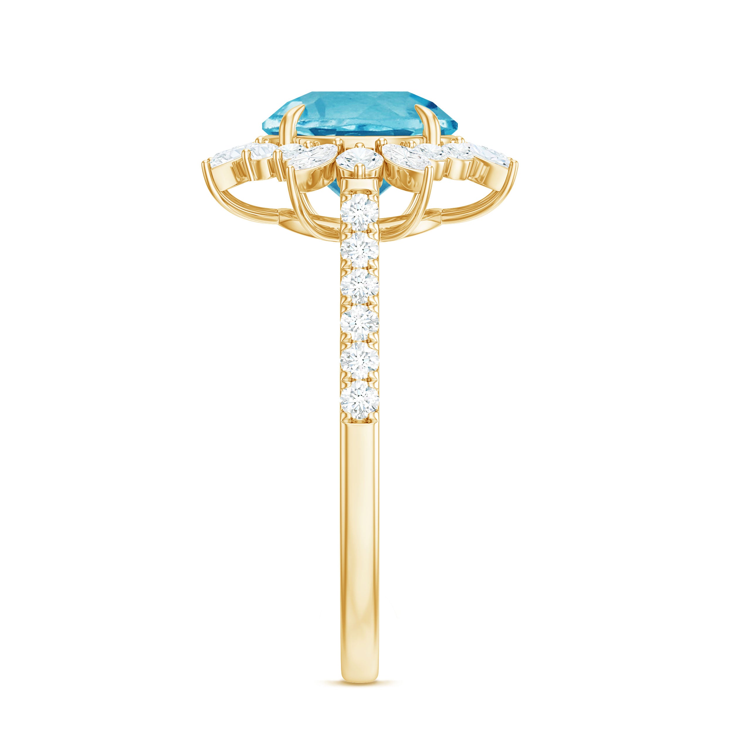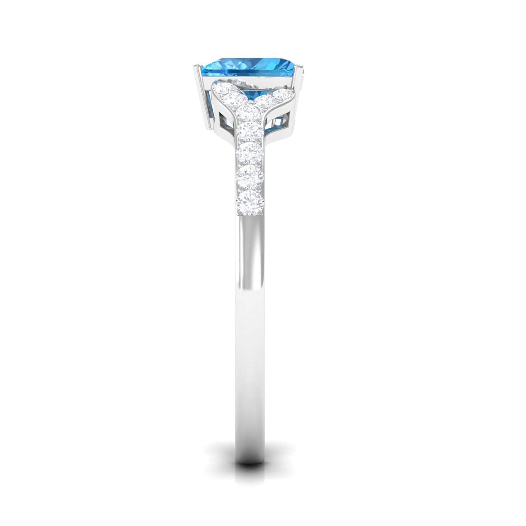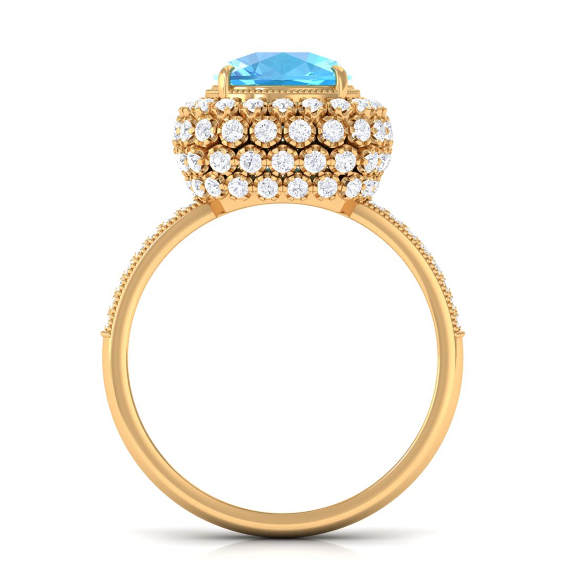 For the amalgamation of ring designs, our experts constantly experiment with different gold colors and Swiss blue topaz shapes to curate out of the box designs of Swiss blue topaz ring in yellow gold, white gold and rose gold. Popular & diverse shapes like oval, round, princess and cushion, further helps in broadening Swiss blue topaz engagement ring styles. Also, fine metal details and embellishments helps us in crafting vintage style blue topaz rings and many more to best suit your personal style.