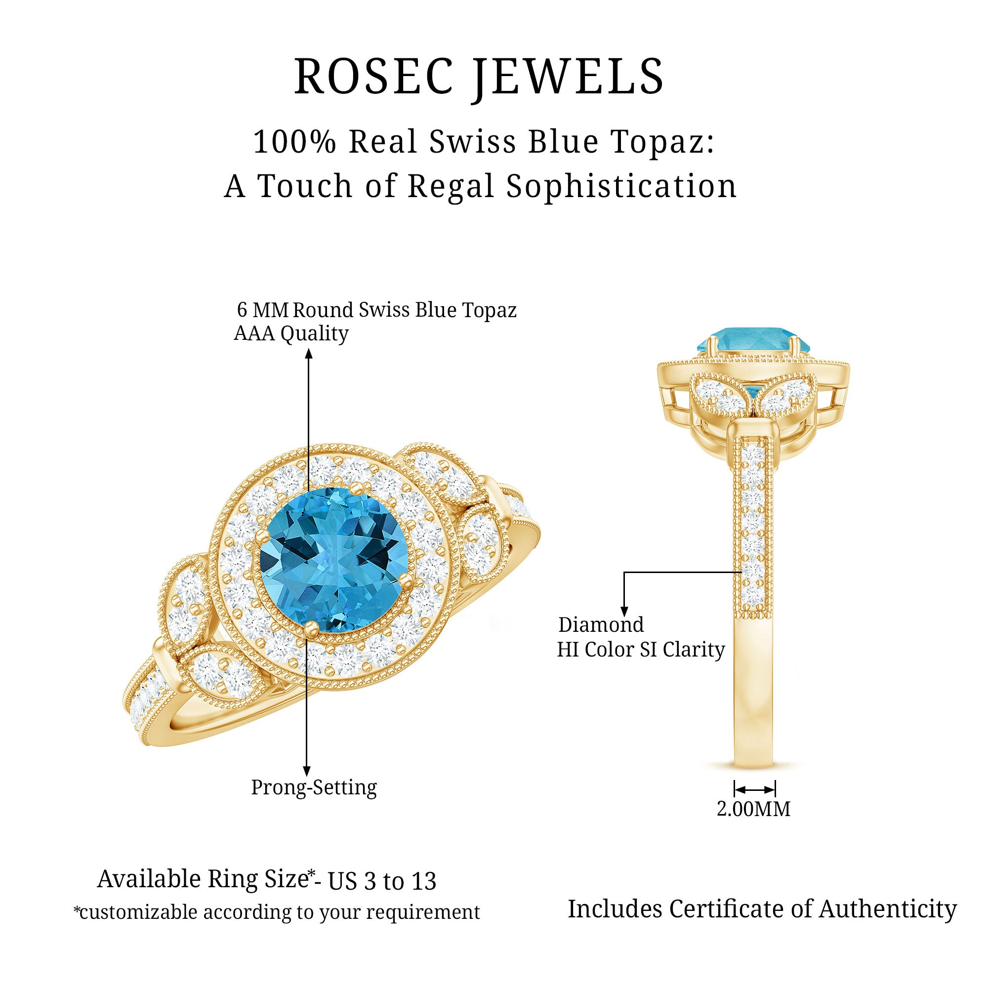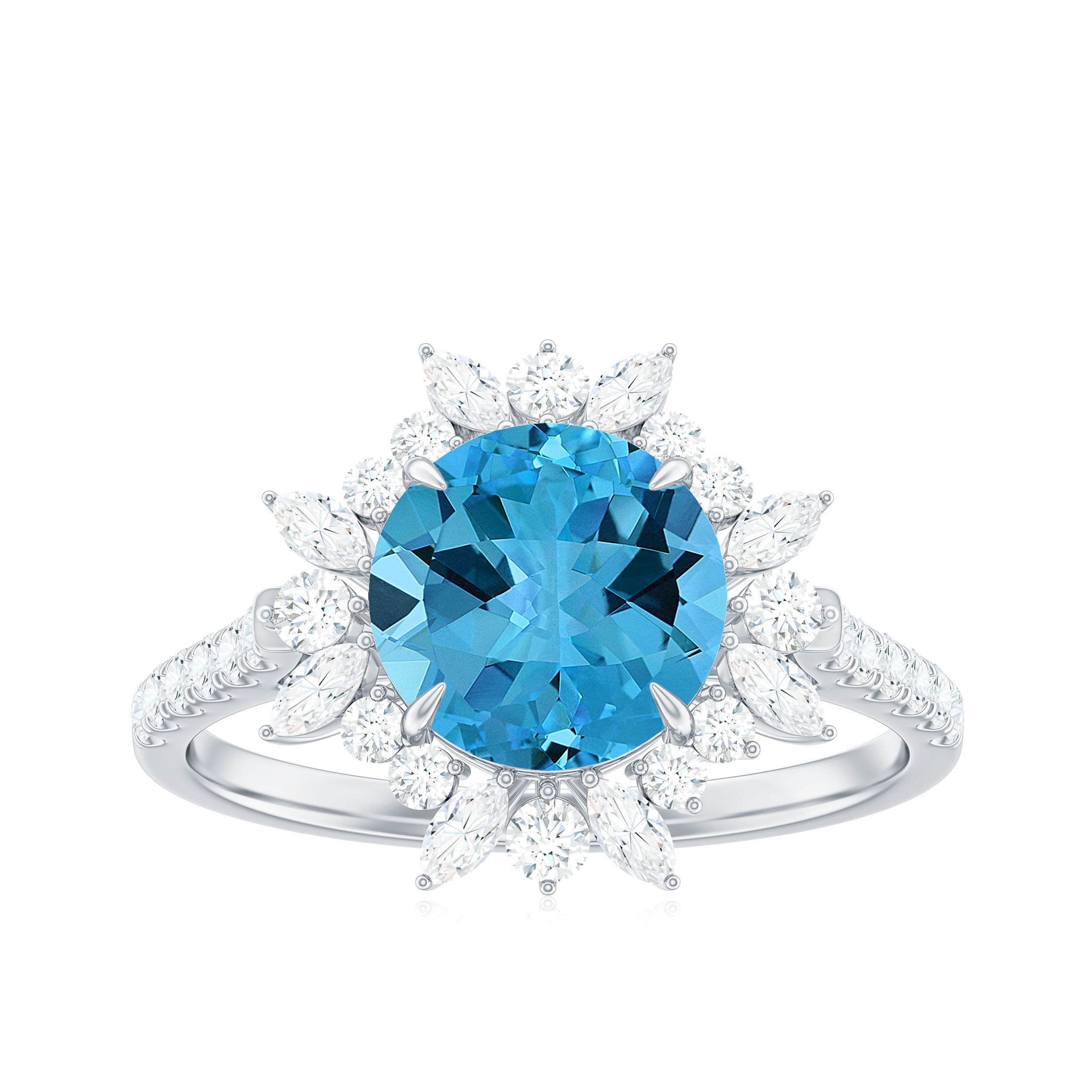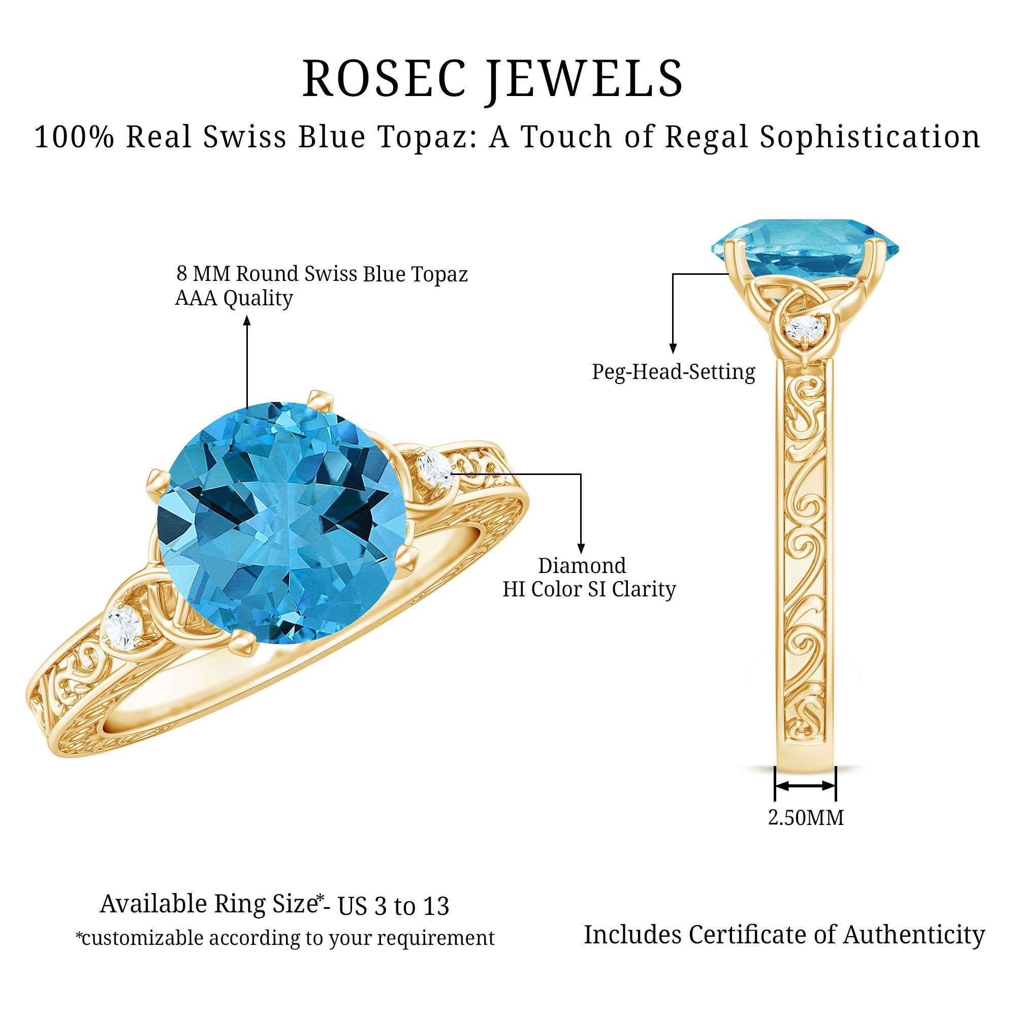 The elegant bright blue hues and fantastic durability of the Swiss blue topaz motivate the jewelers around the globe to design intricate engagement rings with Swiss blue topaz.