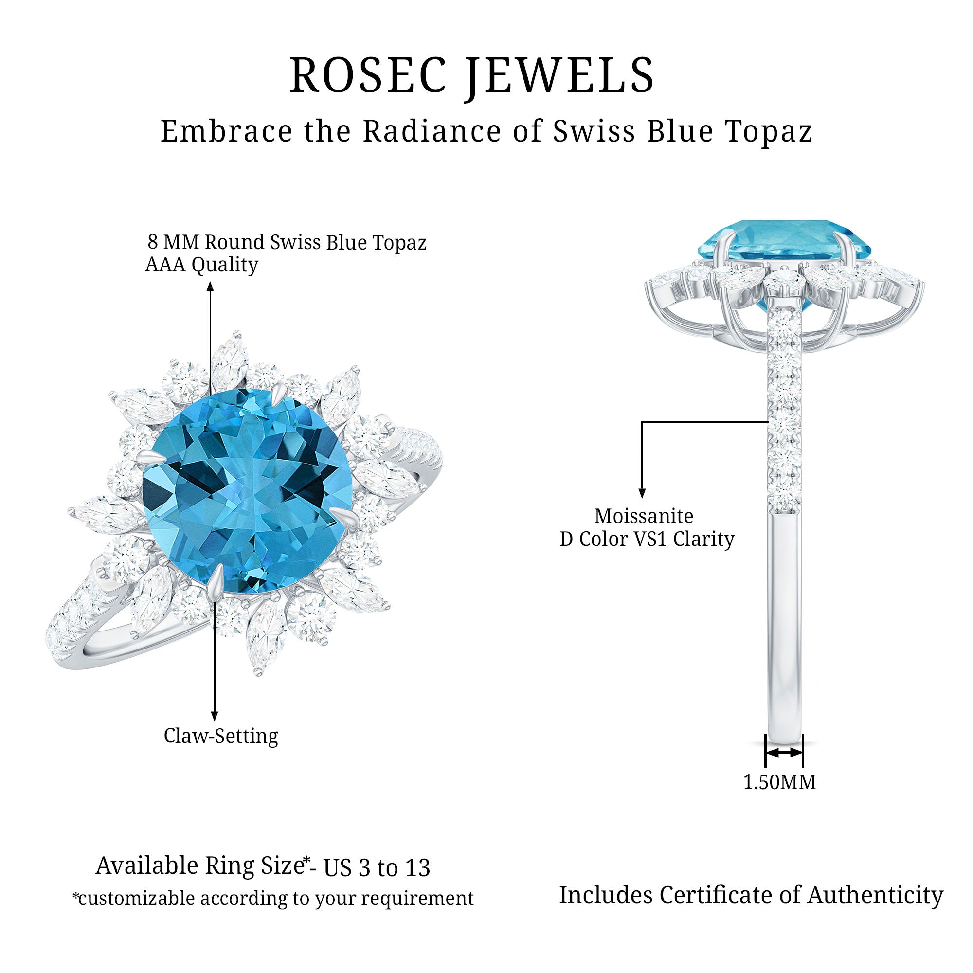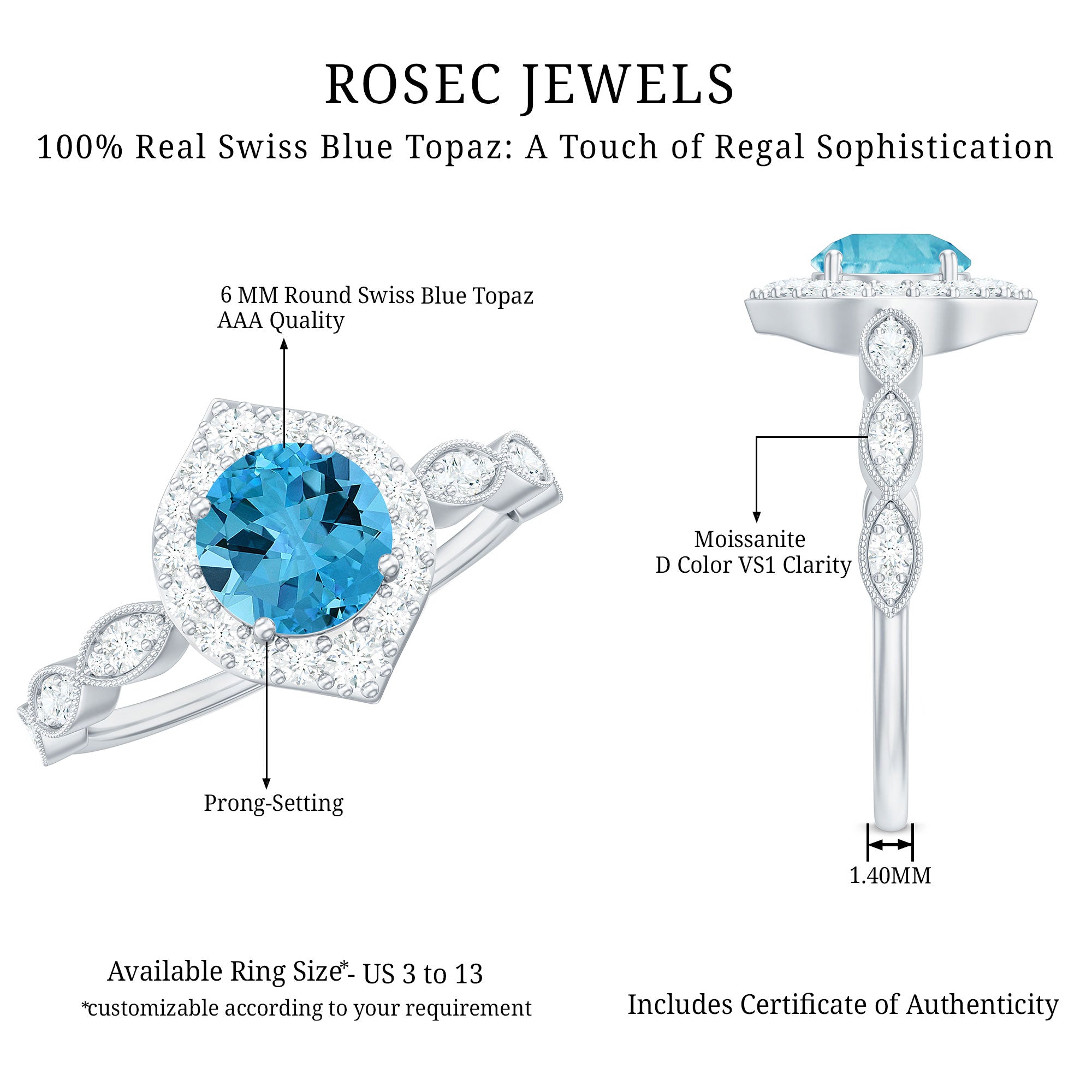 A mesmerizing collection of Swiss blue topaz engagement rings for proposing the love of your life. The bright blue hues of this silicate mineral are a desirable characteristic for curating charming jewelry for women. The sparkling elegance of the Swiss blue topaz rings for women comes from the delicate craftsmanship of our the team of expert artisans. We, at Rosec Jewels ensure quality check at every step of jewelry crafting and only after quality assurance, our Swiss topaz rings find their way into the lives of women with a taste for latest jewelry trends.