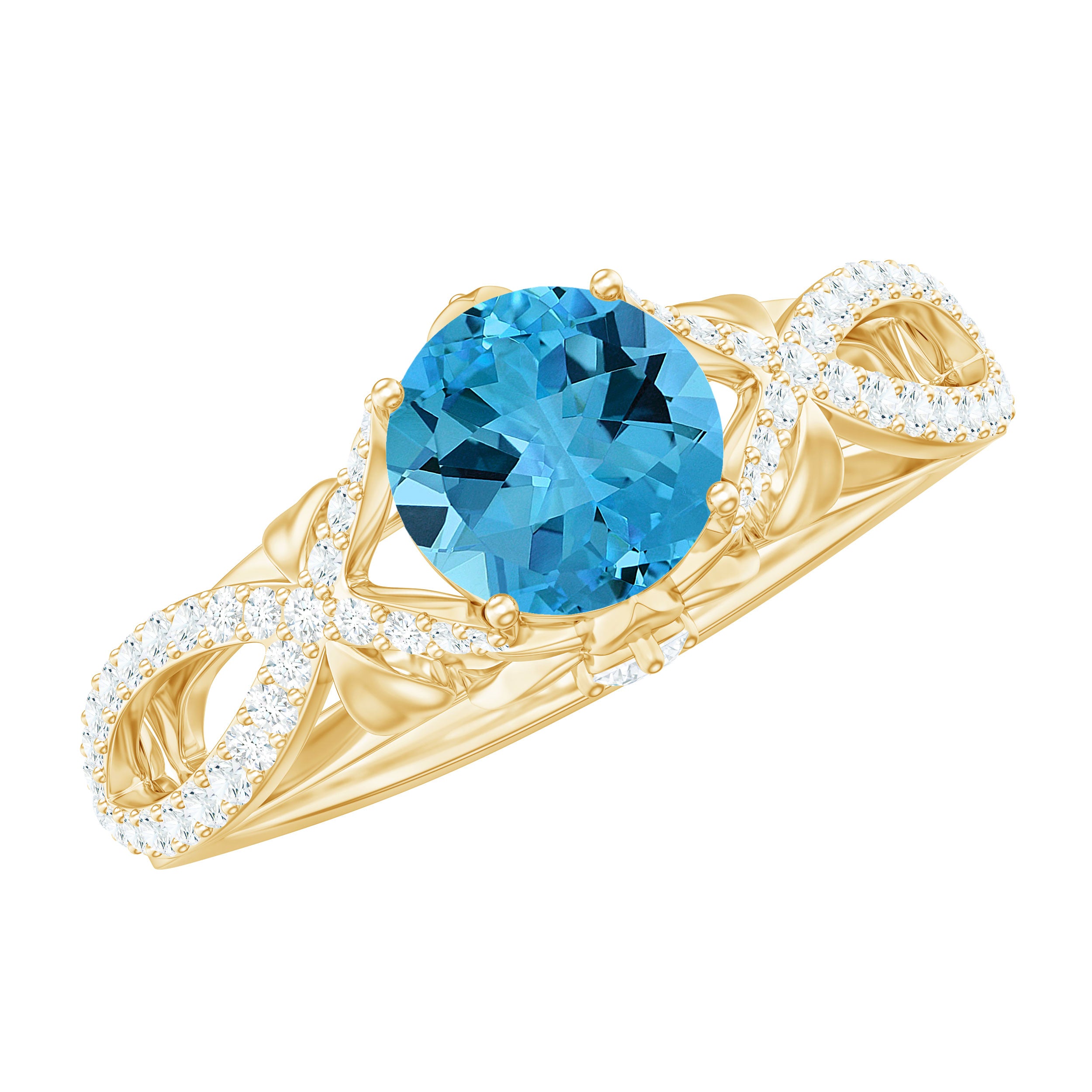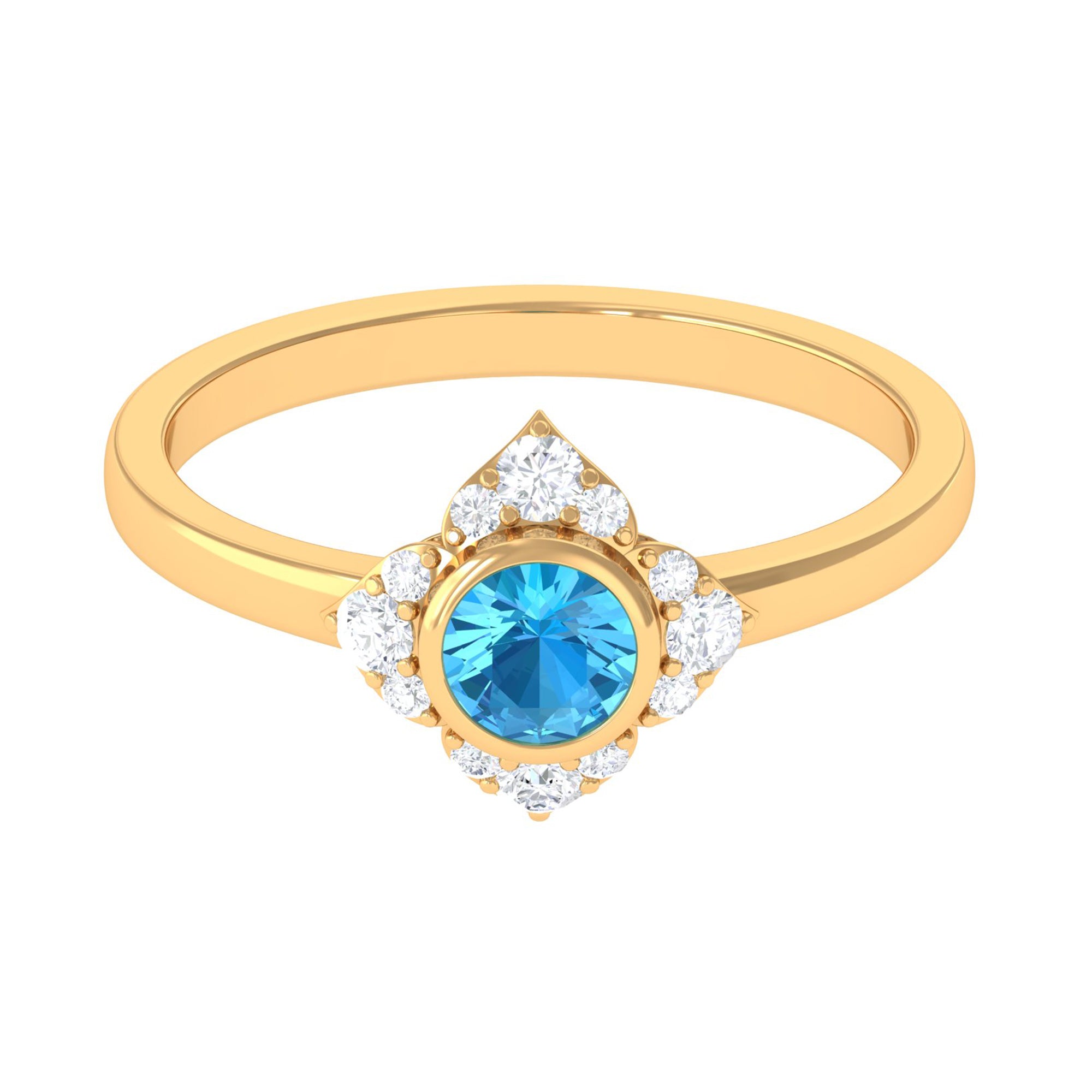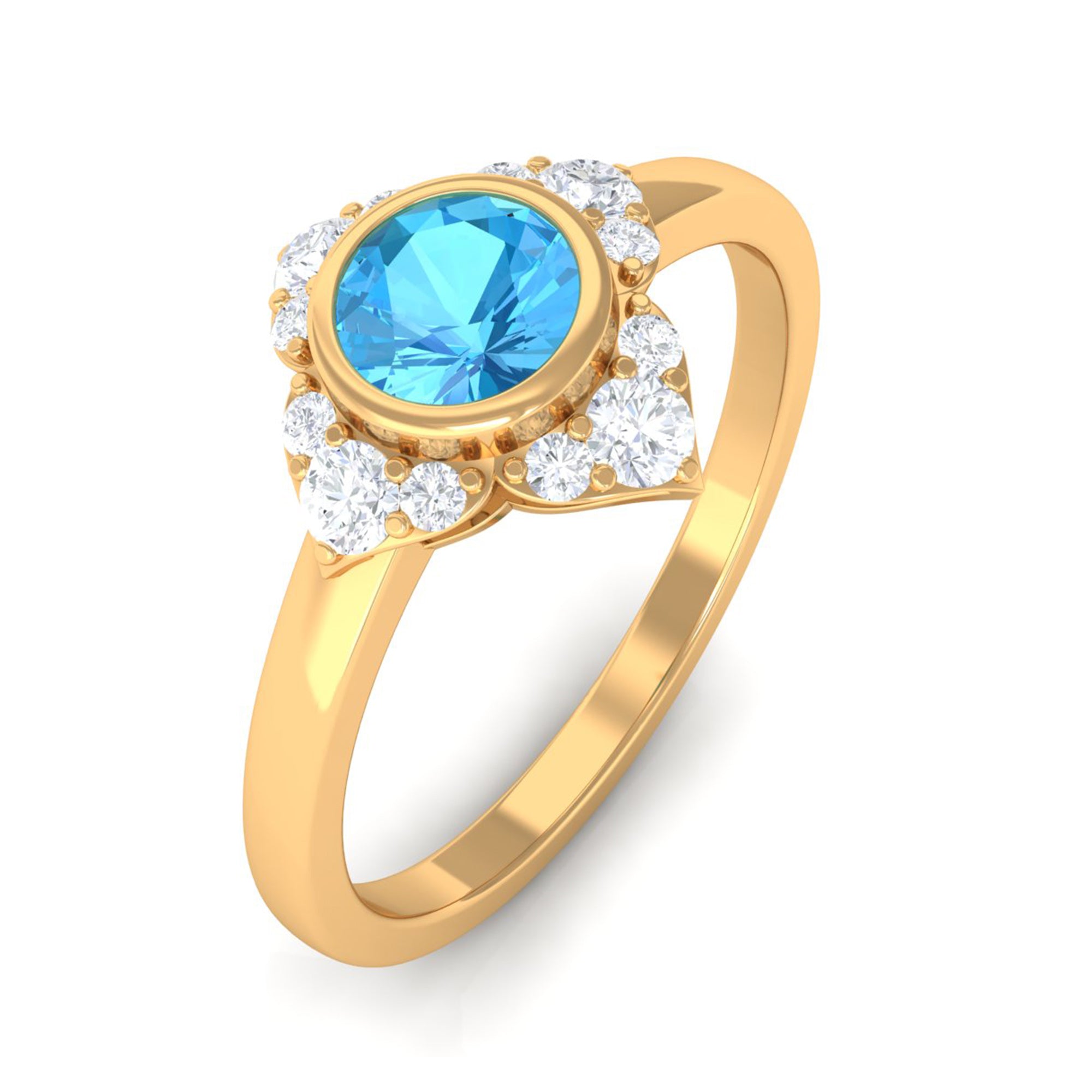 For the amalgamation of ring designs, our experts constantly experiment with different gold colors and Swiss blue topaz shapes to curate out of the box designs of Swiss blue topaz ring in yellow gold, white gold and rose gold. Popular & diverse shapes like oval, round, princess and cushion, further helps in broadening Swiss blue topaz engagement ring styles. Also, fine metal details and embellishments helps us in crafting vintage style blue topaz rings and many more to best suit your personal style.