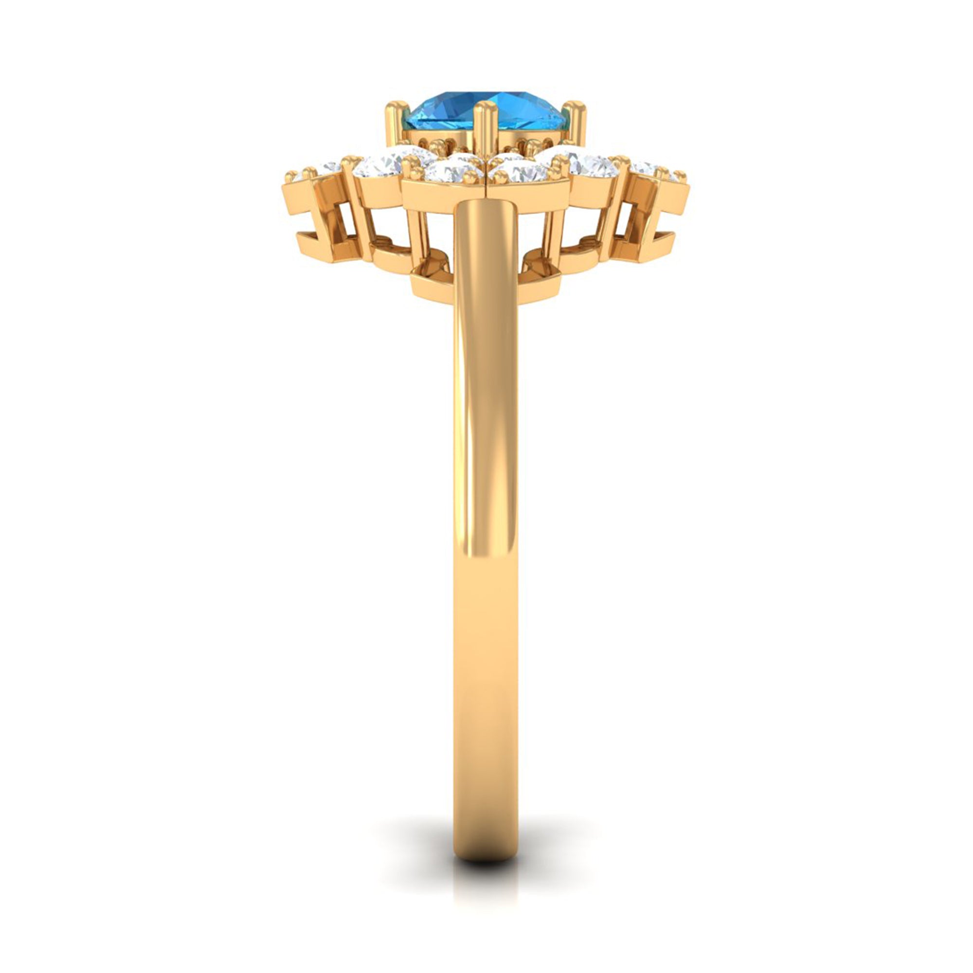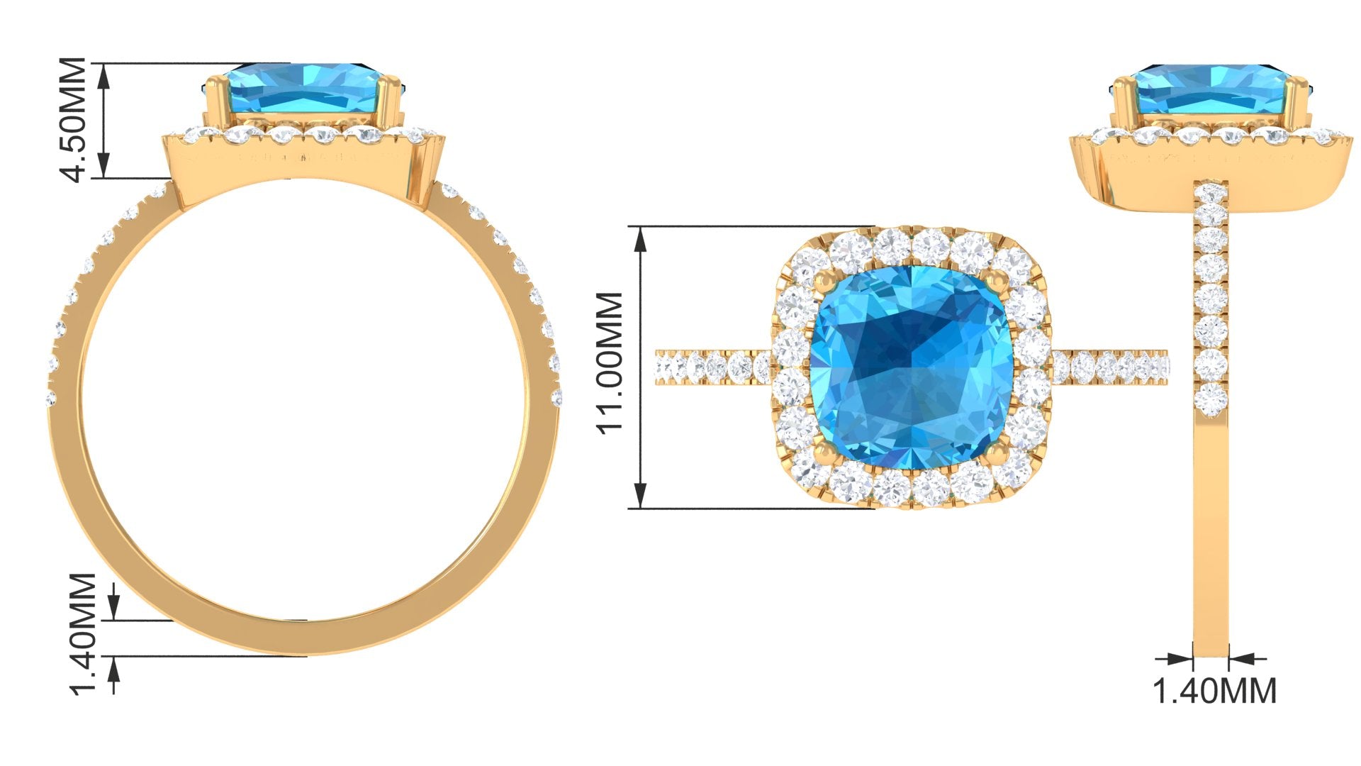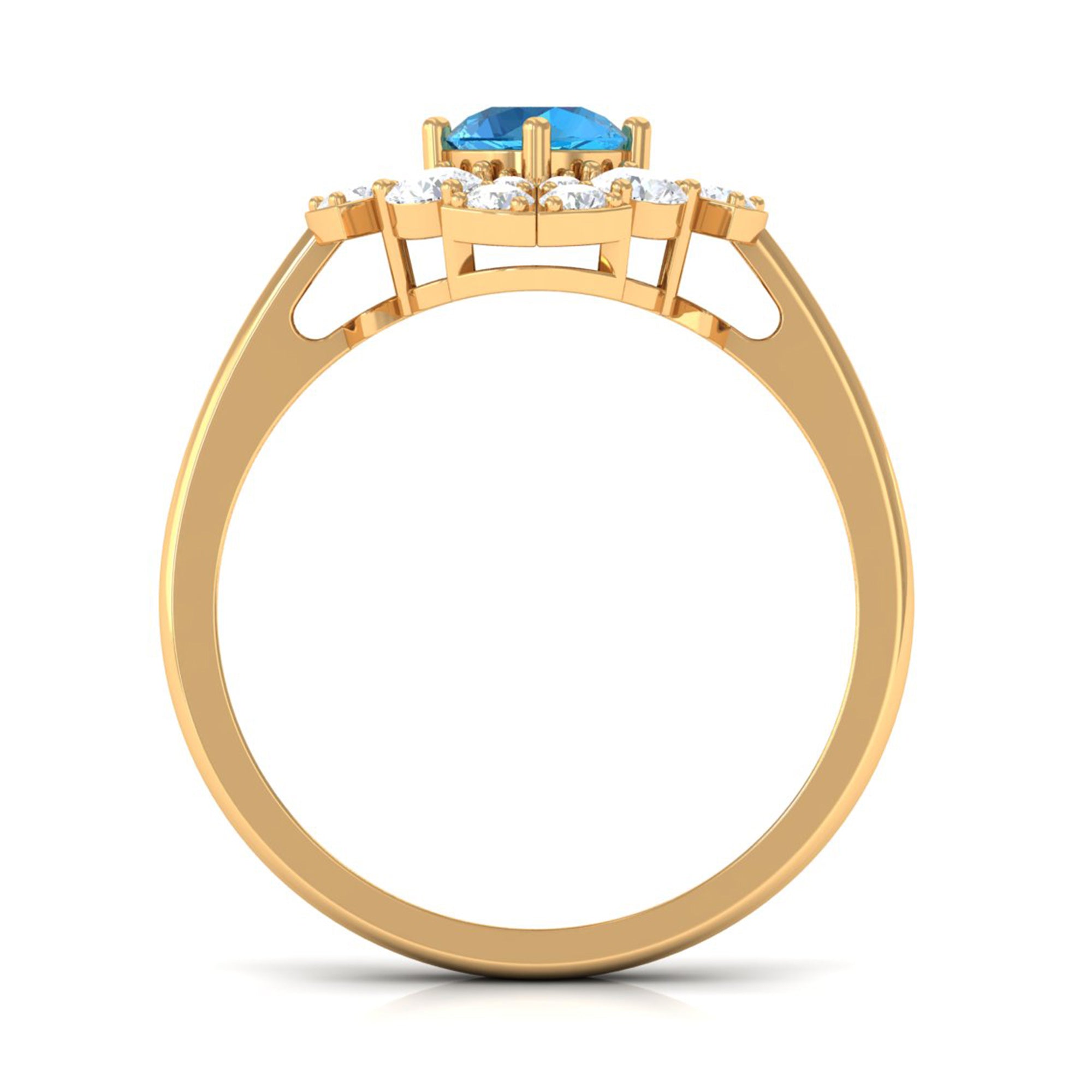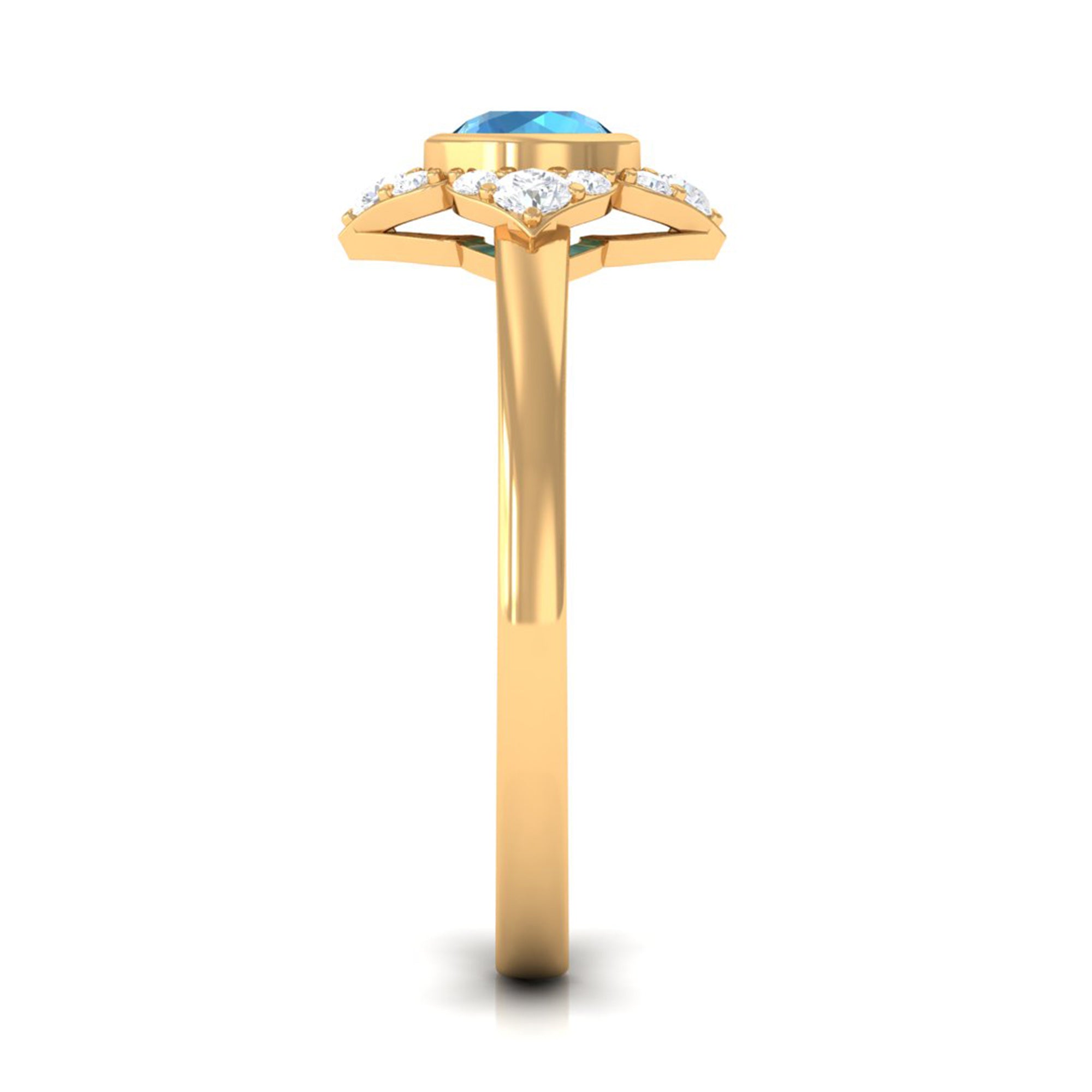 For the amalgamation of ring designs, our experts constantly experiment with different gold colors and Swiss blue topaz shapes to curate out of the box designs of Swiss blue topaz ring in yellow gold, white gold and rose gold. Popular & diverse shapes like oval, round, princess and cushion, further helps in broadening Swiss blue topaz engagement ring styles. Also, fine metal details and embellishments helps us in crafting vintage style blue topaz rings and many more to best suit your personal style.