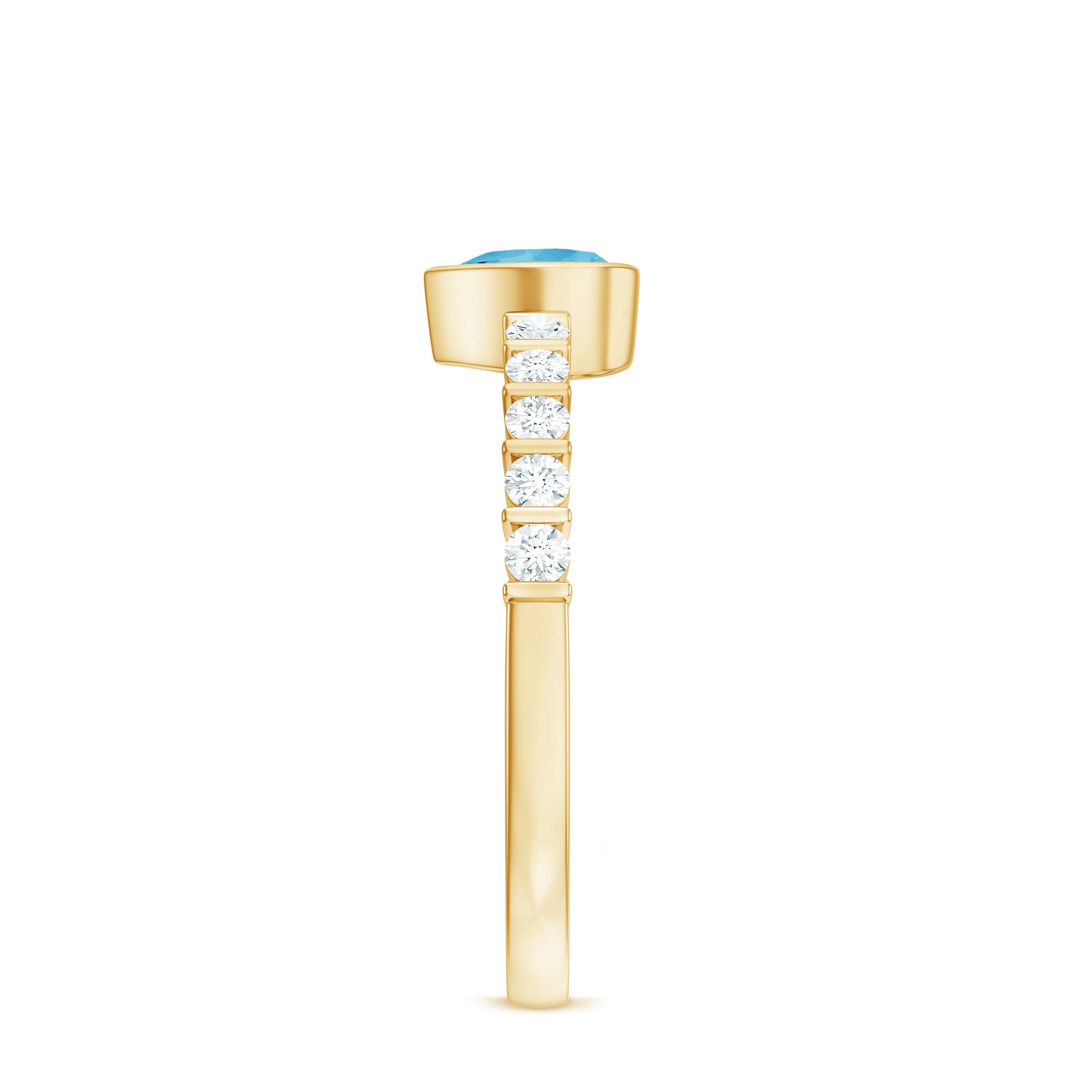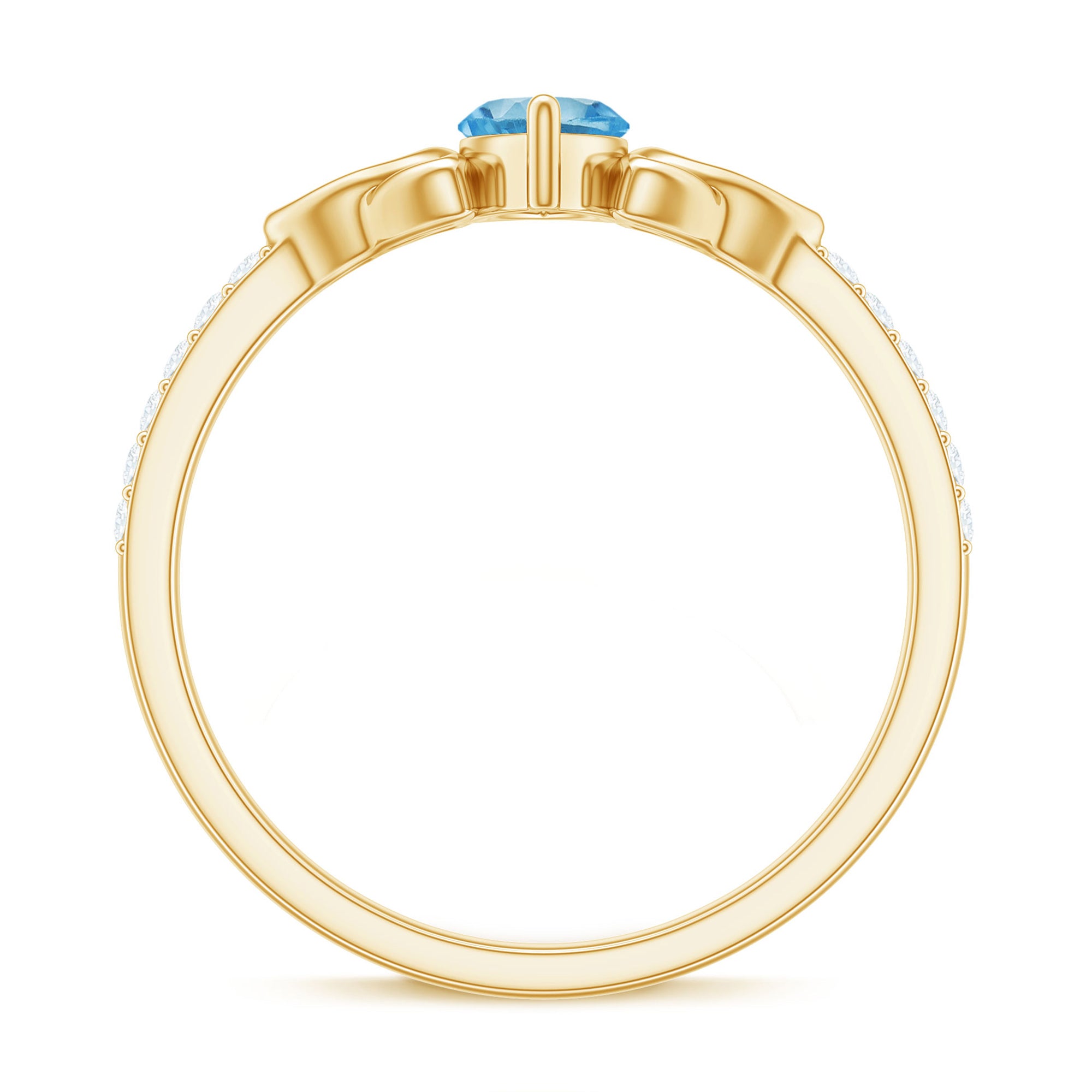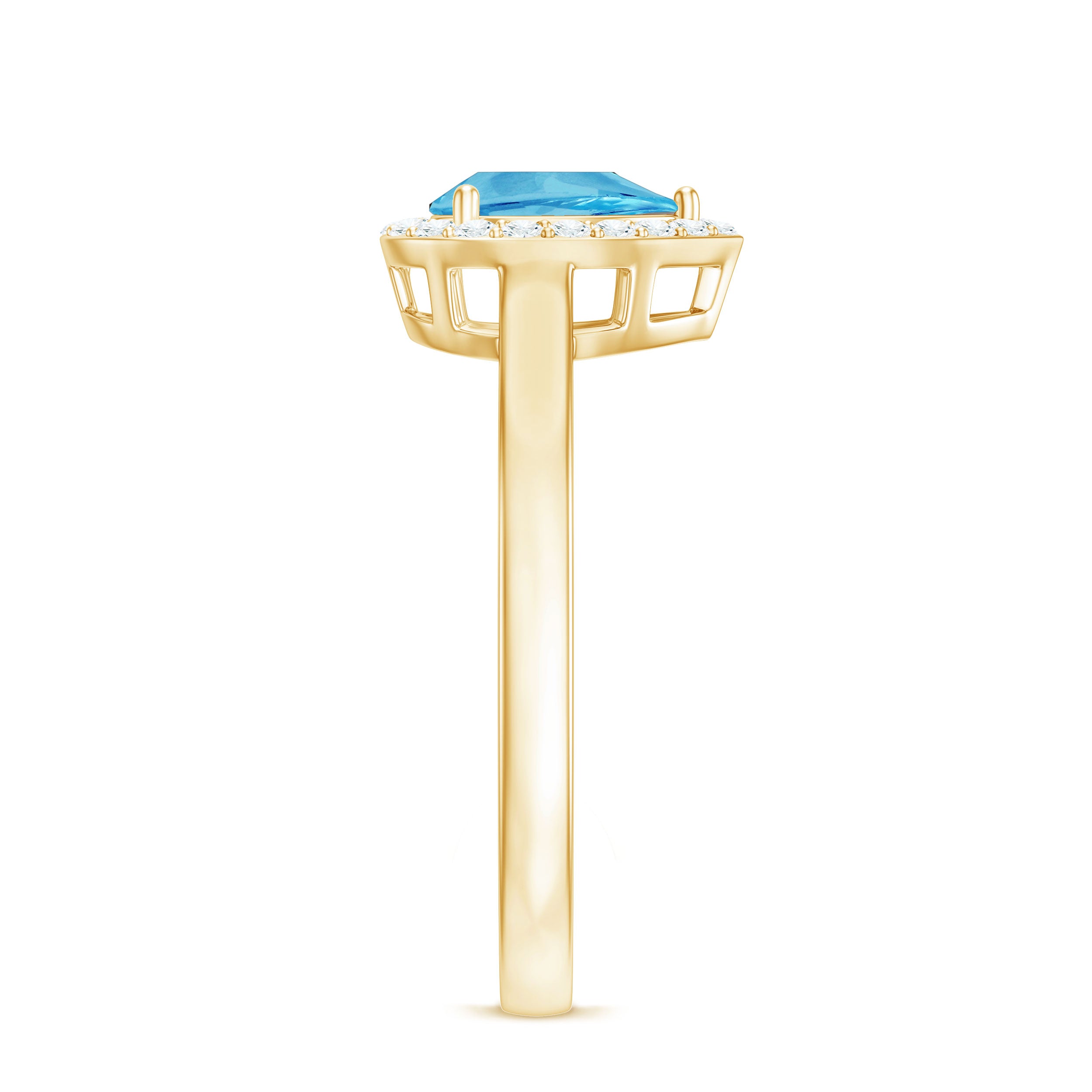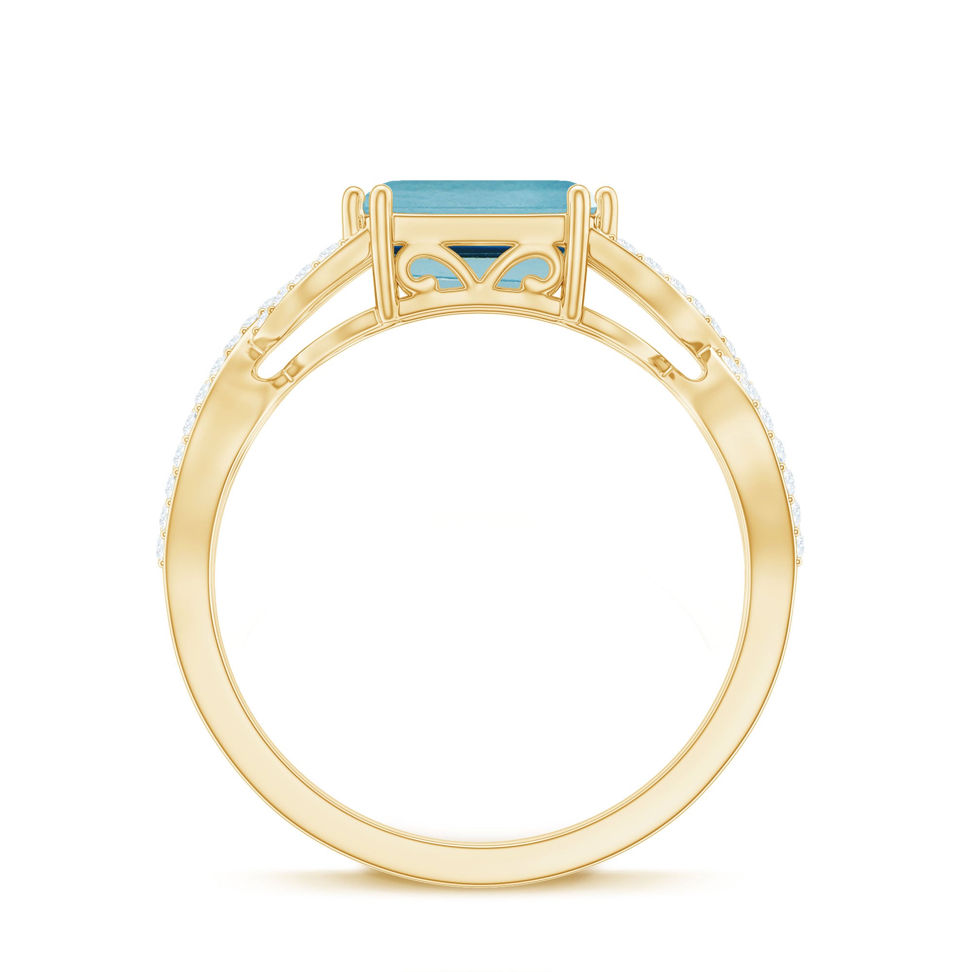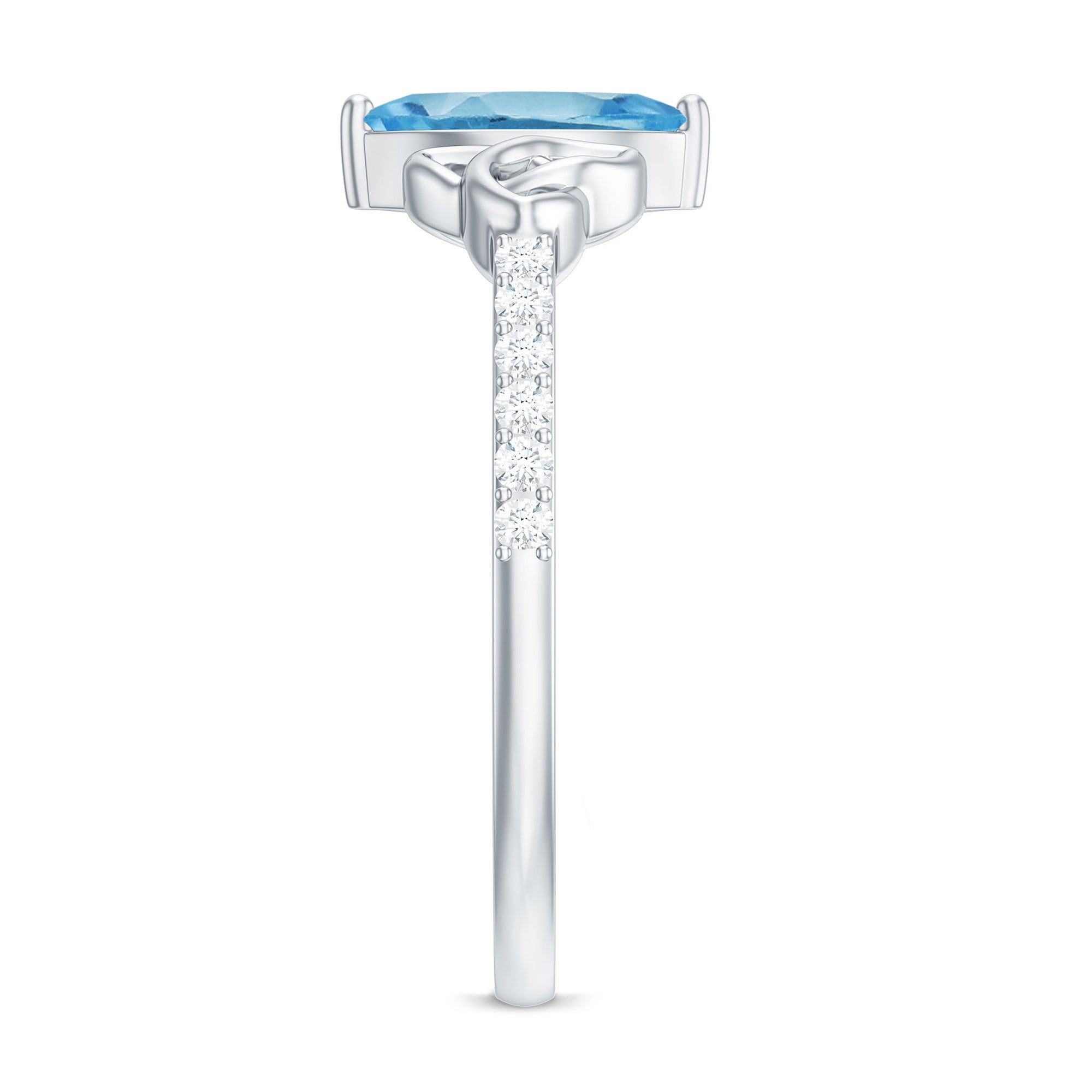 The center-stone of Swiss Blue Topaz here is sparkled up with the encircling of Diamond/Moissanite (that we fondly term ‘Halo’). That makes the Swiss Blue Topaz appear even brighter while highlighting its beauty at its best. Surprisingly, it also gives off the illusion of a bigger Topaz. So, if a Swiss Blue Topaz and Diamond Ring is on your list, this style might turn out to be your best bet.