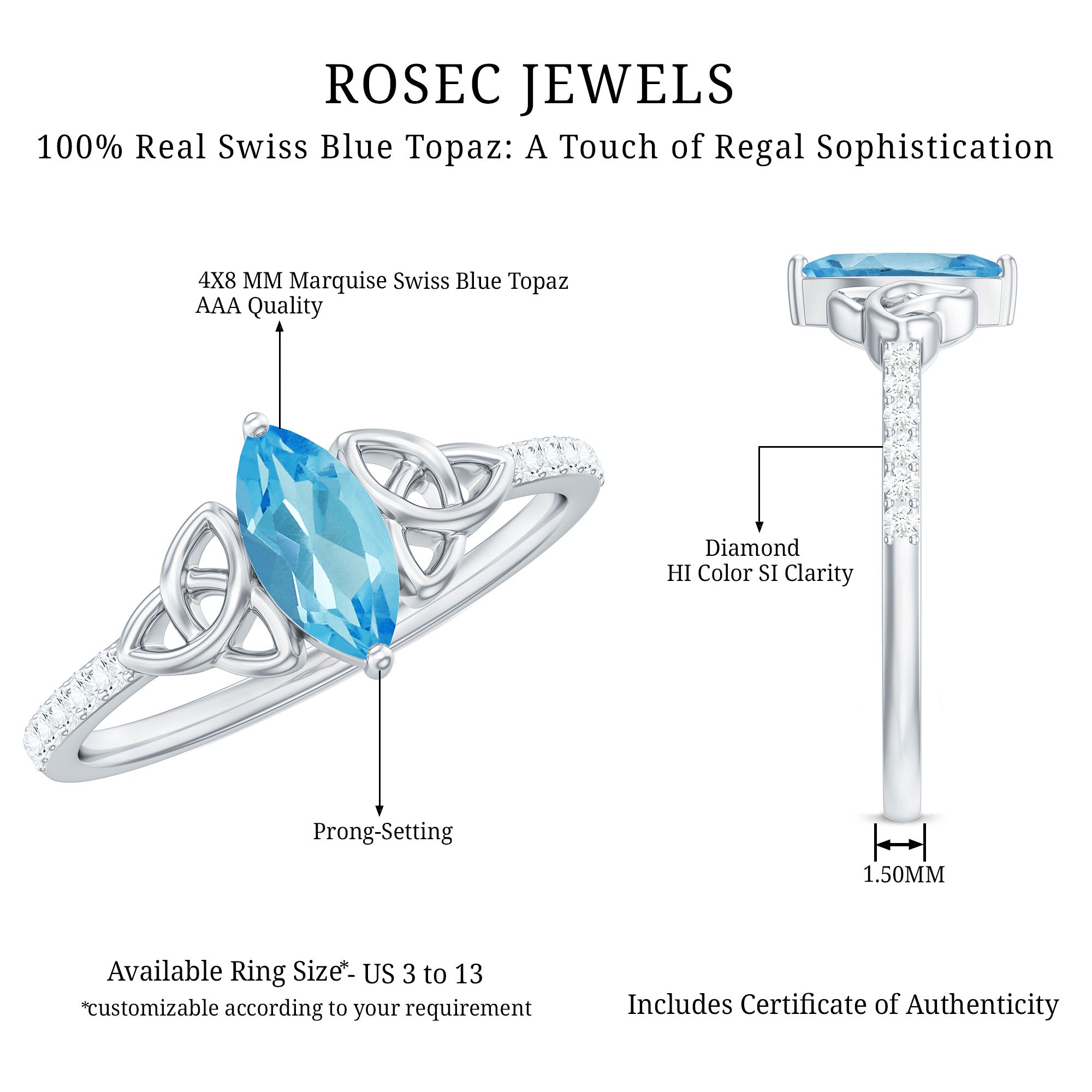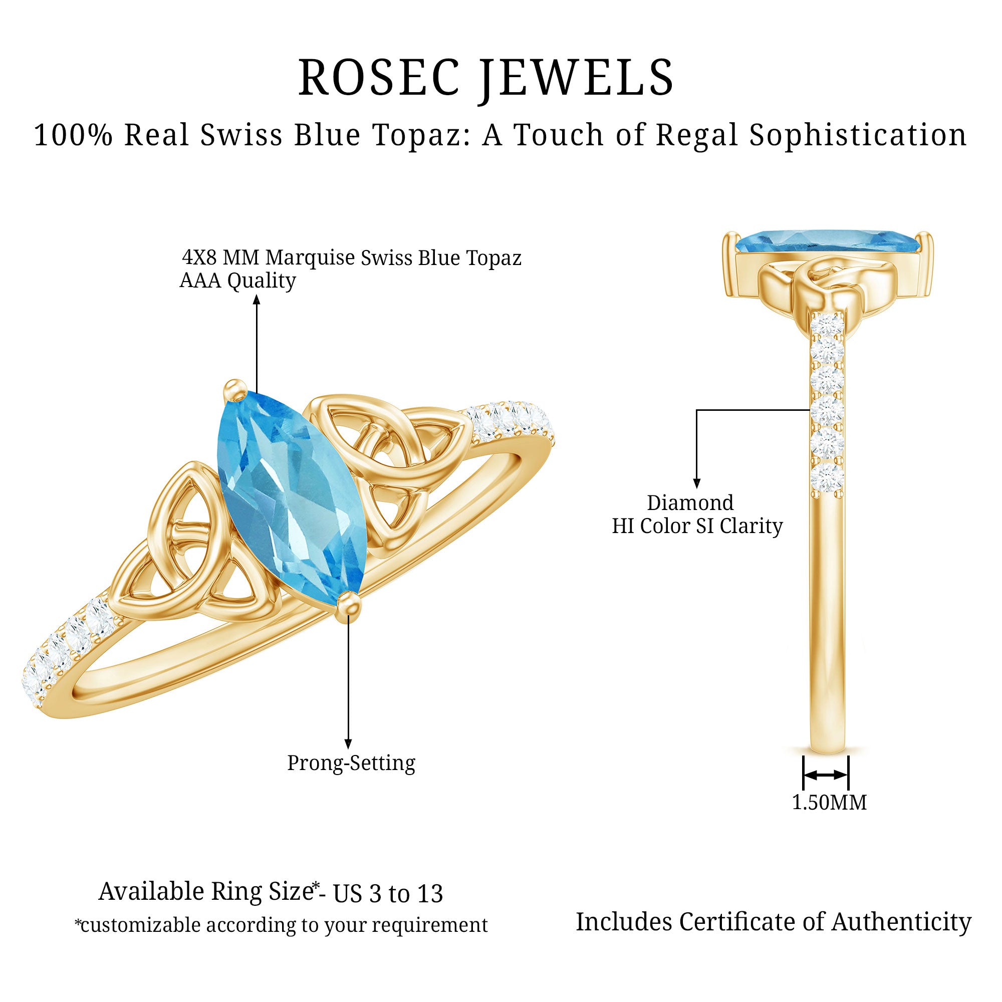 Wearing a Swiss Blue Topaz Ring is often believed to signify loyalty, true love, clear-sightedness, and righteousness. True to its serene hue, it works miraculously for enhancing creativity, honesty, and clarity of feelings. And interestingly, Blue Topaz is considered a wonderful gemstone for expressing love which makes a Swiss Blue Topaz Engagement Ring such a meaningful pick.