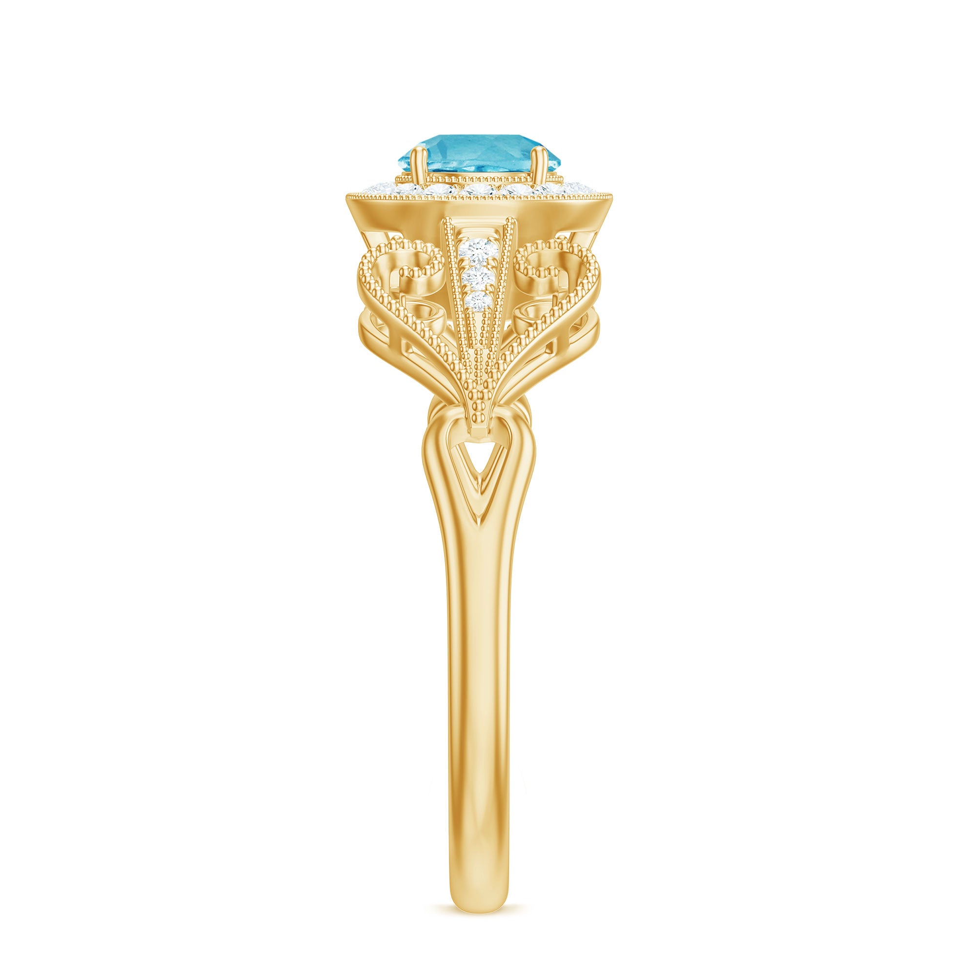 A Vintage Swiss Blue Topaz Ring is reminiscent of the iconic styles that were popular back in the art-forward Edwardian, Victorian, and Art Deco Eras. It features ornate designs that breathe life into abstract patterns, heavy migraine and filigree detailing, and other retro engravings. Needless to mention, it makes your Swiss Blue Topaz Ring look nothing short of a wearable piece of art.