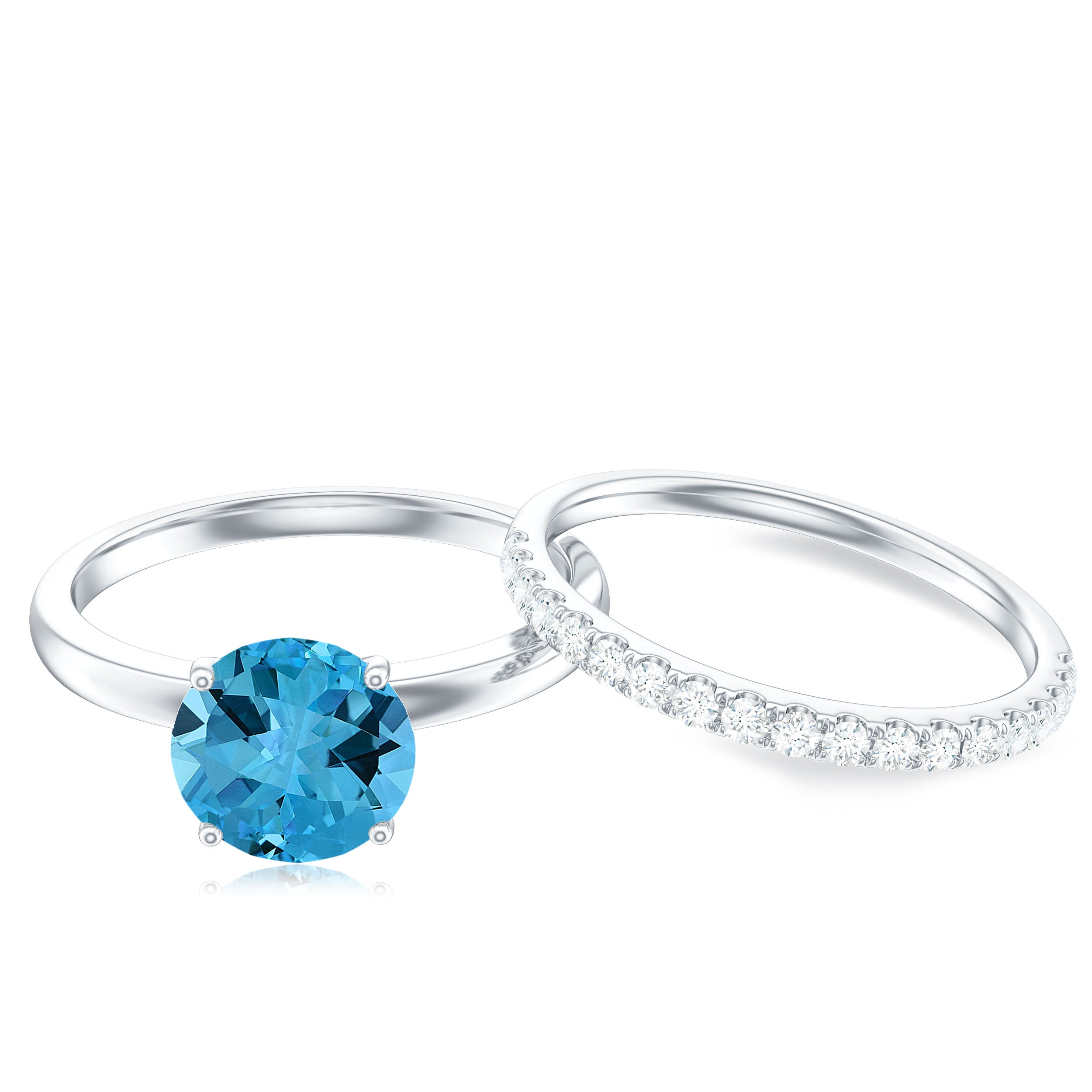 A Swiss Blue Topaz Eternity Ring is adorned with an endless row of Swiss Blue Topaz all over the band (i.e., eternity). The Swiss Blue Topaz here takes all the center stage that it wants. It makes for the most classic yet versatile ring styles out there that you can easily stack with your favorite rings. It is meant to reflect the kind of bond that is meant to last a lifetime, which makes it a highly treasured Swiss Blue Topaz Wedding Ring.