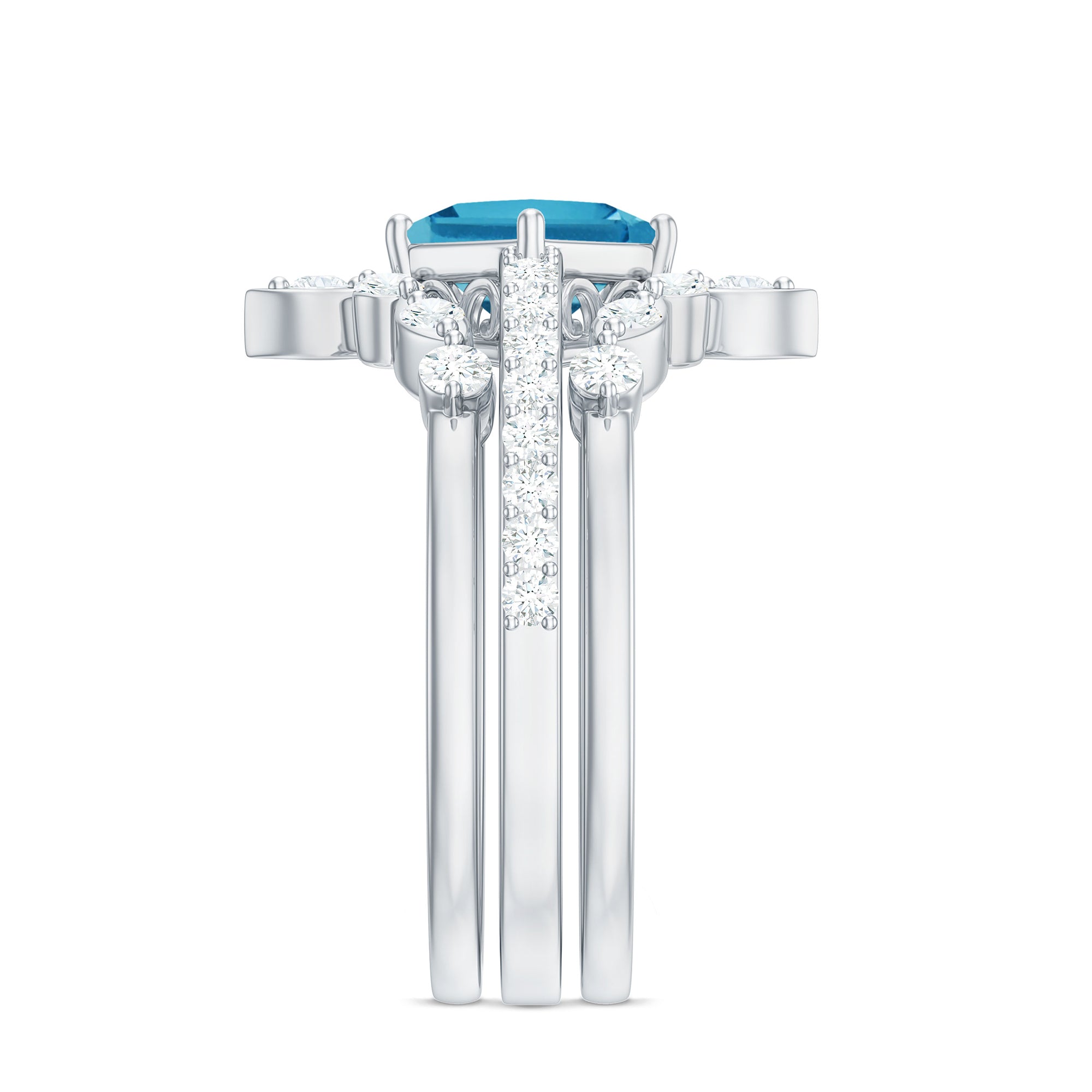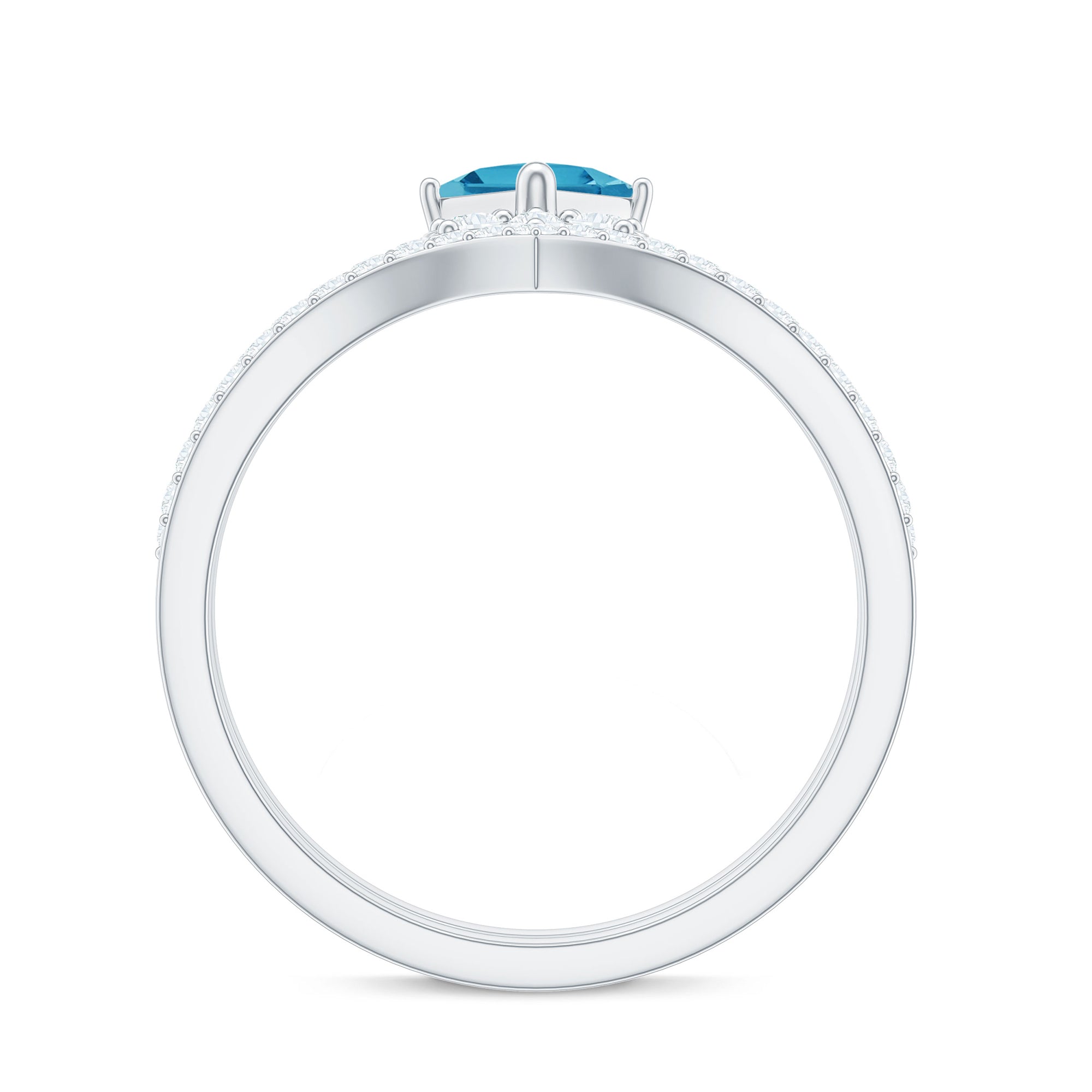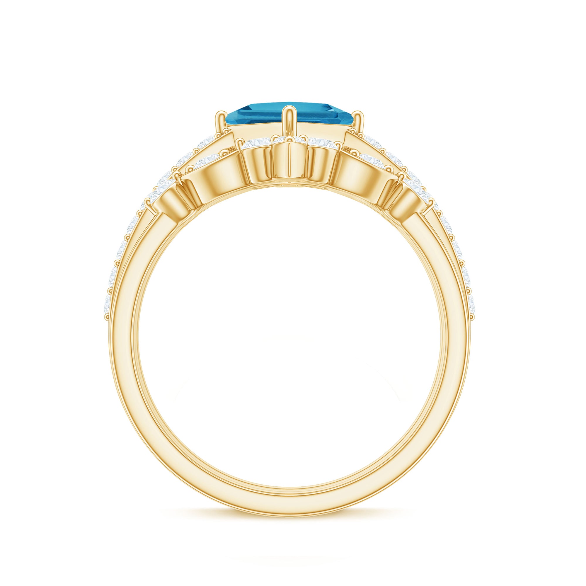 - Color: The signature color of Swiss blue topaz wedding rings is characterized by bright to light shades falling mid-range in colors of London Blue to Sky Blue Topaz.