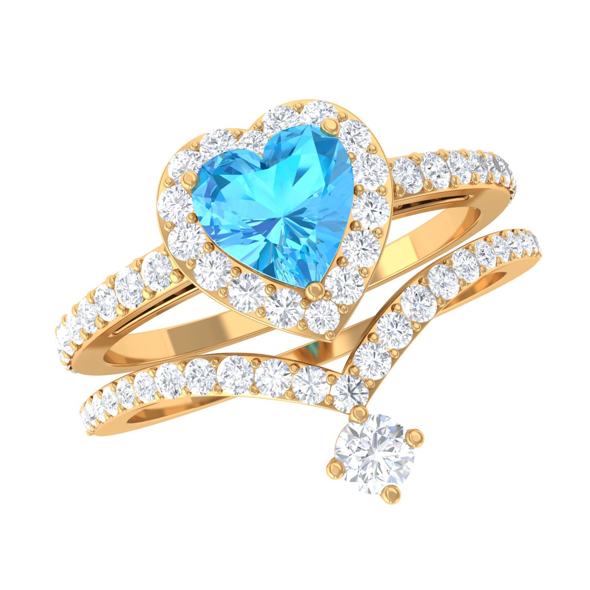 For diversification in ring designs, we experiment with variety of colorful gold and Swiss blue topaz shapes to curate out of the box designs of Swiss blue topaz ring in yellow gold, white gold and rose gold. Also, fine metal detailing and embellishments helps us in crafting vintage style blue topaz rings and many more to best suit your personal style.