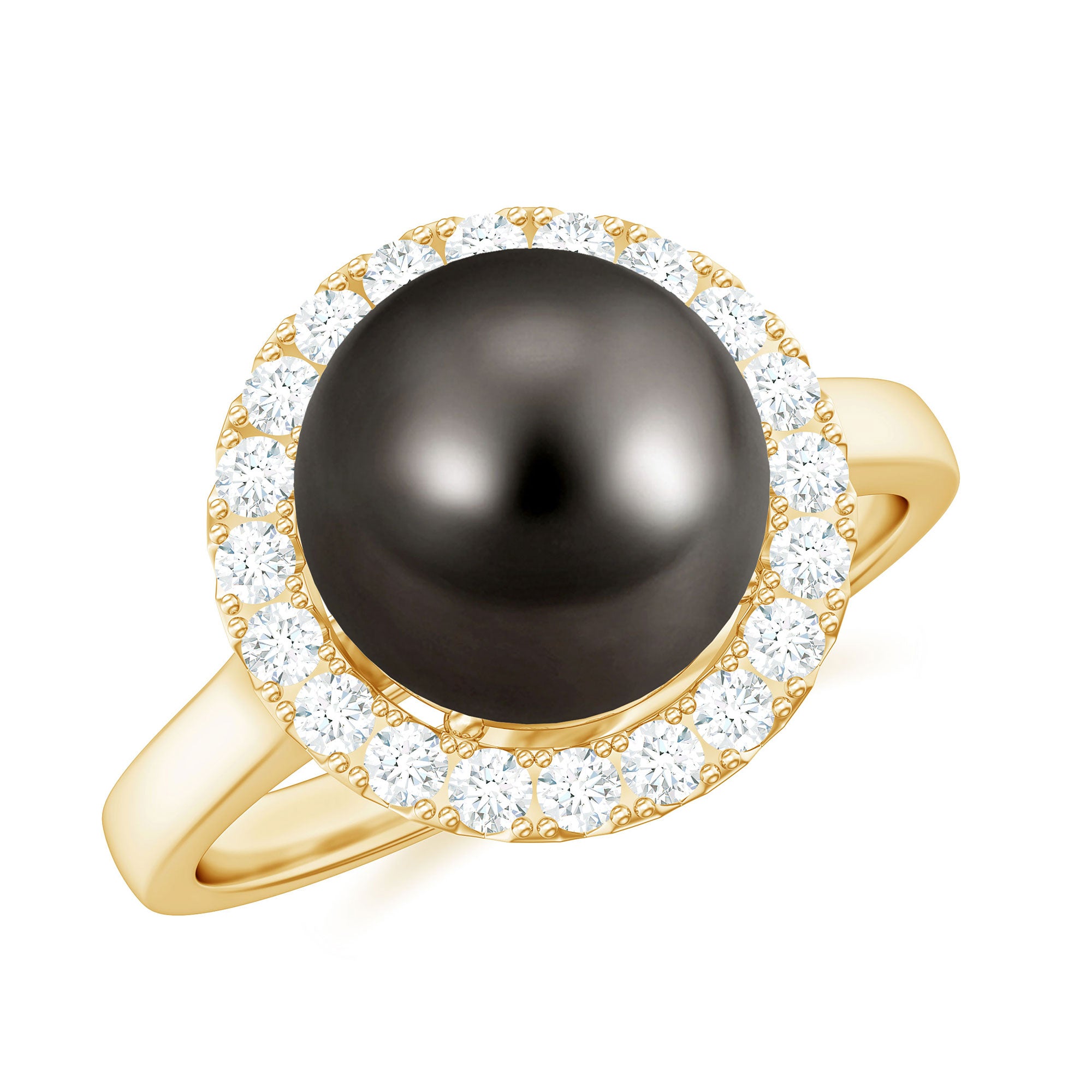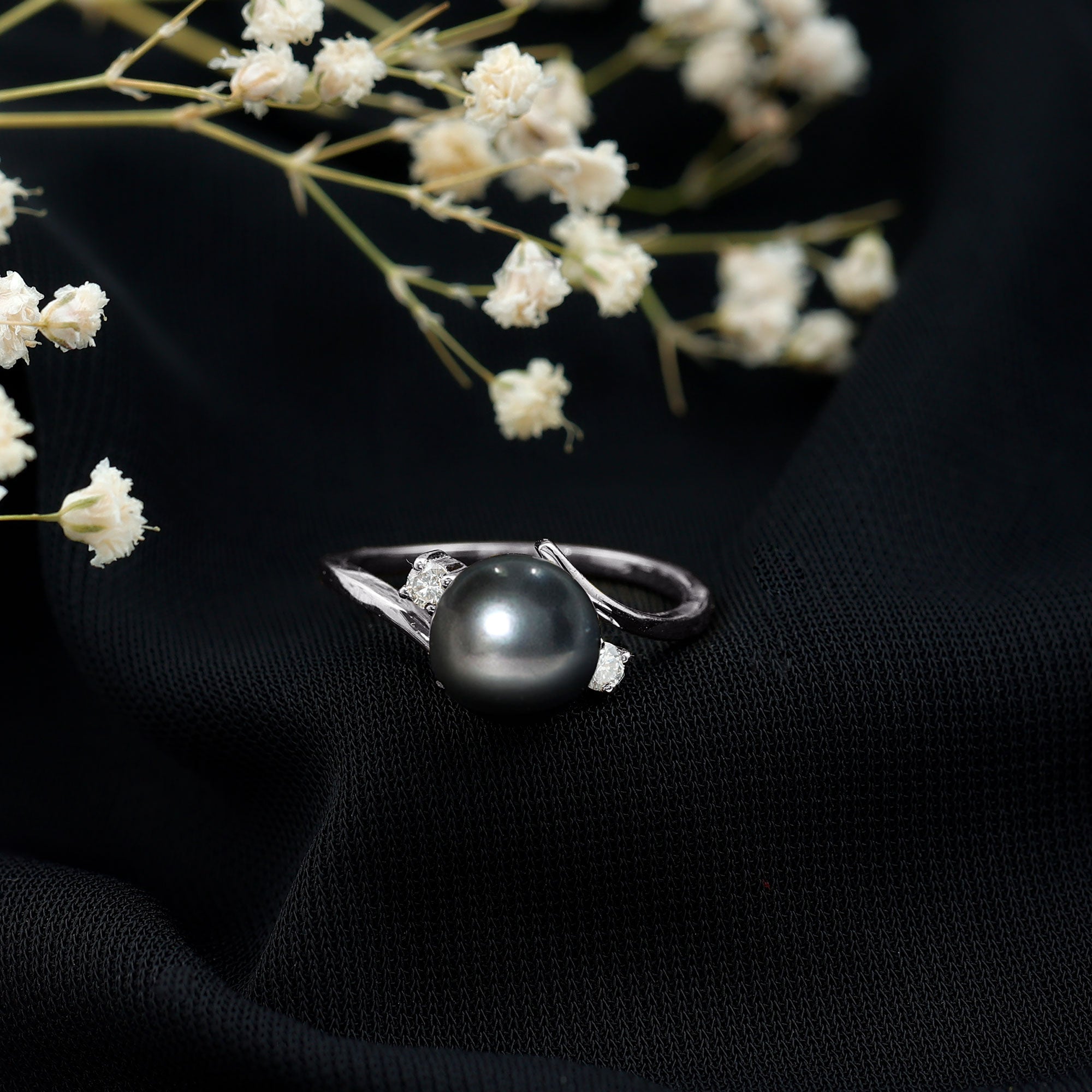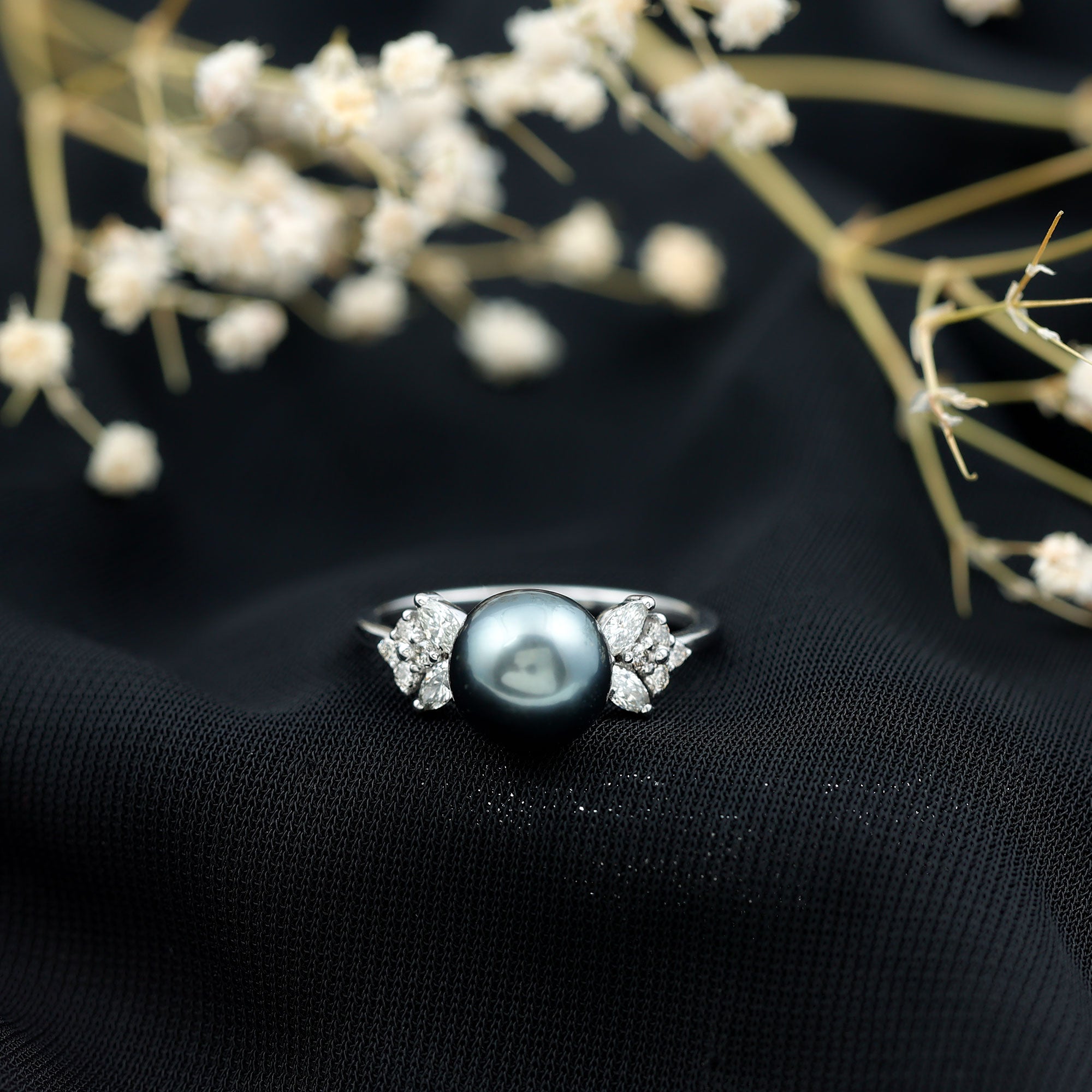 Stunning and elegant accessory, these exquisite rings highlight the beauty of black pearl and diamond ring, that are surrounded by small shimmery diamonds or other gemstones. The halo motif brings the extra sparkle touch to the ring while putting the center gemstone into the limelight.