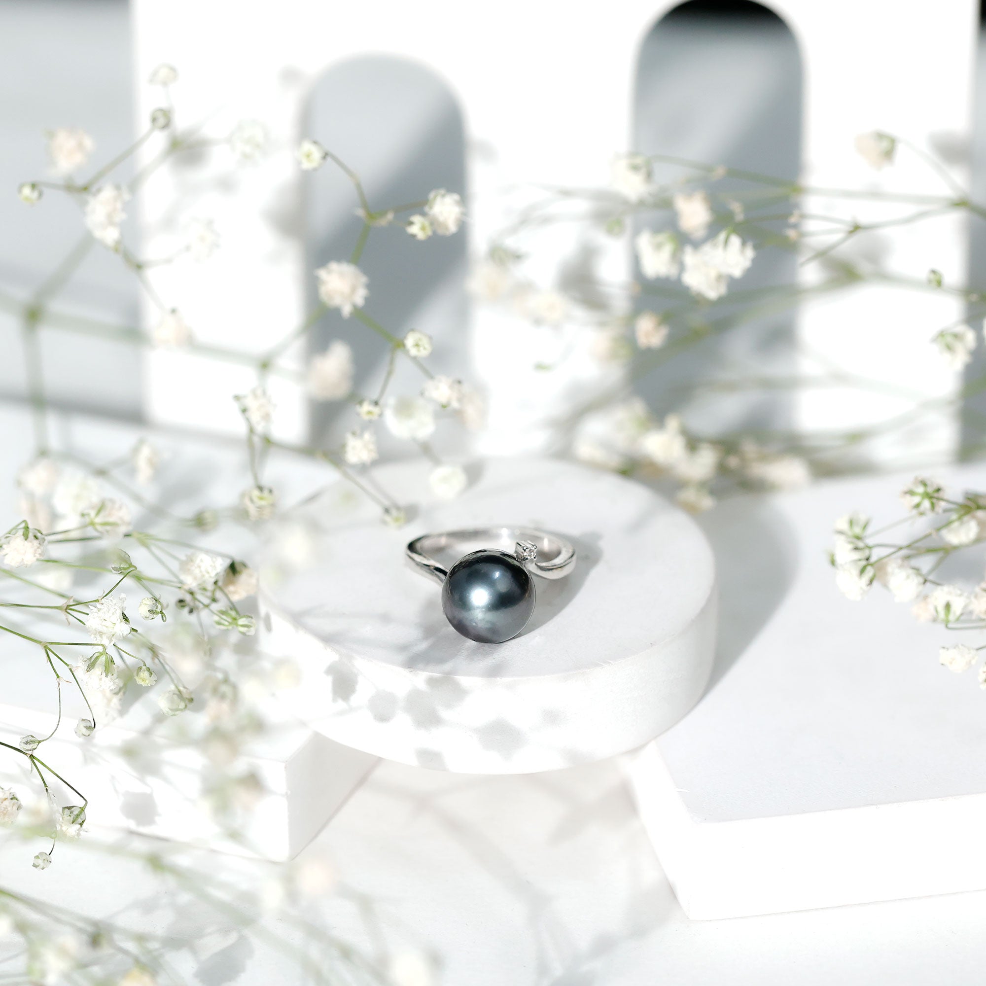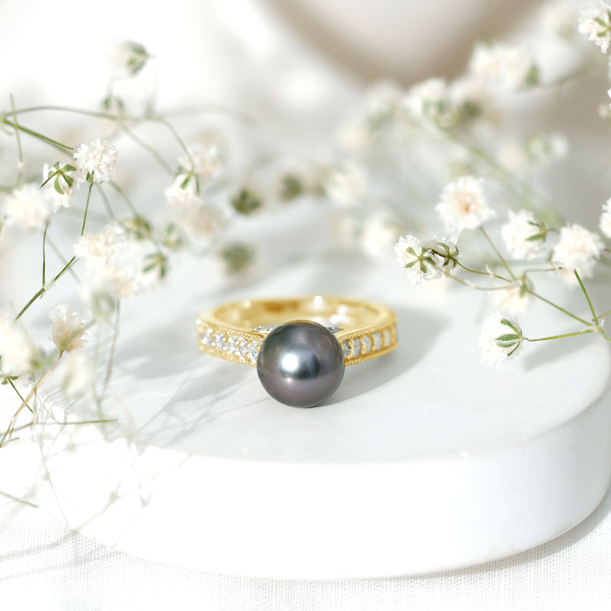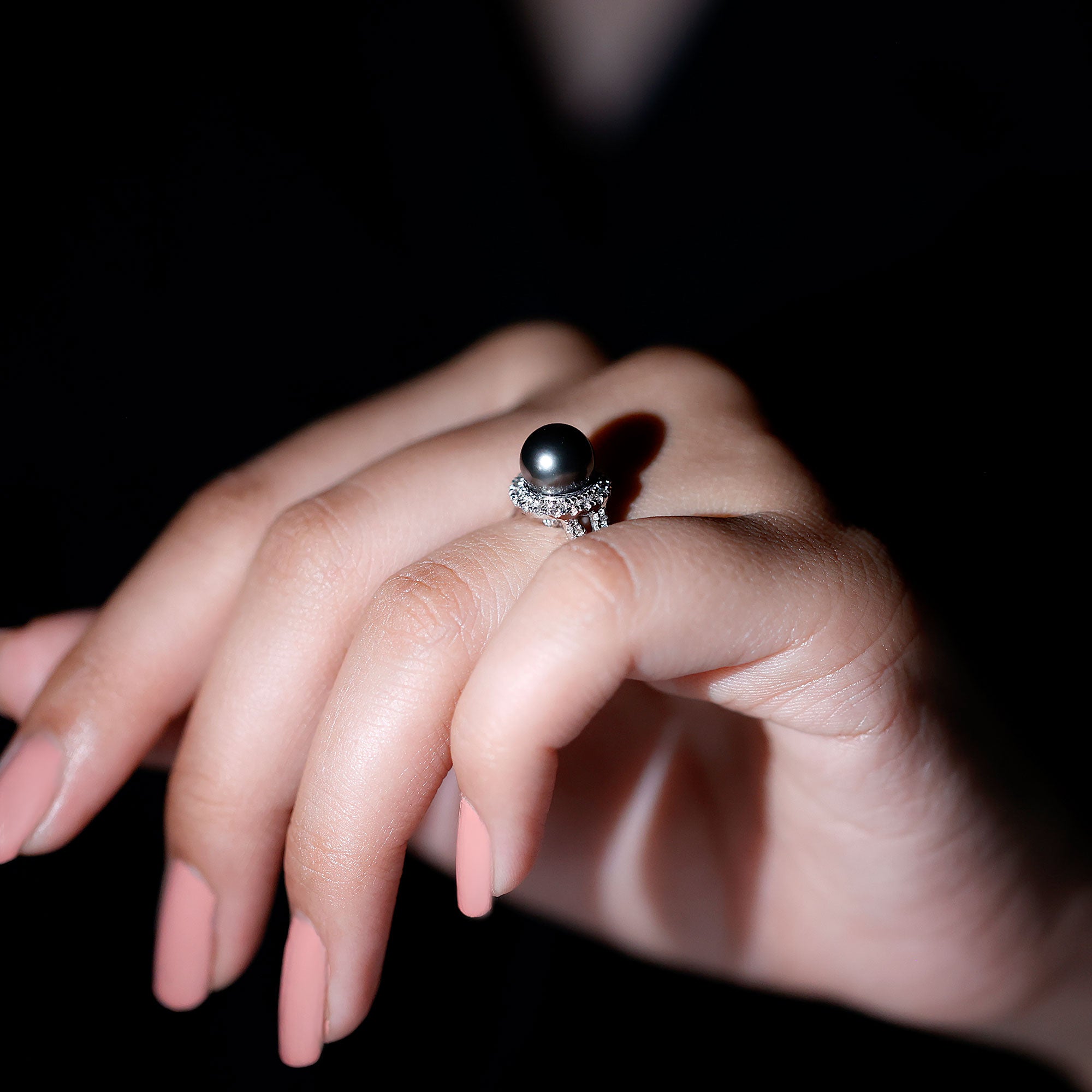 Stunning and elegant accessory, these exquisite rings highlight the beauty of black pearl and diamond ring, that are surrounded by small shimmery diamonds or other gemstones. The halo motif brings the extra sparkle touch to the ring while putting the center gemstone into the limelight.