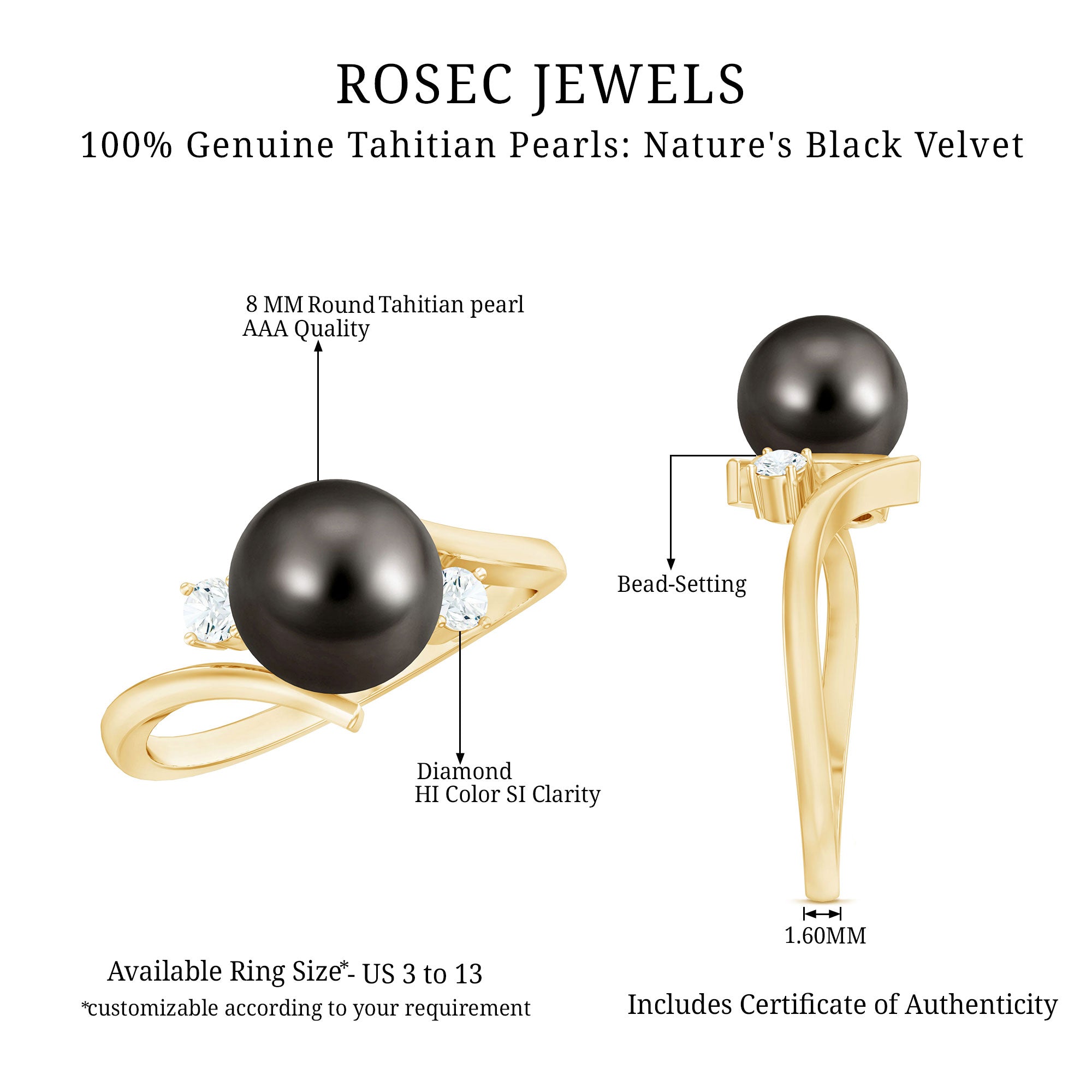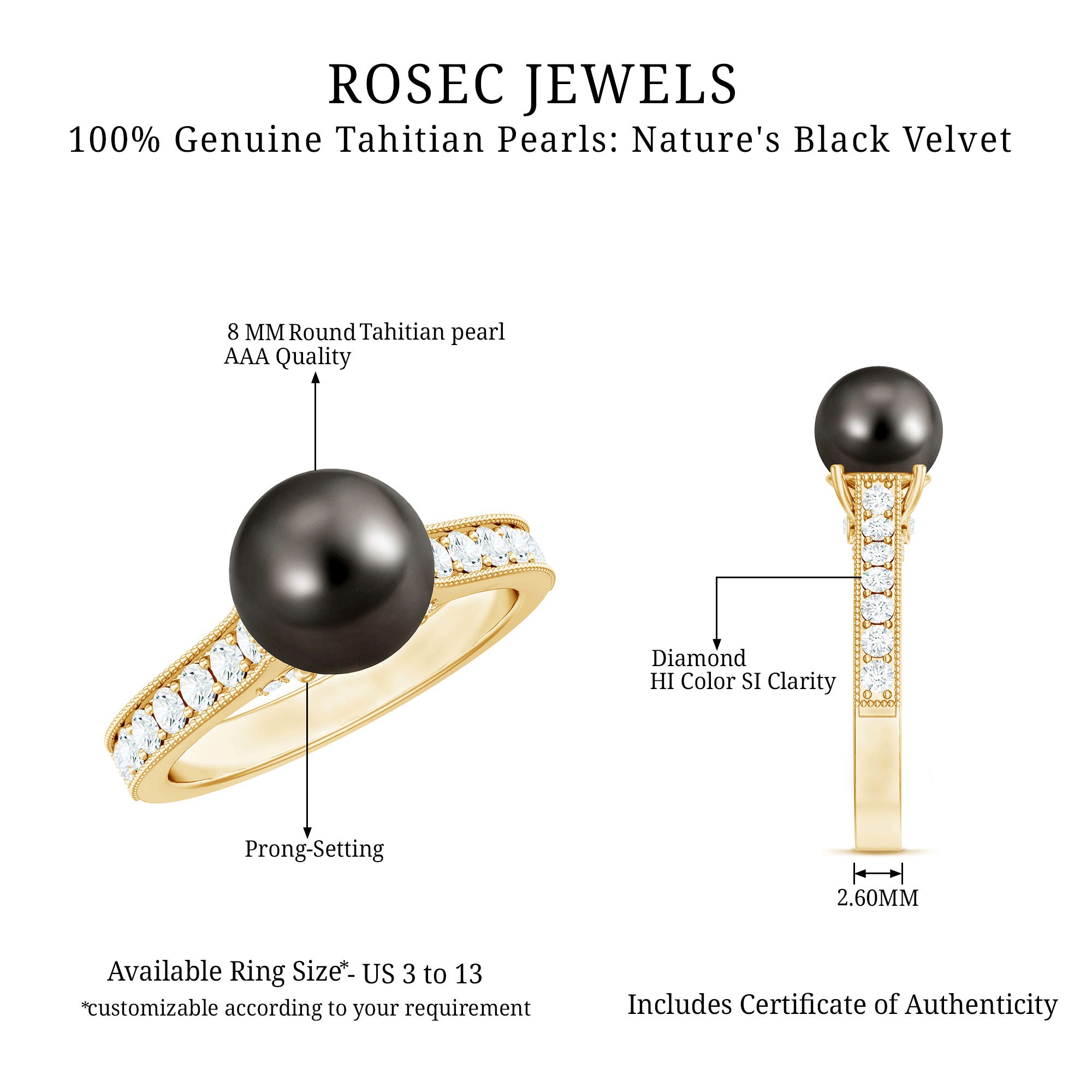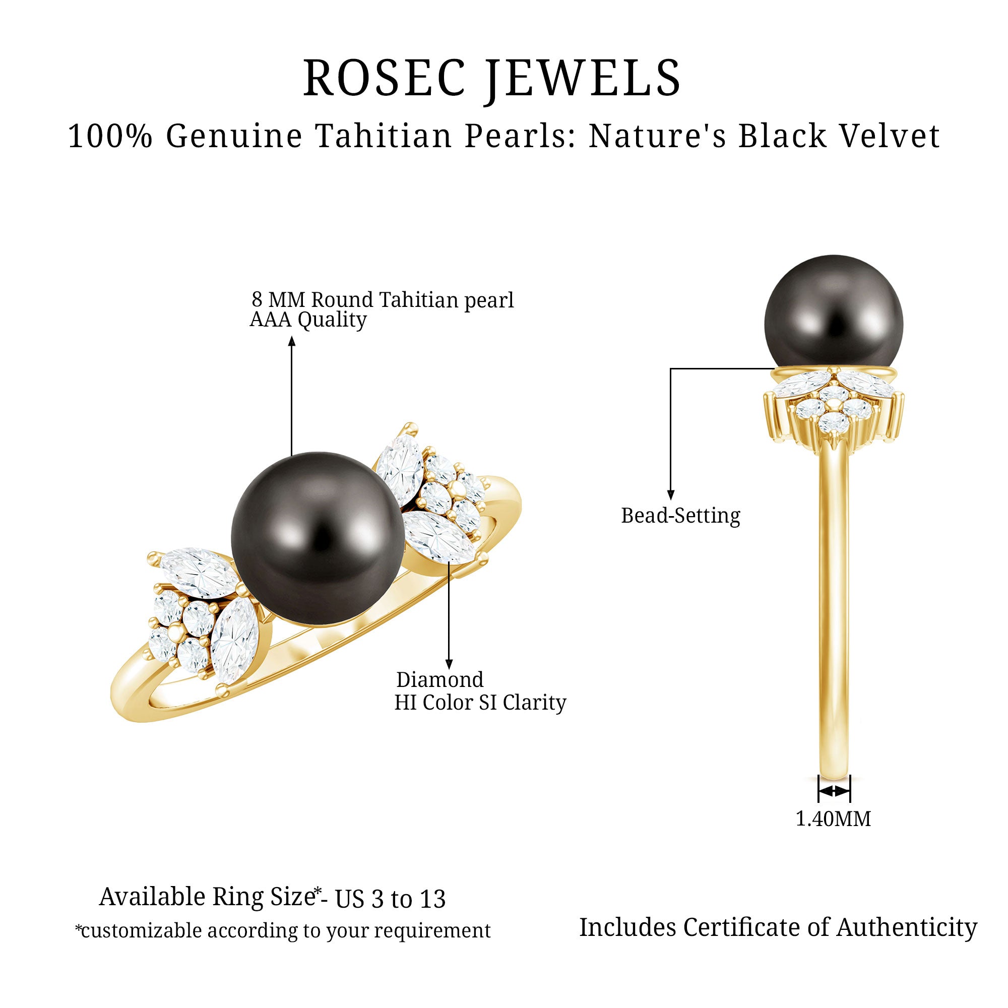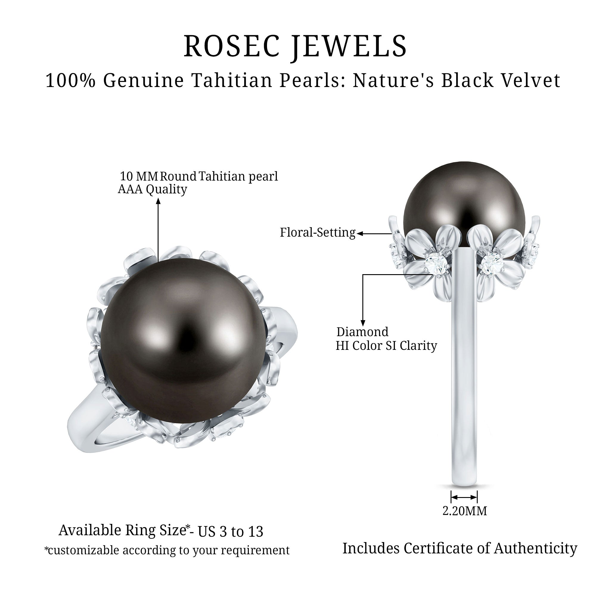 Our handmade Tahitian pearl or black pearl rings are treasured by every kind of women around the globe due to their smooth finish, dark hues, and natural beauty. This only natural pearl has grabbed the attention of pearl lovers with dazzling tones since their introduction to the jewelry scene in the 1960s.
