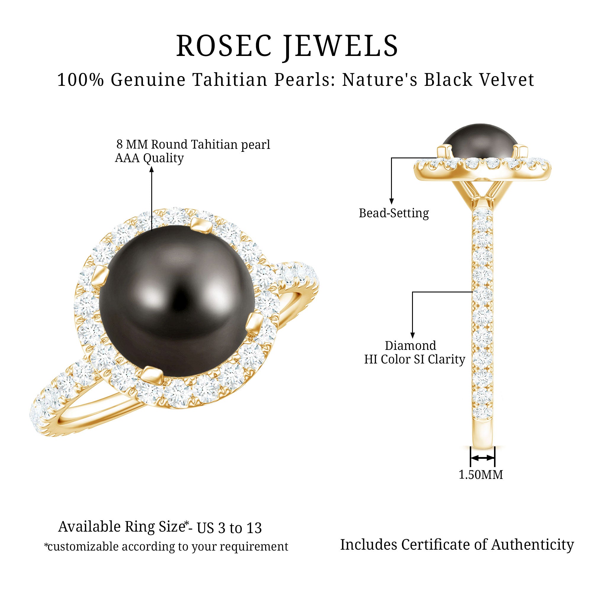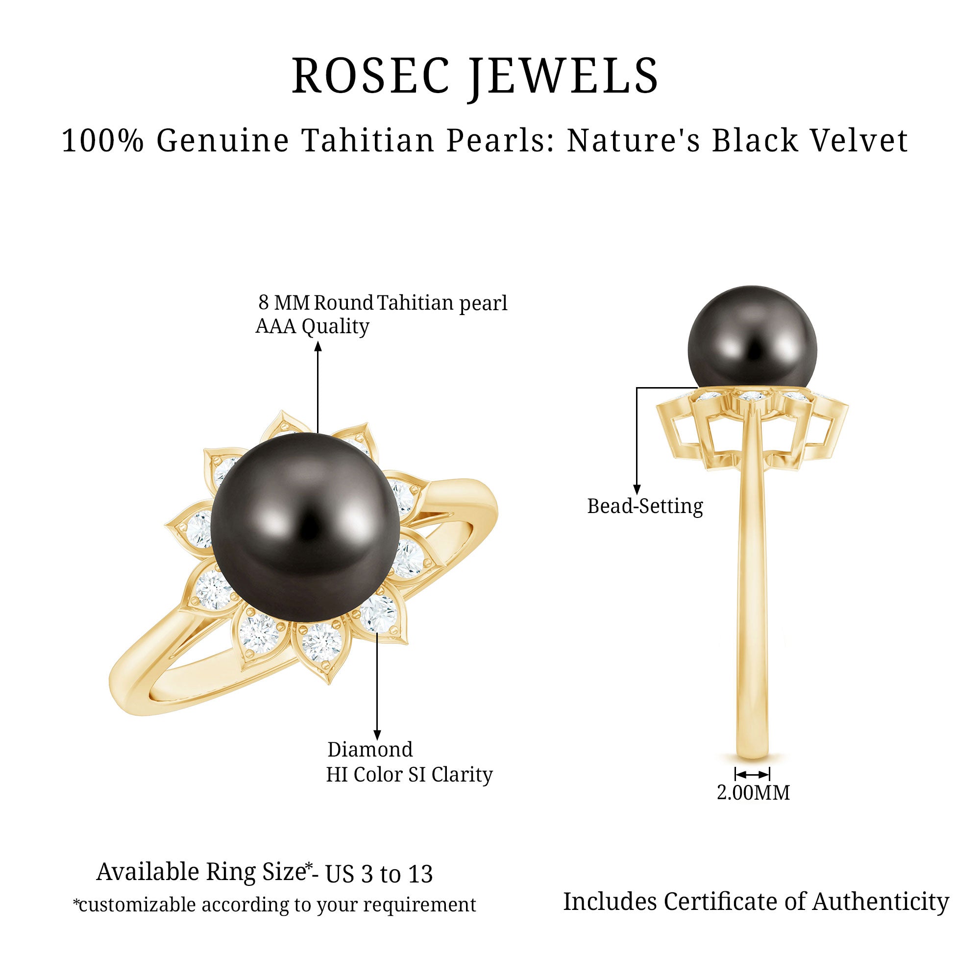 These rings often set in a prong or bezel setting that ensures the black pearl's safety as well. Our Tahitian pearl halo rings are best suitable for those who appreciate the blend of contemporary and elaborate design.