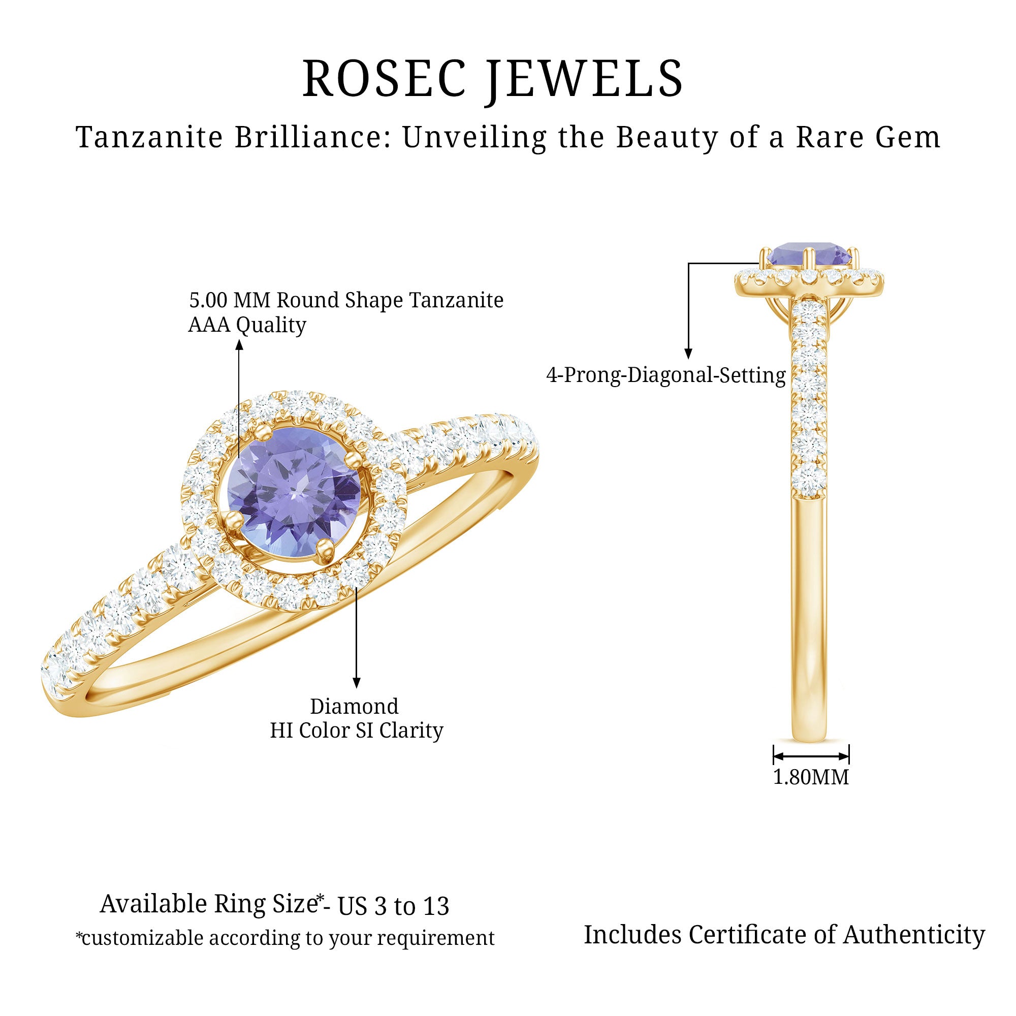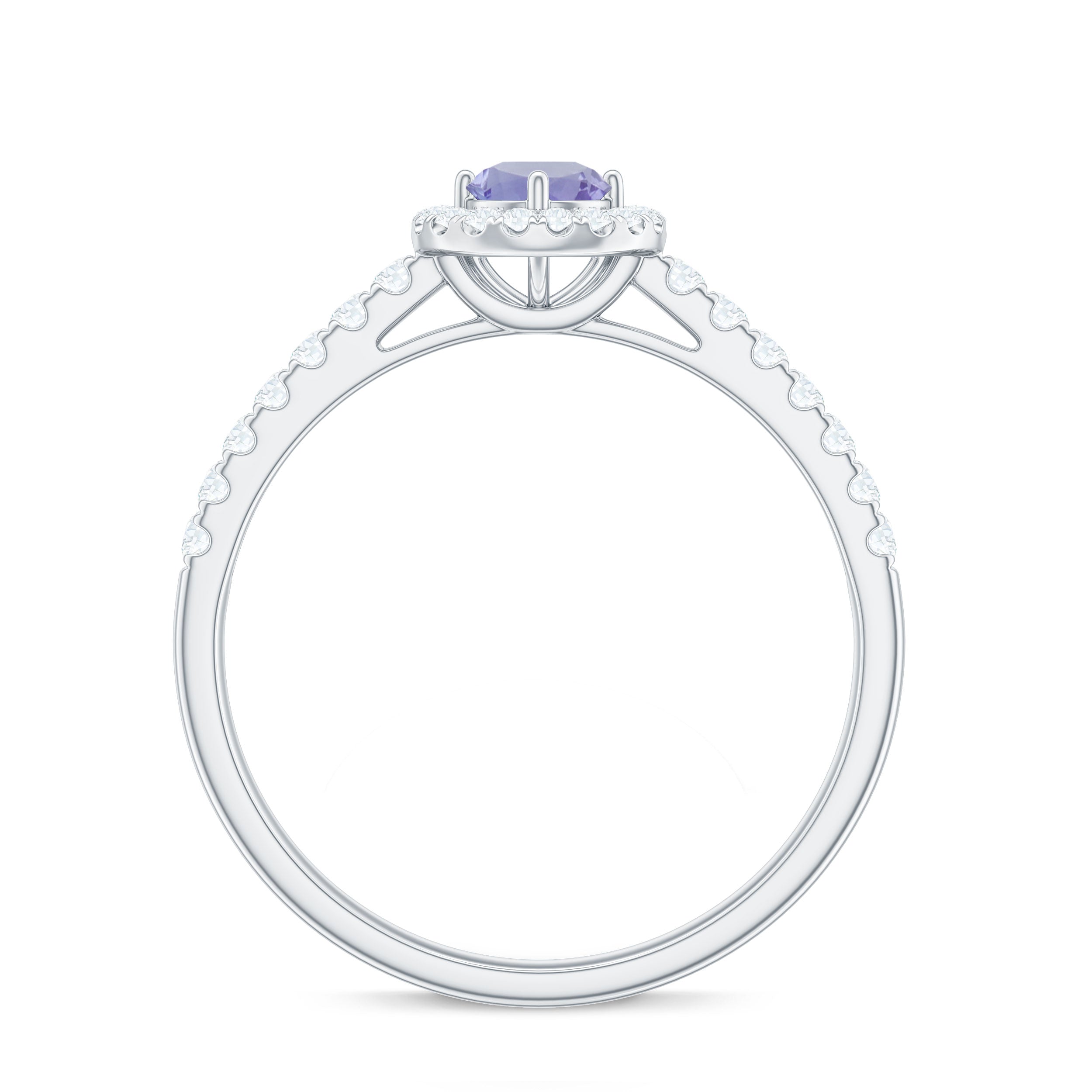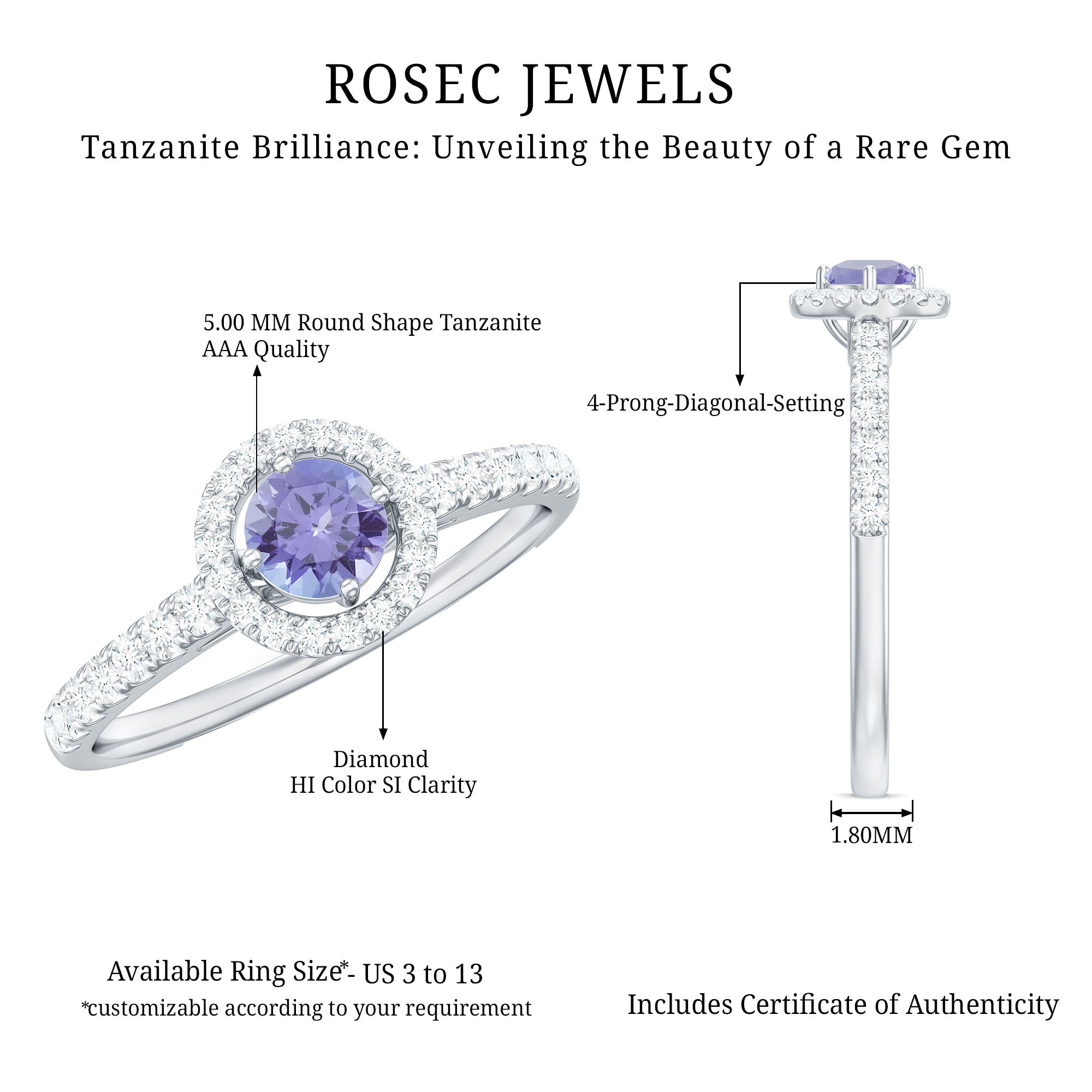 • Tanzanite Halo Engagement Rings: - The halo design, adds an extra layer of sparkle to the ring. These styles of rings embellished with tanzanite stone appear as a focal point of the ring. The solitaire stone is encircled by a shimmery diamond accent, making the center gemstone a bit larger. Diamond and tanzanite engagement rings are some of the best halo engagement rings.