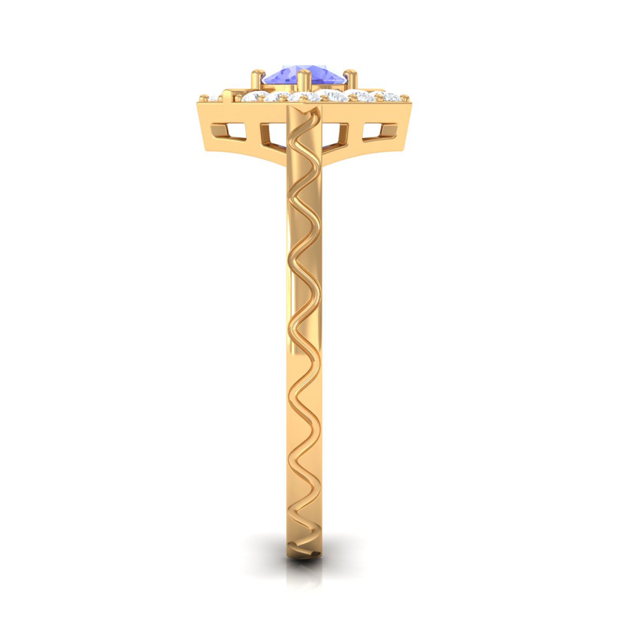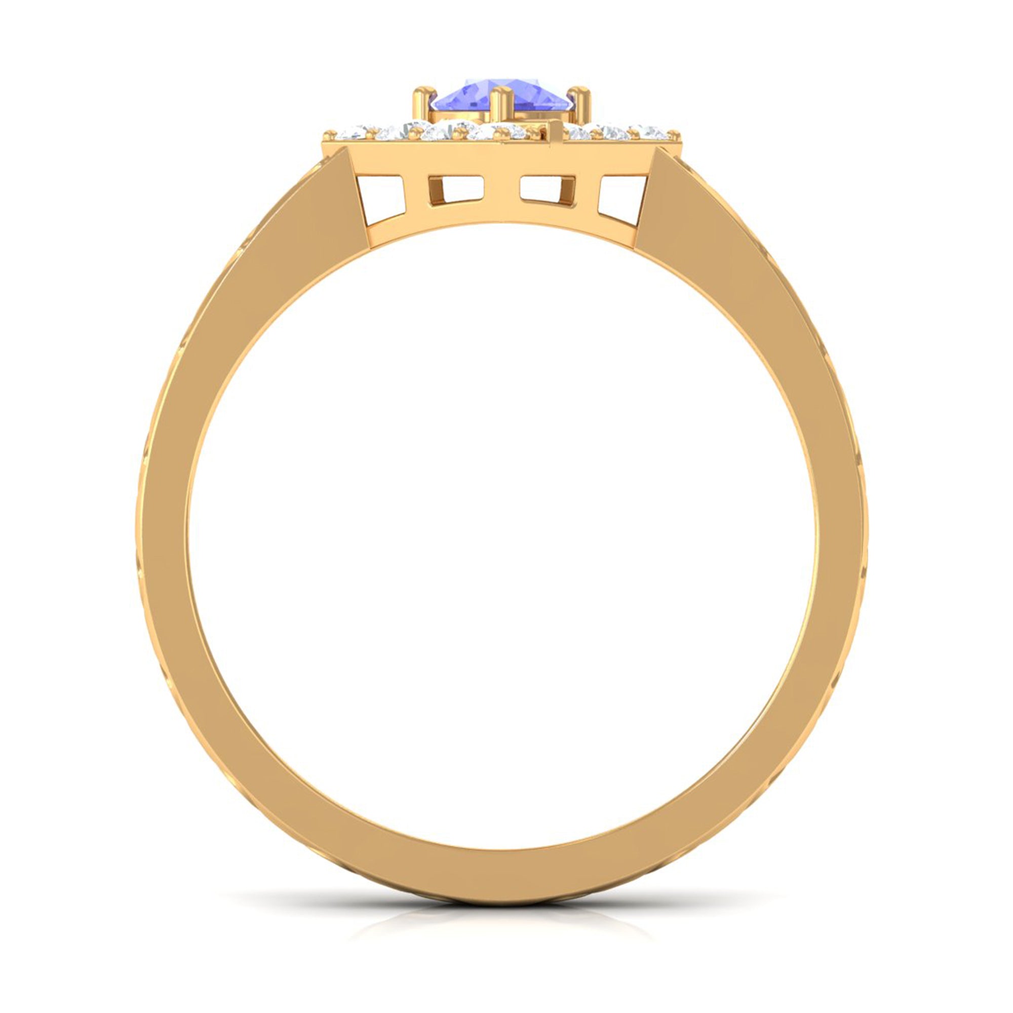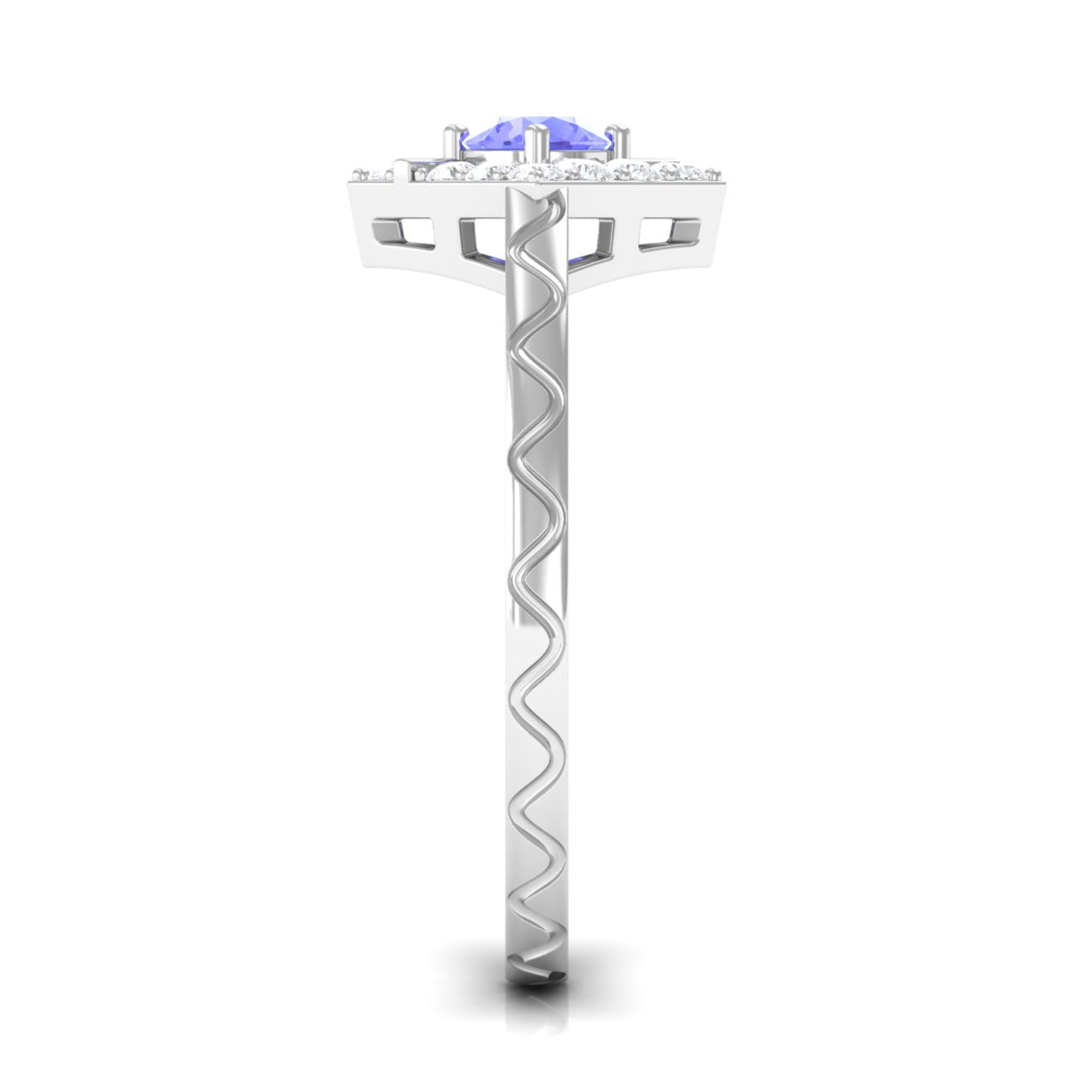 • Tanzanite Halo Rings:- These rings feature a center dazzling tanzanite gemstone that is encircled by small glittering diamonds or other gems. This design heightens the stunning violet color of tanzanite with maximizes its overall appearance.