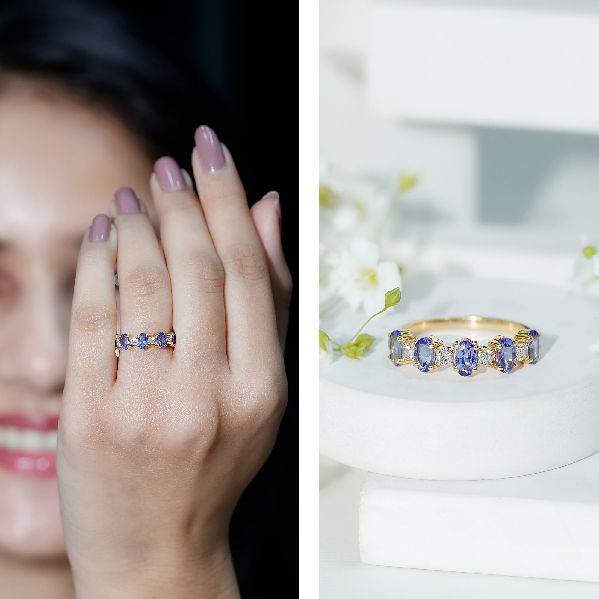 Semi-Eternity Tanzanite Ring:- In this type of ring, tanzanite is set halfway around the band, representing long-lasting romance and affection.