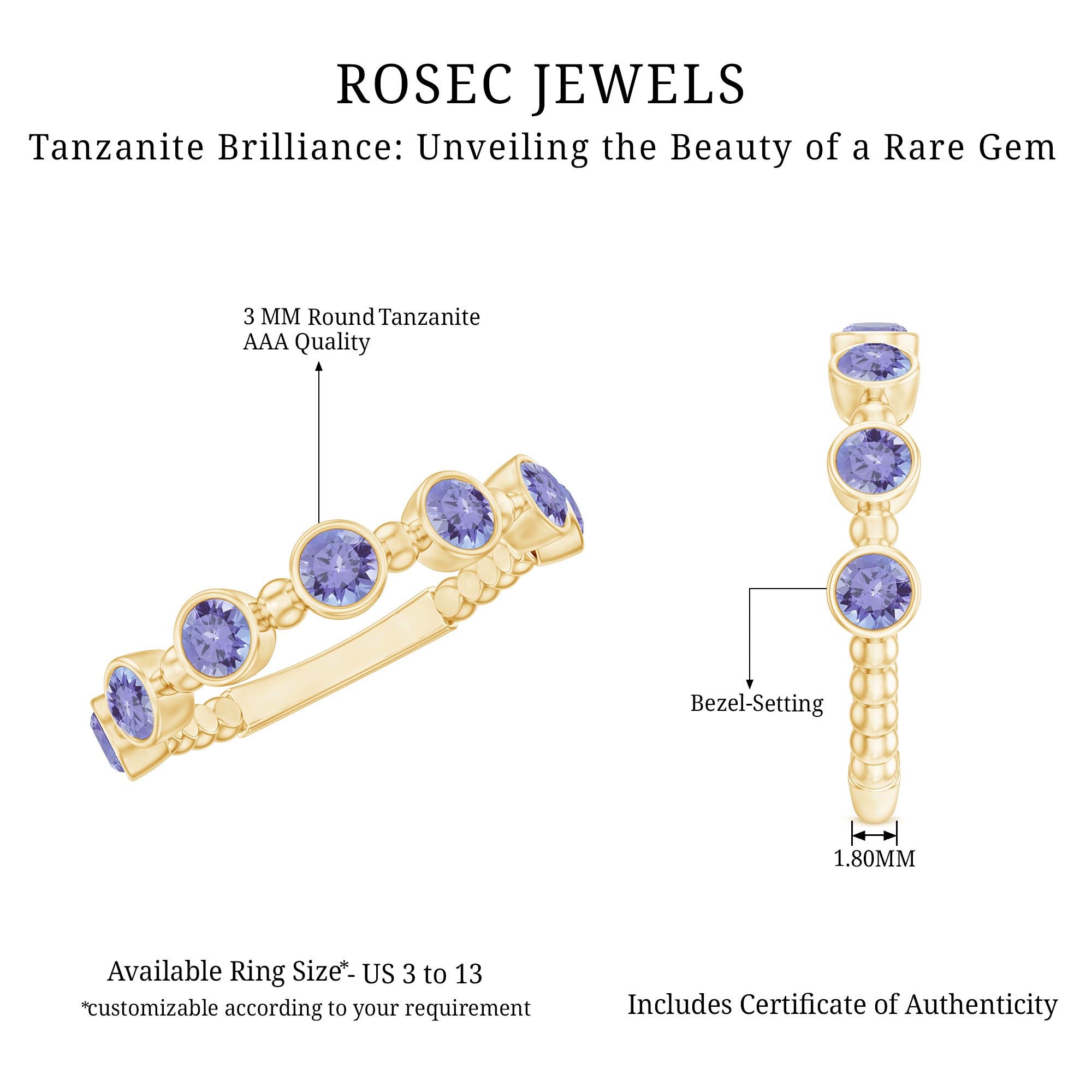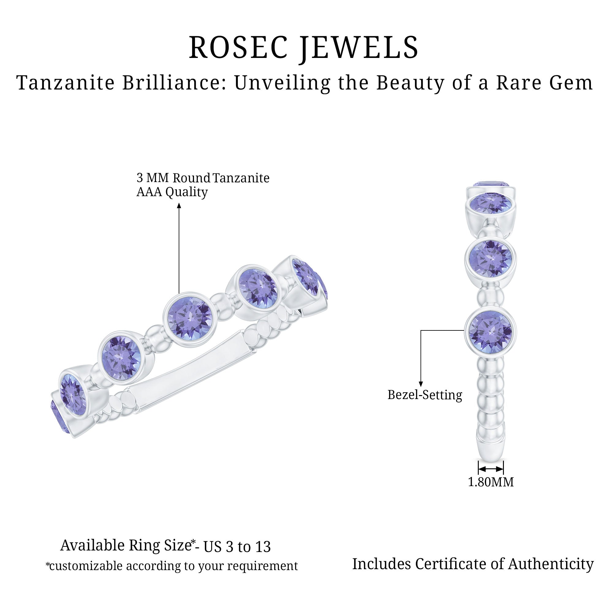 Now, you must be thinking about where to buy tanzanite jewelry. We’ve got you covered. Let Rosec Jewels be your trusted companion for stunning tanzanite jewelry, the best place to buy tanzanite jewelry.