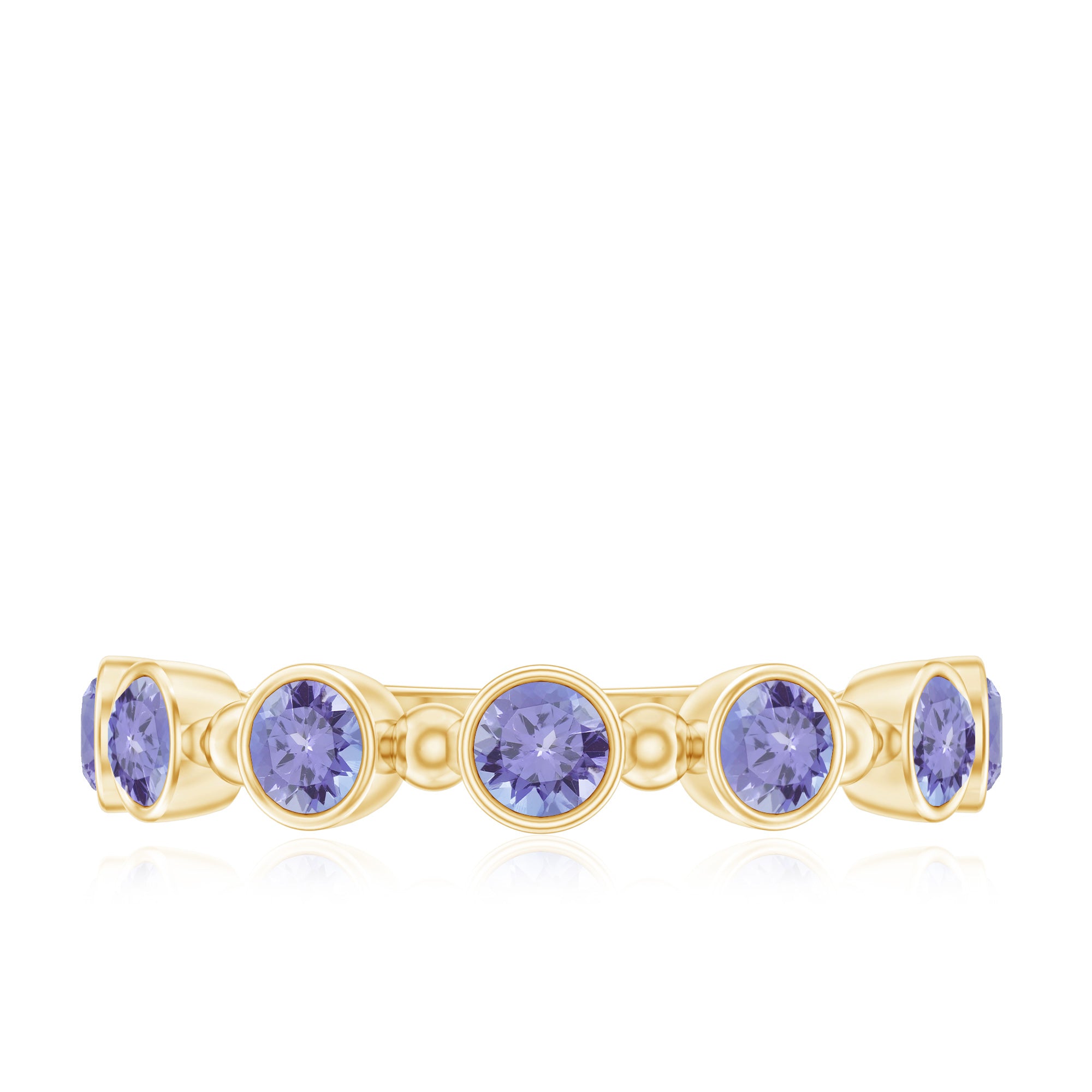 Full Eternity Tanzanite Ring:- Features tanzanite gemstone sets all around the band that signify everlasting love and bond. These designs have a luxurious appeal and are a meaningful gift for a wedding.