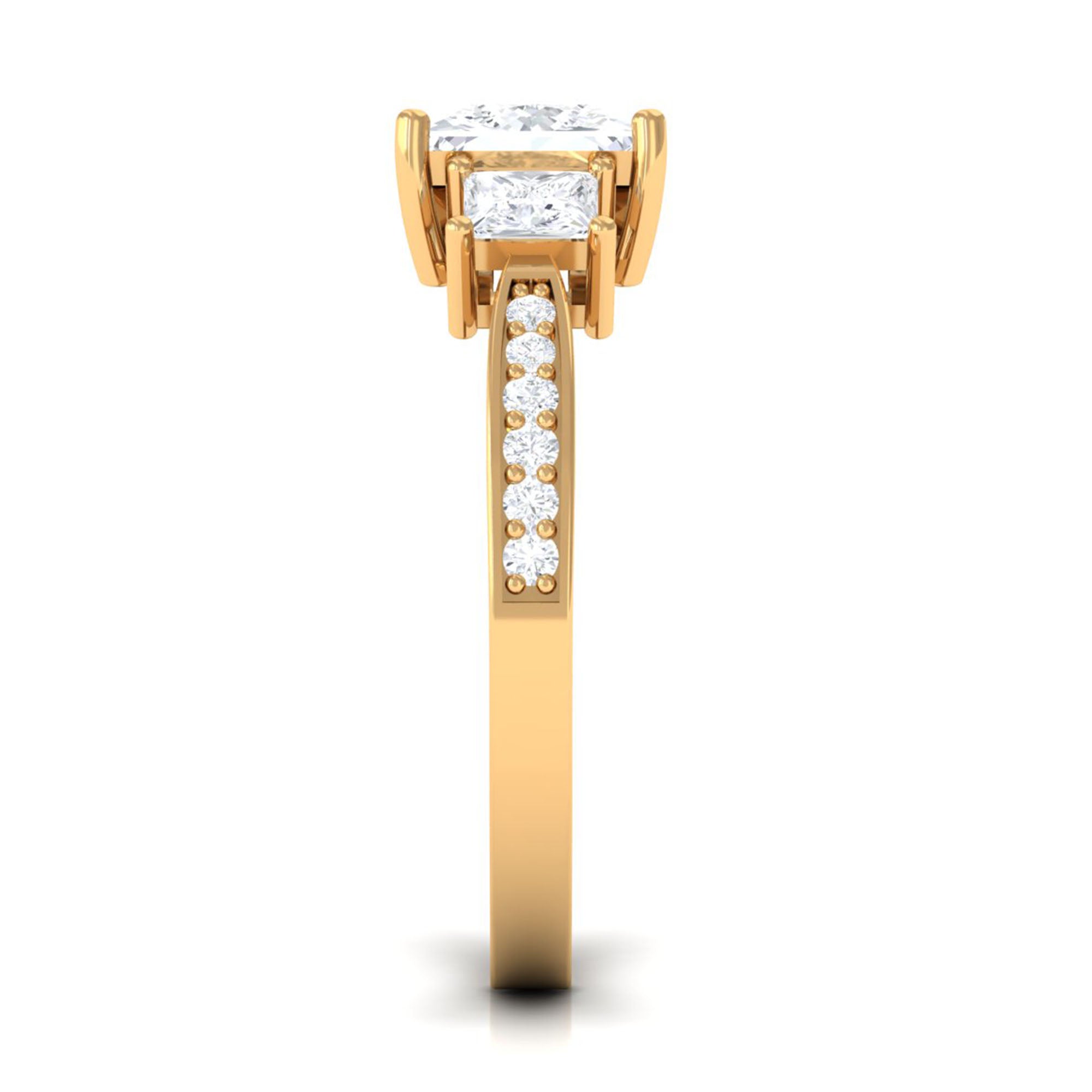 Genuine and Pure: Rosec Jewels proudly offers authentic Three Stone Engagement Rings crafted from real gold and silver. Each ring comes with a certificate to guarantee its authenticity, ensuring you experience the genuine and captivating beauty of an authentic three stone engagement ring.