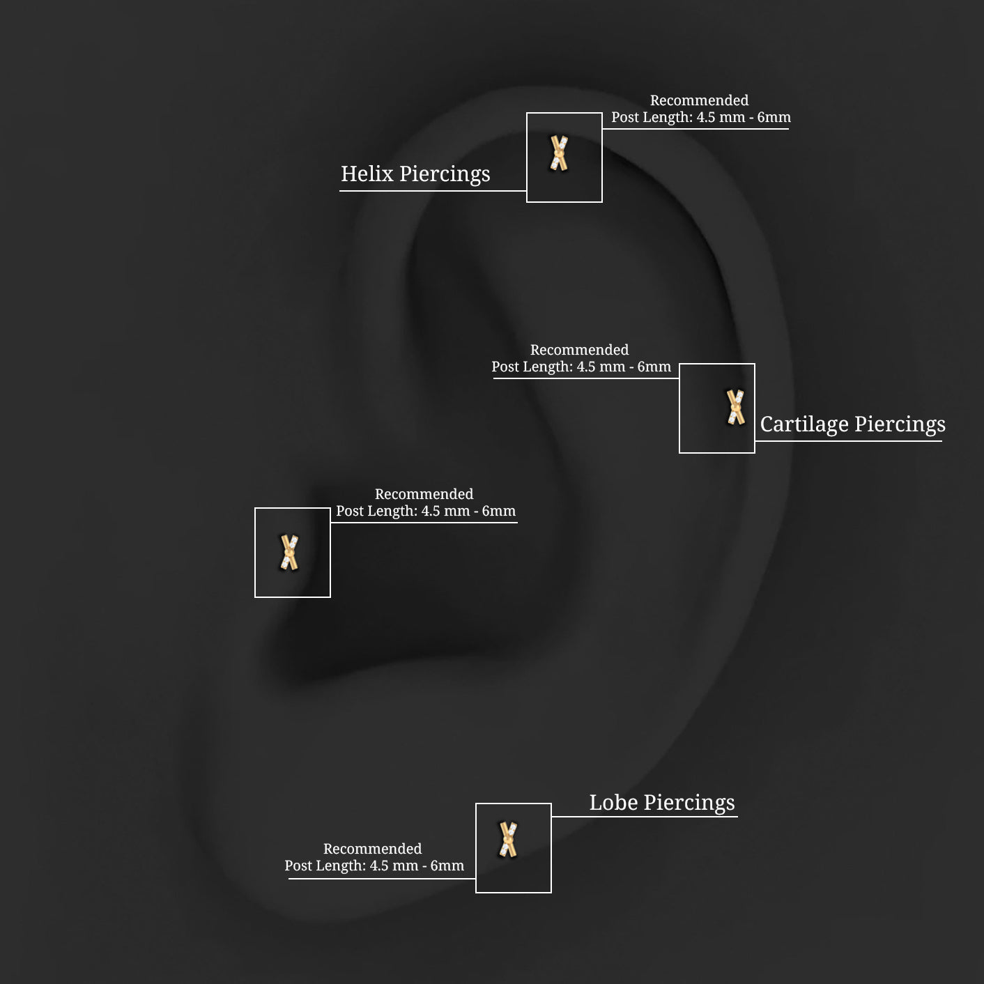 In this type of piercing, the jewelry sits just below the surface of the skin rather than piercing through the cartilage. Since surface piercings are more likely to be rejected, people choose to go with some lightweight and small-sized tragus hoop earrings to minimize any kind of irritation and enhance comfort. The spacing between the two piercings allows you to style with different earring sizes and styles.
