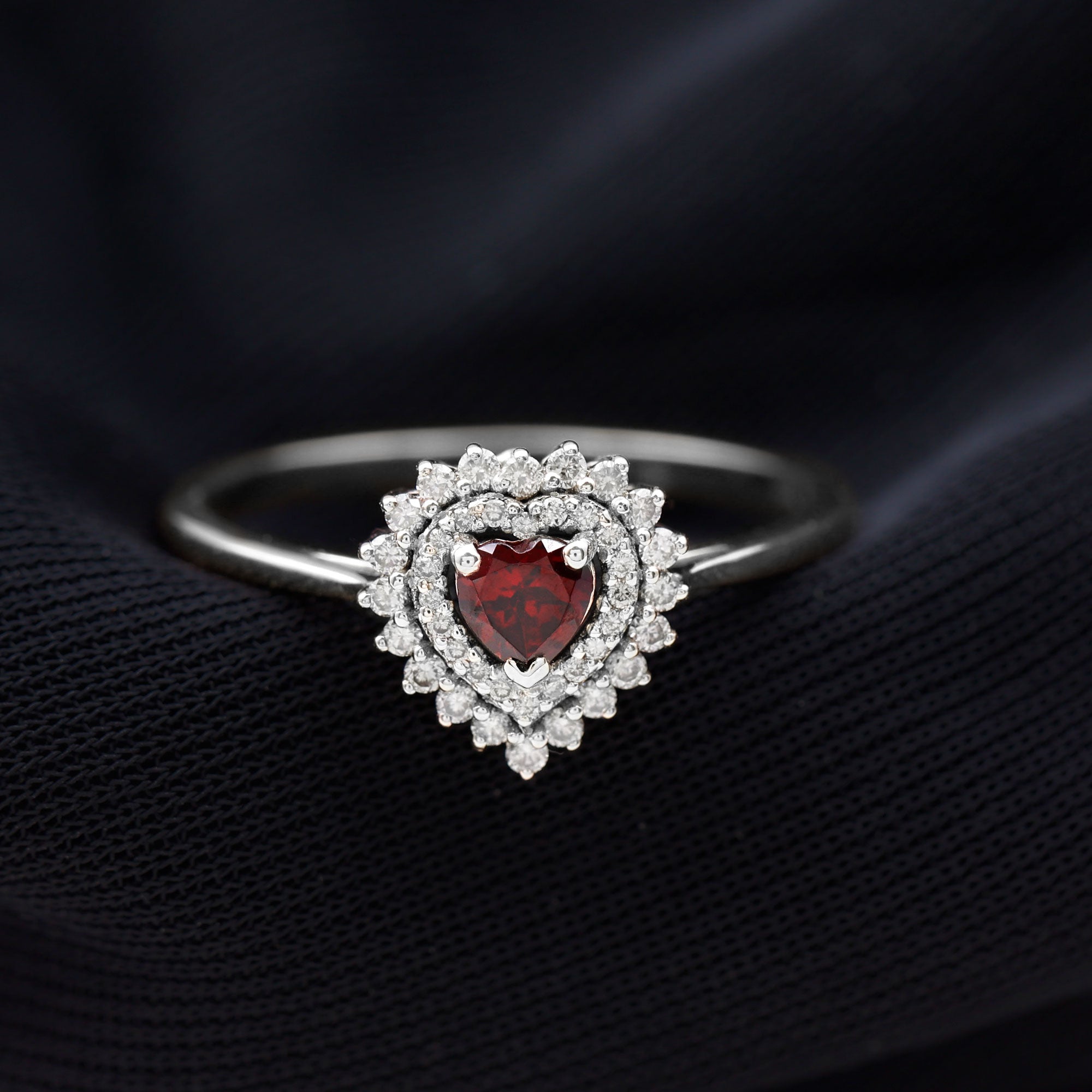 Popular Valentine’s Day styles include heart-shaped designs, promise rings, solitaire pieces, and romantic gemstone jewelry such as rubies and diamonds.