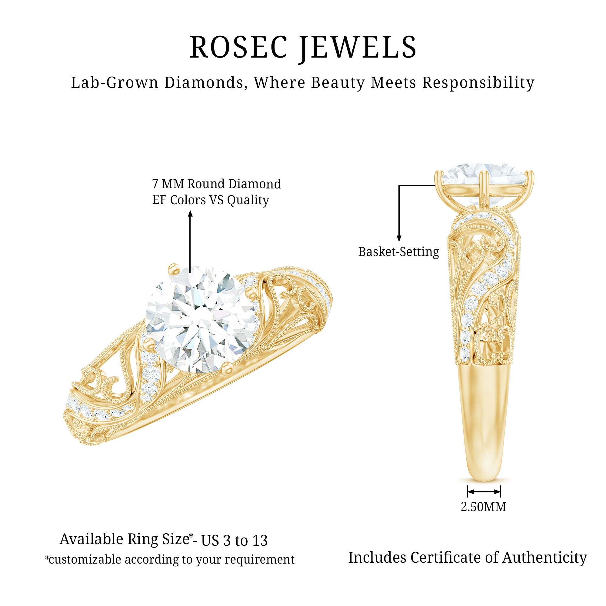 - Milgrain detailed rings: A milgrain detailed ring, usually preferred for engagement, is a style with which we fashion your ring with small pieces of metal.