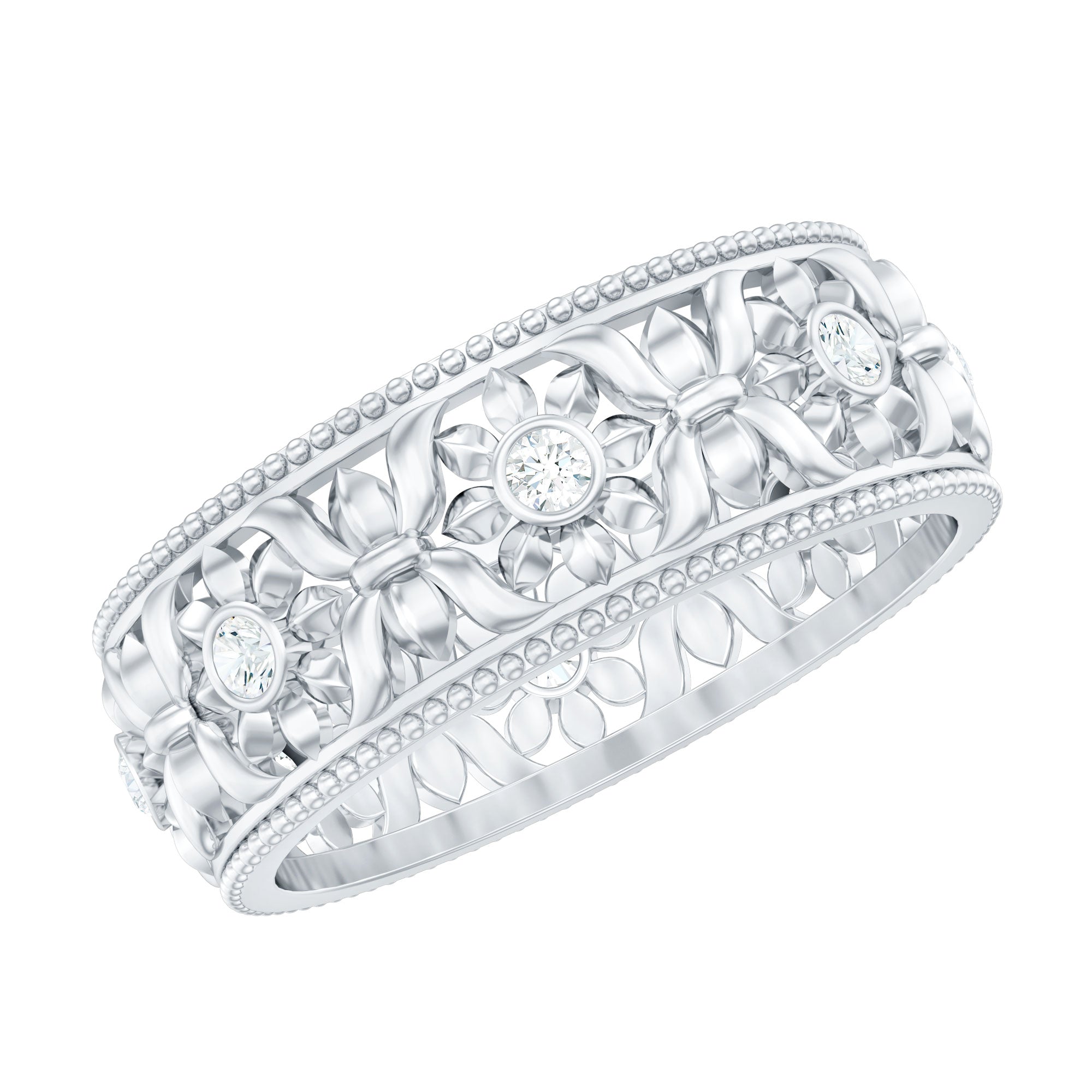 Heart Wedding Bands: Heart shaped moissanite wedding bands are usually the choice of romantic couples, who look for symbolism, besides meaning in their ring. Ruby hearts with alternate diamond hearts or topaz hearts side by side with their clefts facing opposite direction create stunning visual appeal. Explore more such heartfelt symbols in our wedding bands collection.
