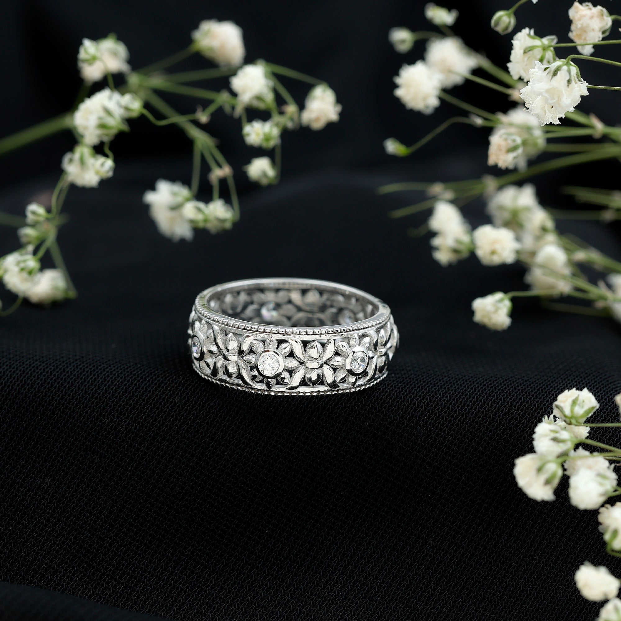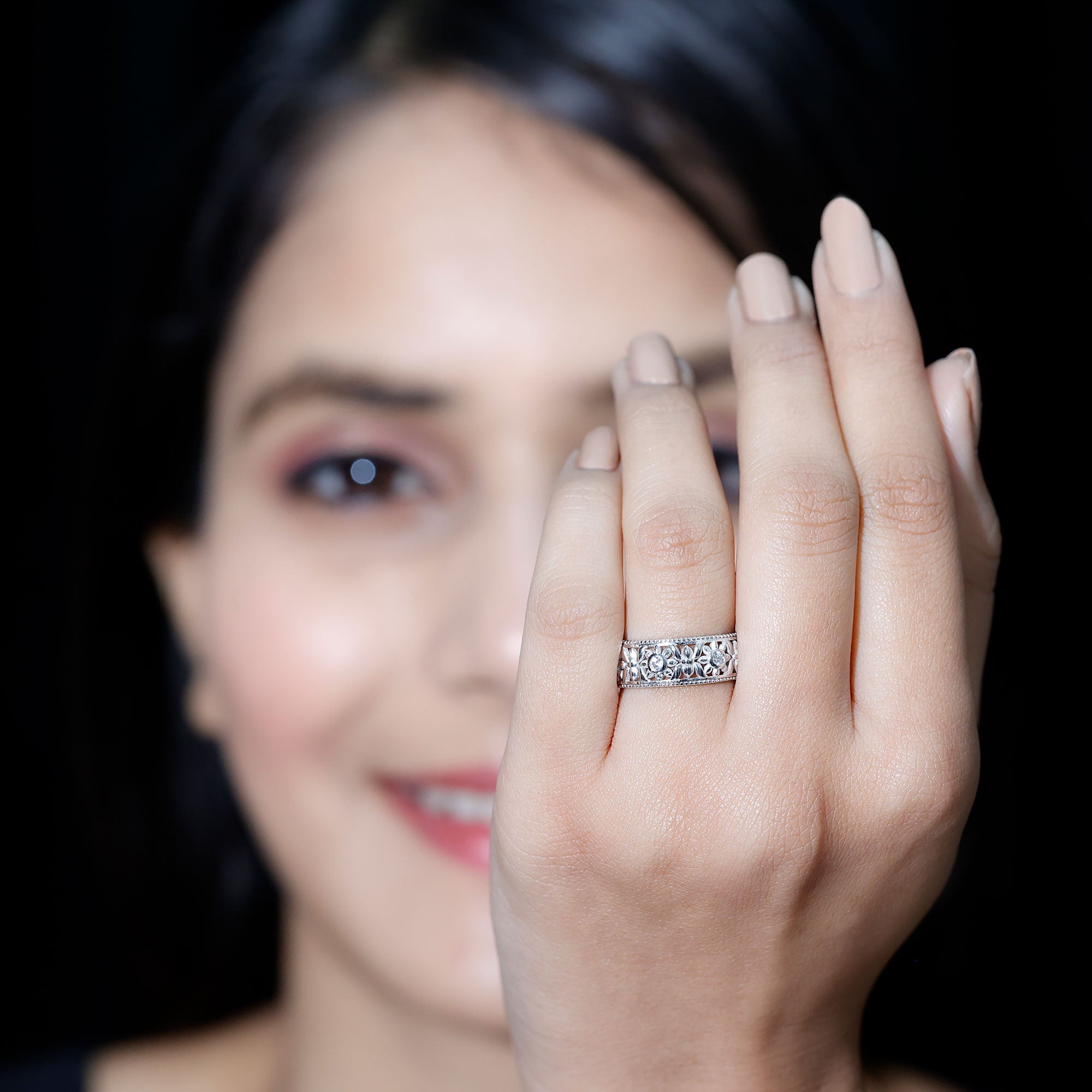 The ideal wedding bands for women can be 2MM to 8 MM in width. 2-3 MM can be a good choice if you are looking for a band for your minimalist ring. 4-5 MM is generally a standard choice for all types of rings. 6-8 MM bandwidth should be your choice if you love bold statement rings.