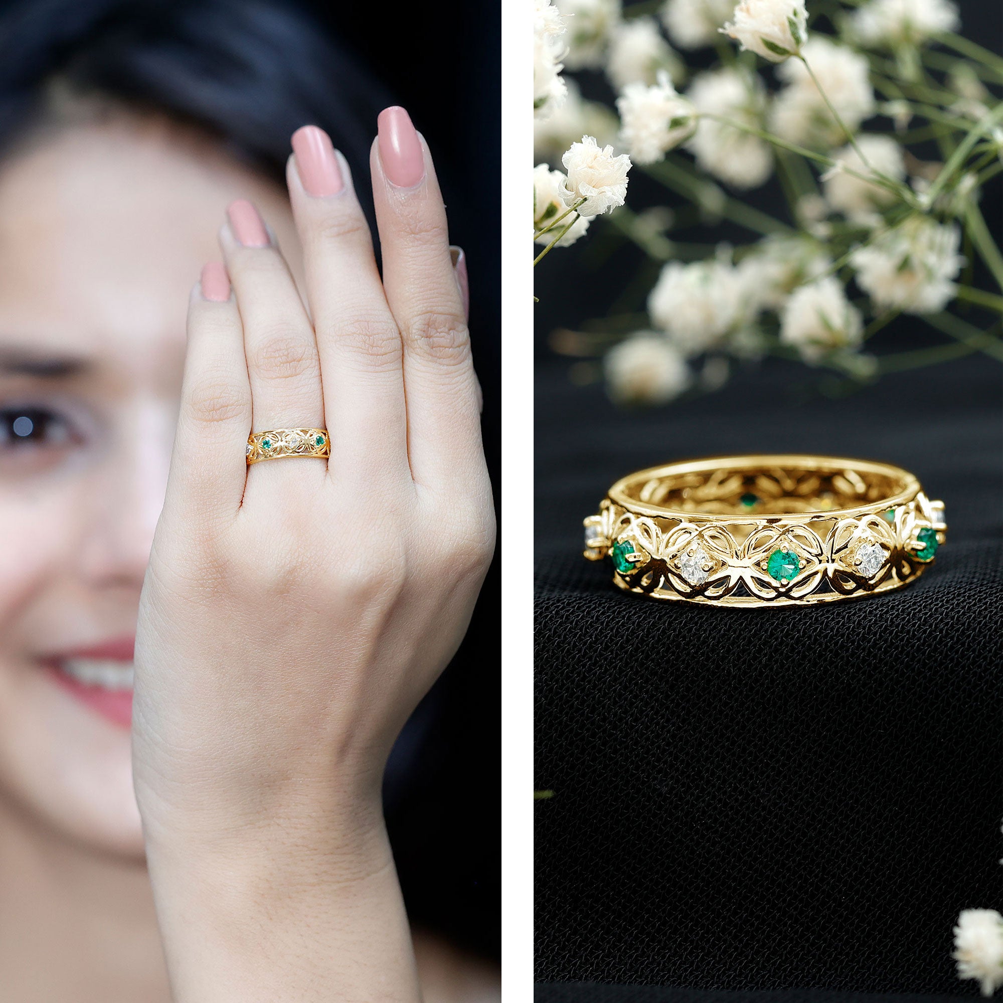 So choosing a lab grown or natural gemstone wedding ring, entirely depends on one's personal style and preferences. If you prefer royal vintage wedding rings that richly carry heritage, then mined wedding bands can be your choice, while if you prefer sustainable fashion, ethical choices, and affordable luxury then a lab grown gemstone wedding ring can be best for you.