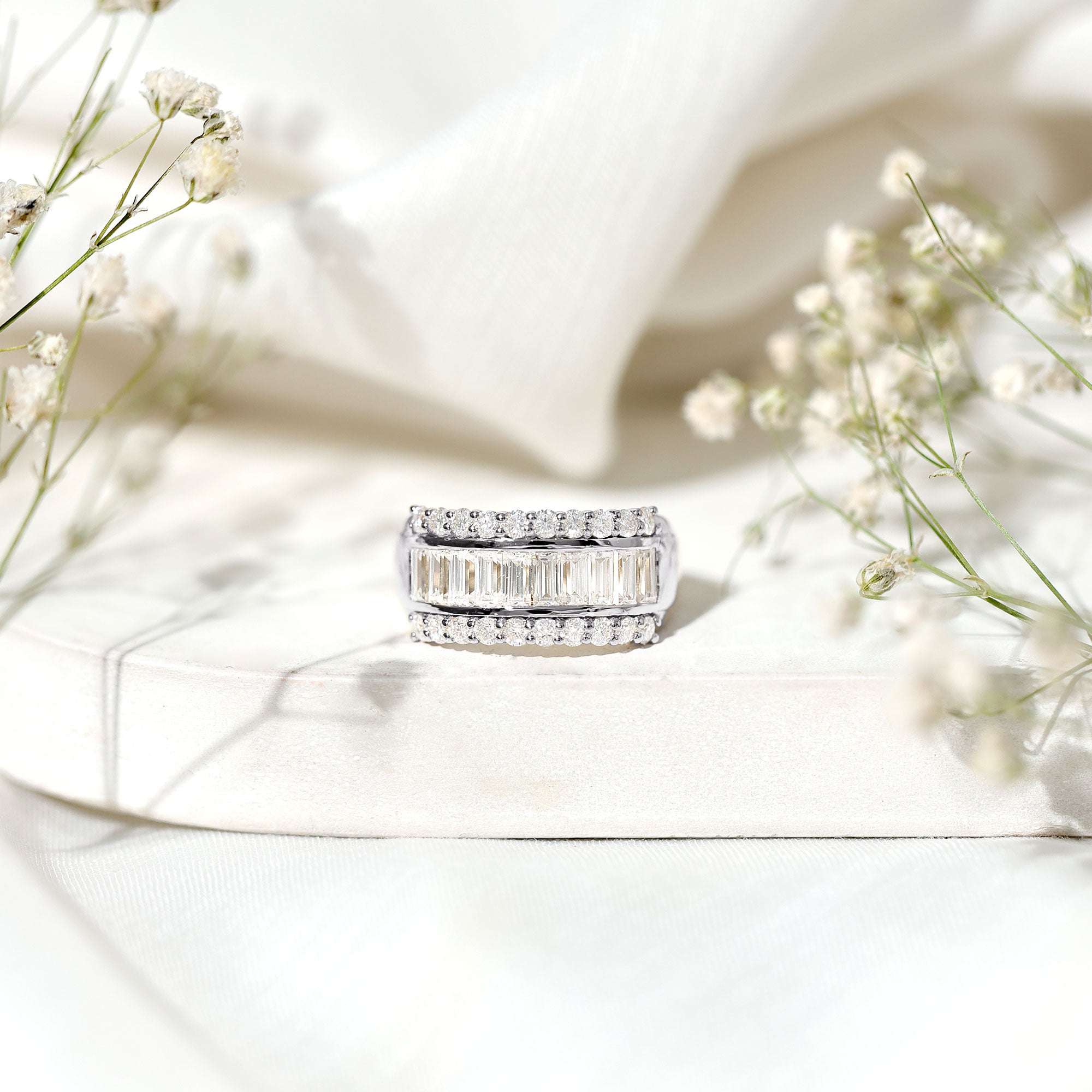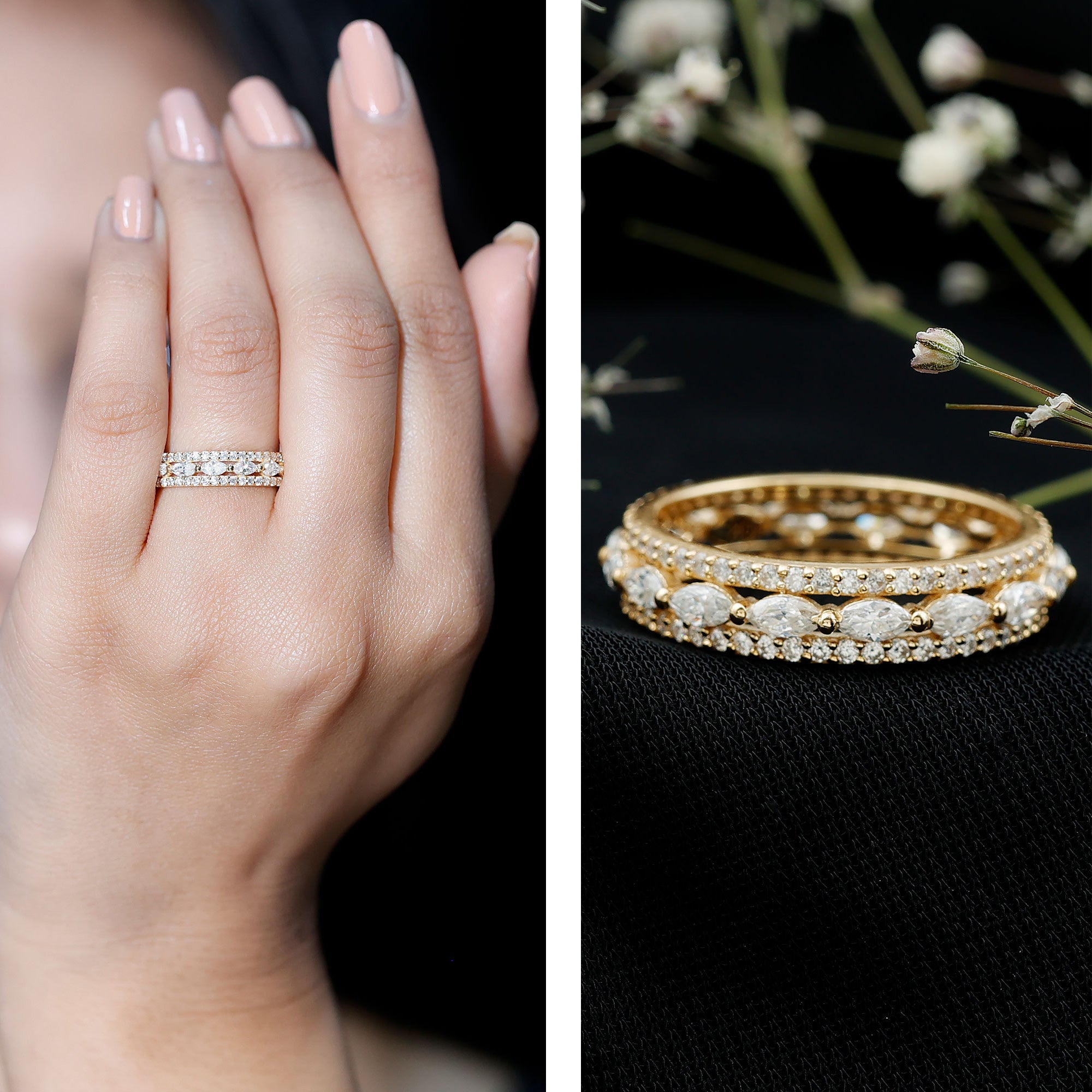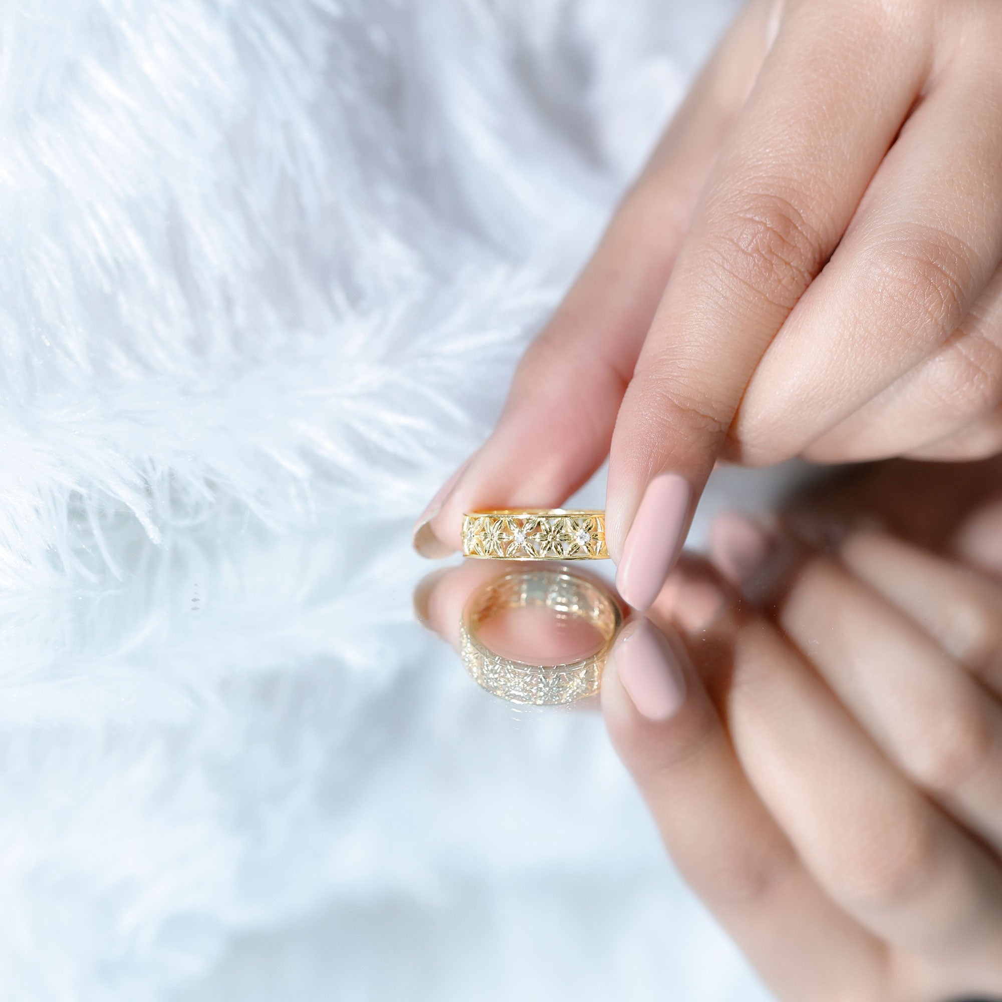 - Certified Gemstone: Diamonds and gemstones, the main attraction in eternity bands for women are quality assured by organizations such as SGL to vouch for the authenticity of the gemstone.