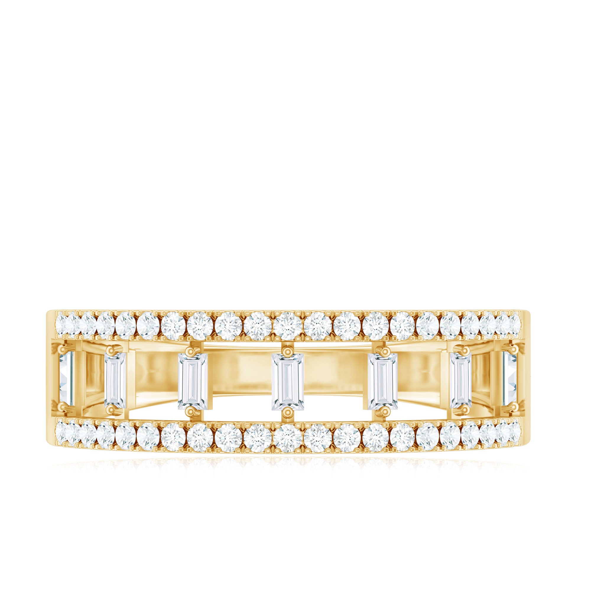 The eternity wedding rings are one of the most popular ring styles among women while it comes to selection of wedding rings. Our handcrafted collection of eternity rings for women are an elegant choice to state your promise of ever-lasting love. The ages old tradition of exchanging rings of braided reed has been carried forward by blending it with modern trends. Today, eternity band rings are crafted with plethora of precious and semi-precious gemstones along the circumference of the ring completing a never-ending circle which eventually becomes a symbol of eternal love.