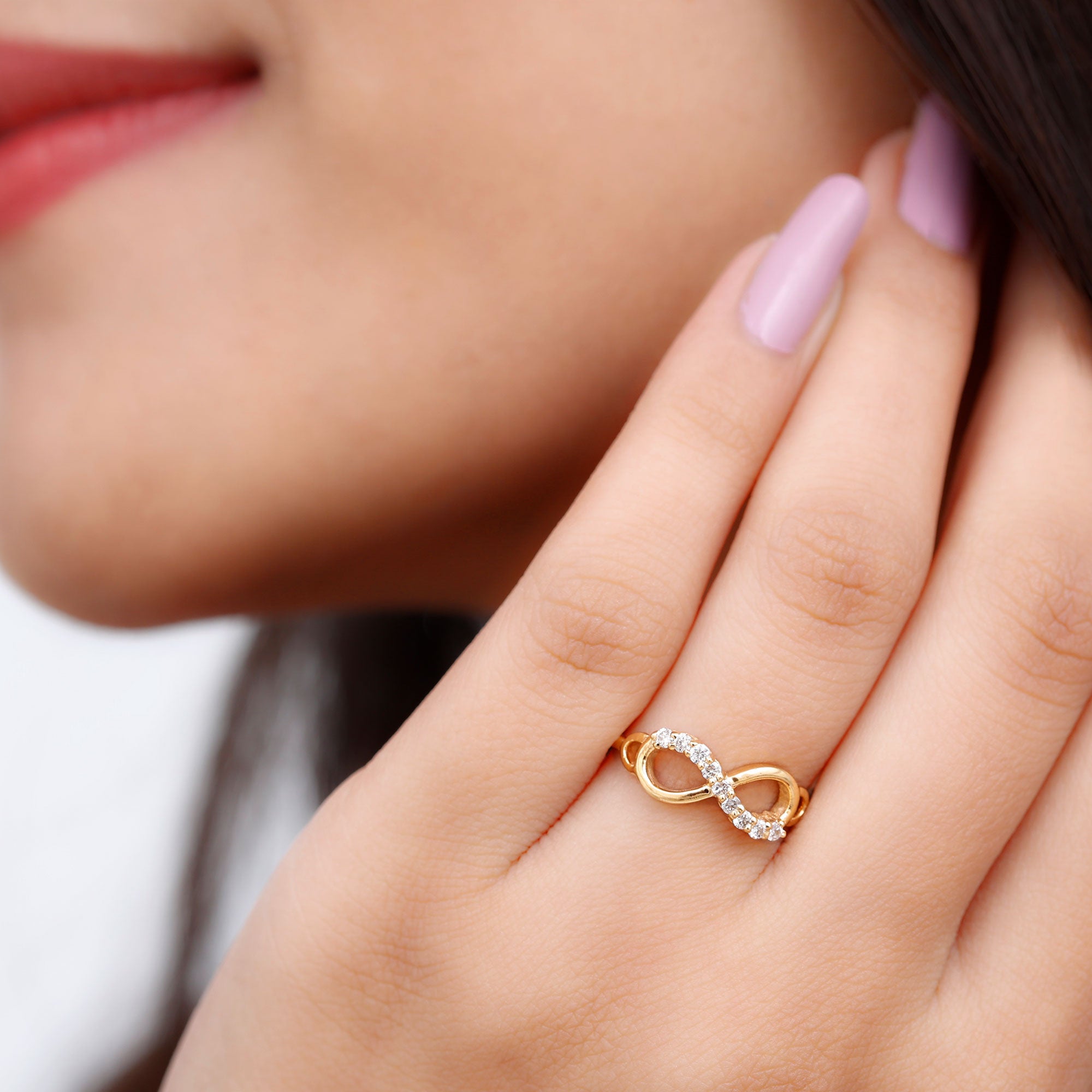Rosec Jewels’ fantastic range of infinity rings for women are an unique combination of trending designs with a diverse range of precious and semi-precious gemstones to curate a mesmerizing collection of infinity rings. Further, blending different gemstone shapes with colorful hues of gold namely yellow gold, white gold and rose gold to bring further diversification in the overall infinity wedding ring styles.