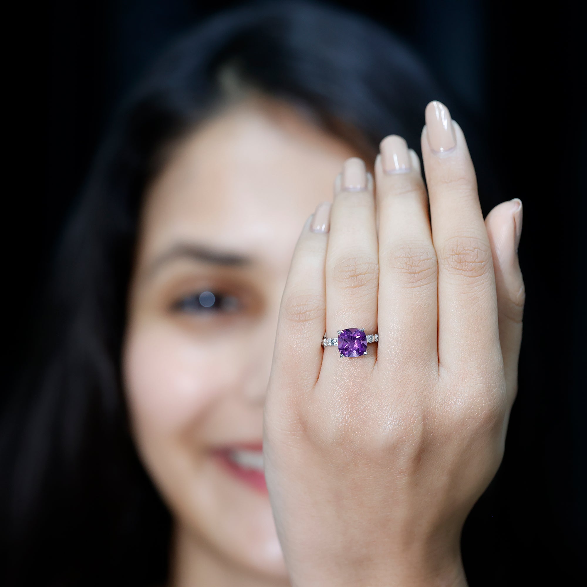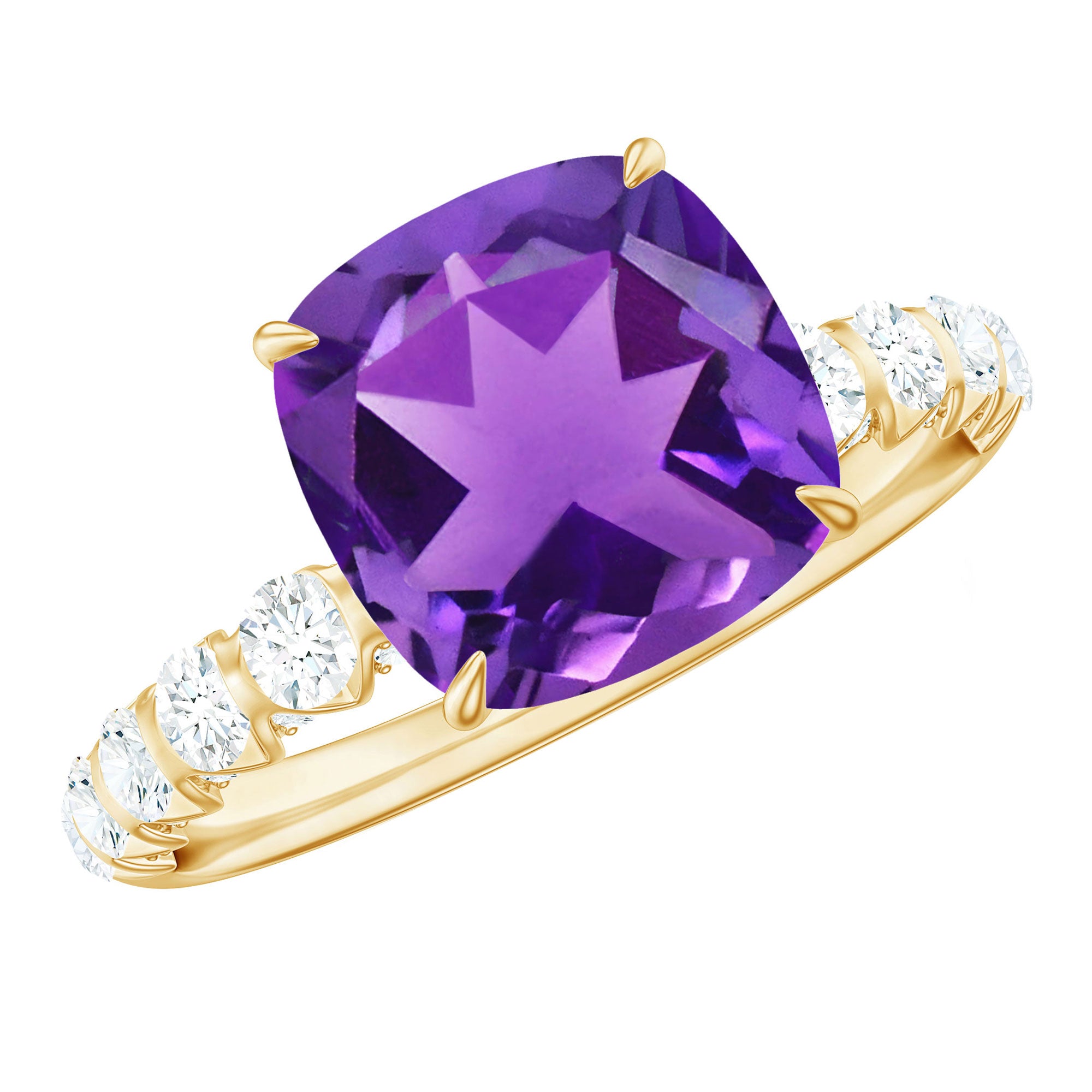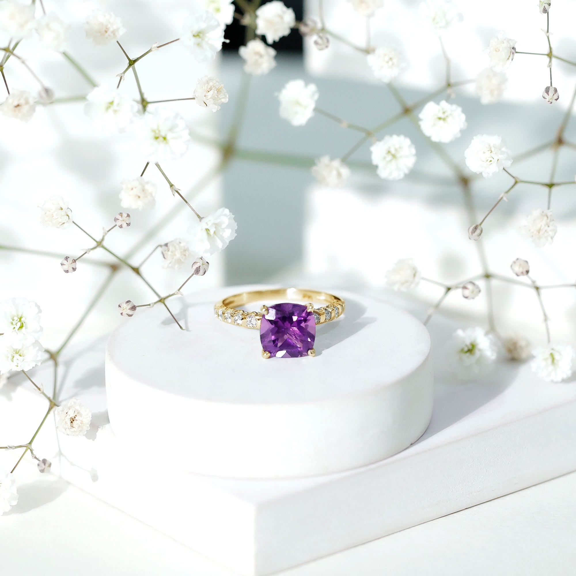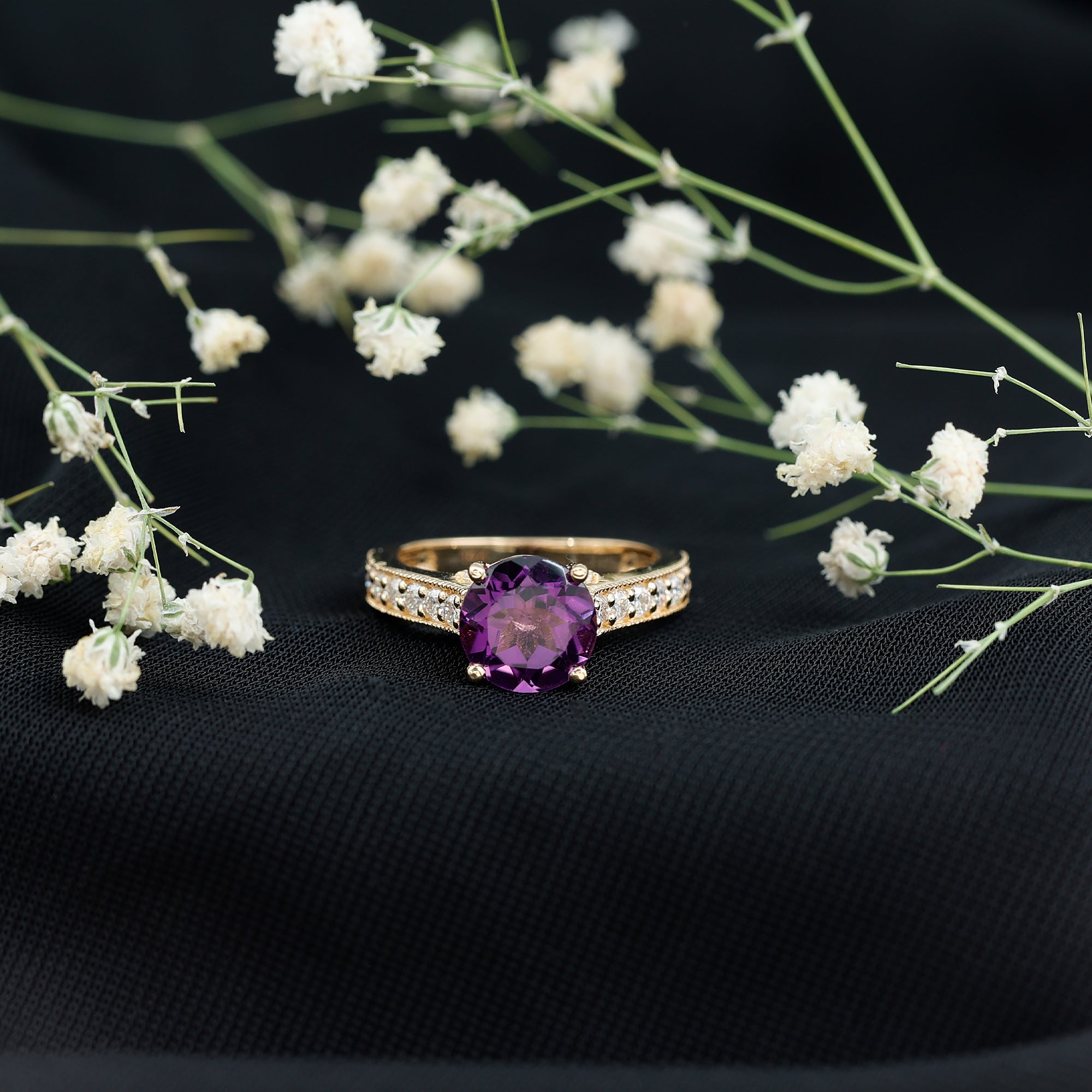 La bague de fiançailles en améthyste se distingue des autres par sa teinte violette vibrante. Les bagues de fiançailles en améthyste violette deviennent un choix idéal pour les mariées des temps modernes. La teinte violet foncé de l'améthyste ressort et donne une touche vintage aux bijoux. Étant une pierre de naissance du mois de février, elle n'est pas nécessairement portée uniquement par les personnes nées en février.