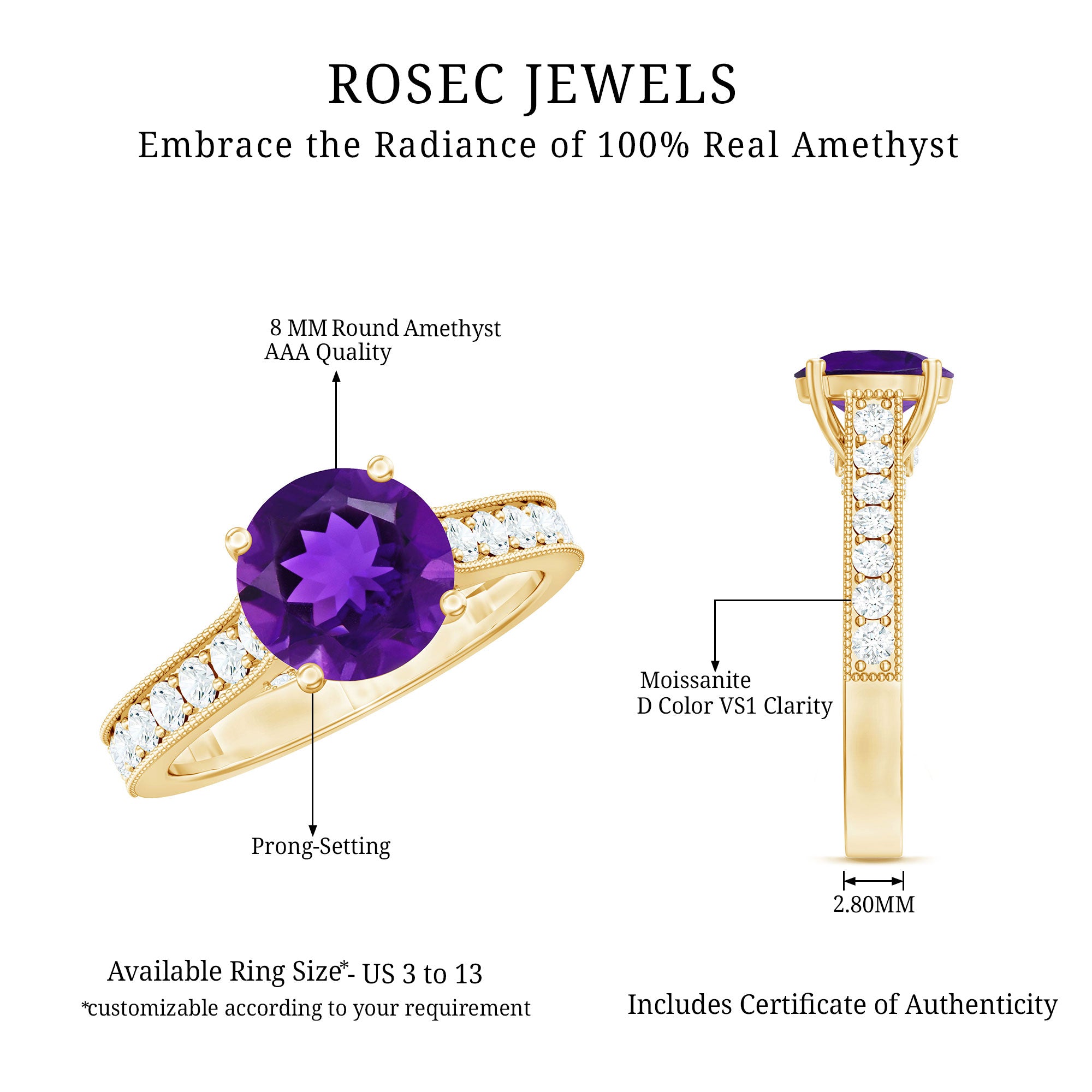 Rosec Jewels est connu pour fabriquer à la main la qualité supérieure des bagues de fiançailles en améthyste. Des bagues de fiançailles en améthyste vintage aux simples bagues de fiançailles en améthyste, notre collection a tout pour plaire ! Nos artisans sont ouverts à la personnalisation des bagues de fiançailles en améthyste à votre demande. Nous utilisons de l'or poinçonné et de l'améthyste certifiée pour fabriquer à la main les bagues de fiançailles. Notre société bénéficie de la livraison gratuite et d'une politique de retour gratuit de 30 jours, pour garantir la confiance du client.