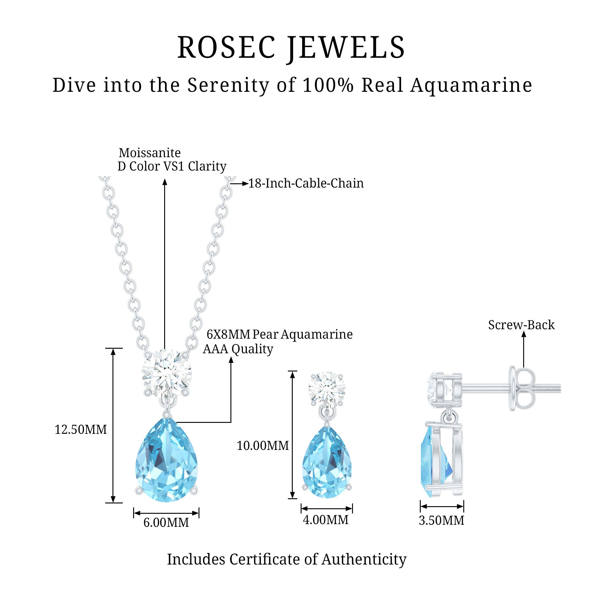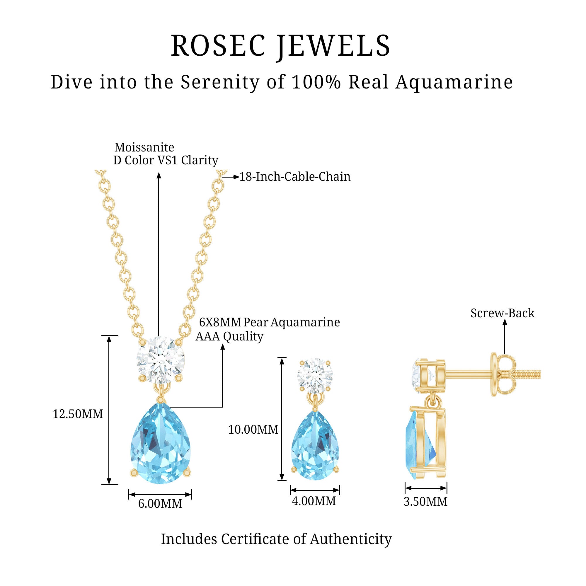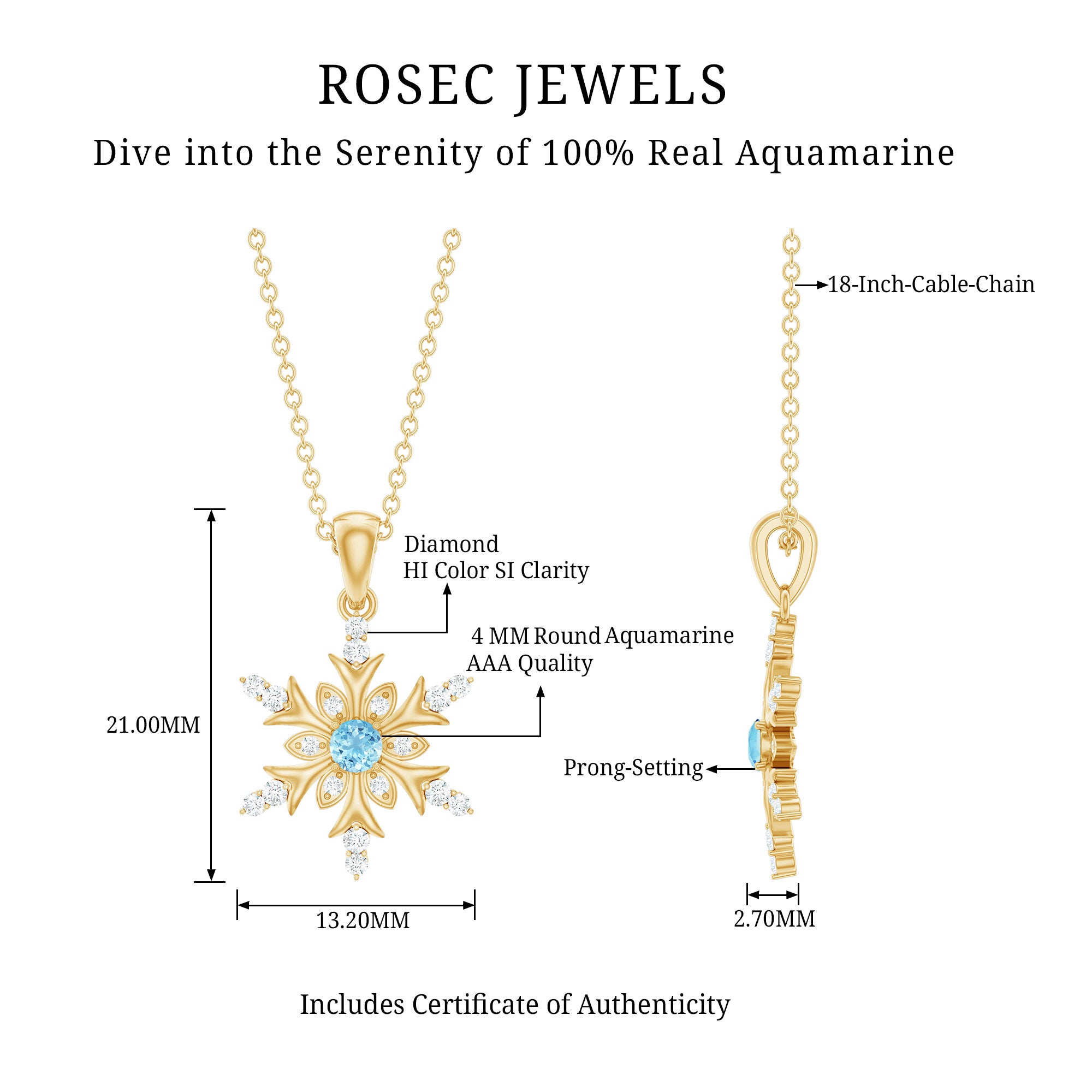 Rosec Jewels est votre destination unique pour tous les colliers de créateurs en or et aigue-marine. Nous vendons d'authentiques colliers d'aigue-marine pour femmes, fabriqués à la main à la perfection avec de l'or poinçonné. Que vous commandiez nos bijoux aigue-marine en or rose, en or blanc ou en or jaune, la livraison du produit sera gratuite. De plus, nous avons une politique de retour gratuit de 30 jours, afin de vous garantir confiance et sécurité. Achetez en ligne parmi notre vaste gamme de colliers à pendentif aigue-marine et restez à la mode.
