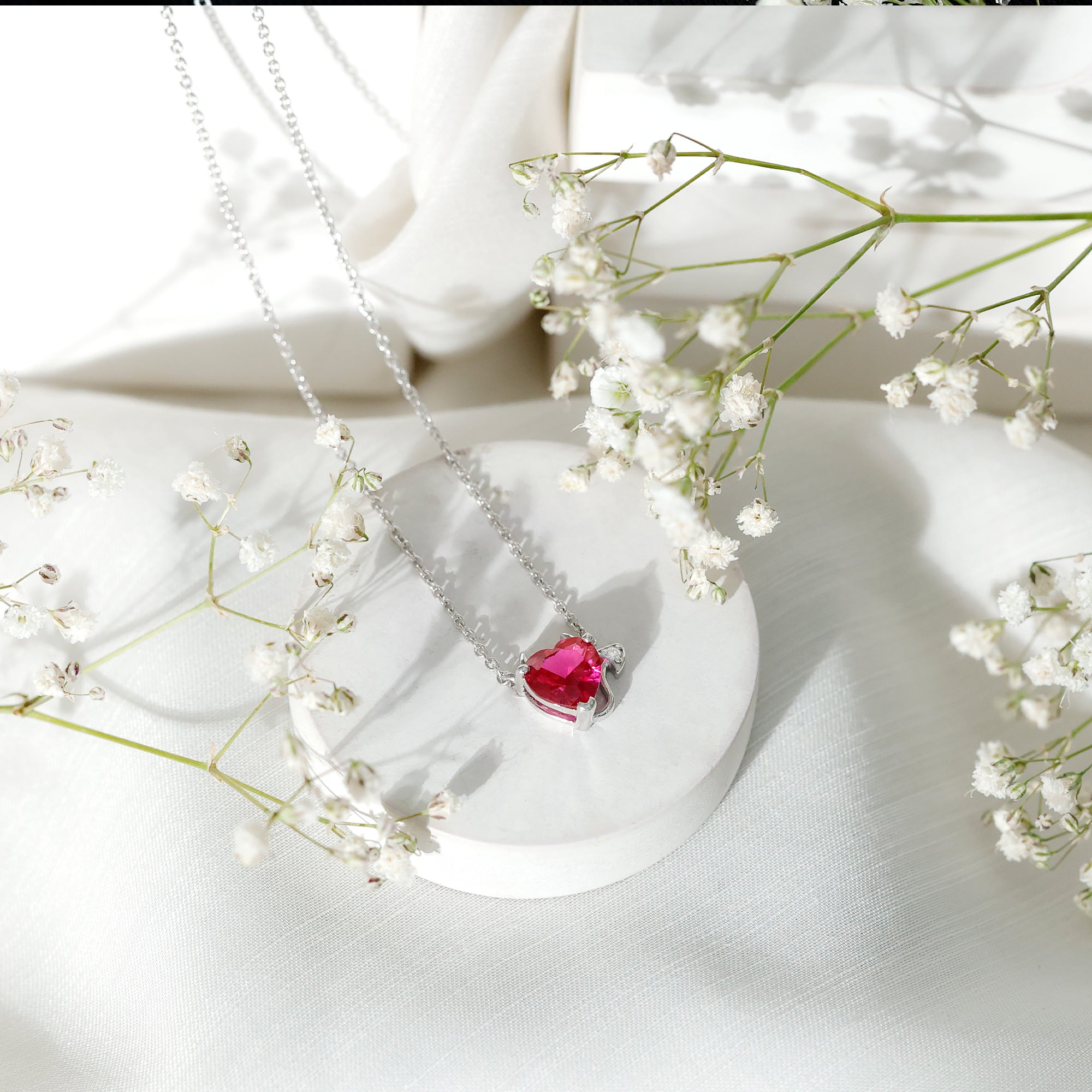 Ruby: Red ruby representing passion, love, and vitality is an ideal choice for your neck line, if love is your passion. Ruby necklaces are bold statement pieces, which are ideal for romantic occasions or as a symbol of eternal devotion.