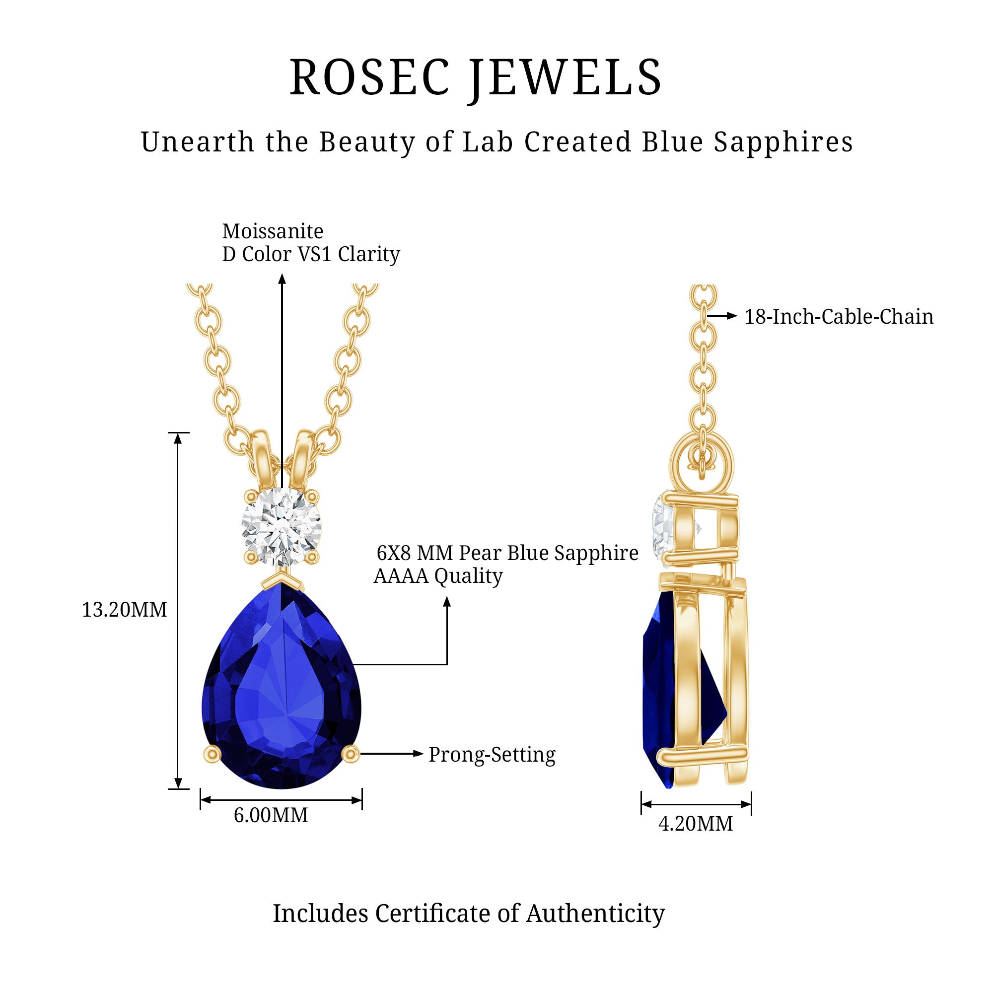 Handcrafted Authentic Jewelry: Necklaces are designed with certified gemstones, hallmarked metals, and great attention to create a piece with every detail shining.
