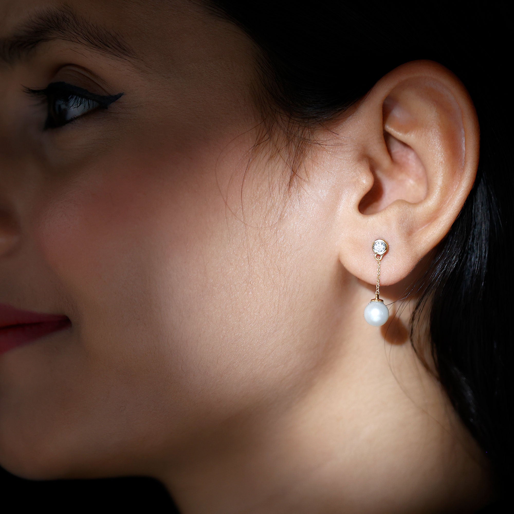 Boucles d'oreilles pendantes en perles | Boucles d'oreilles pendantes en diamant | Boucles d'oreilles pendantes pour femmes | Boucles d'oreilles pendantes en forme de cœur