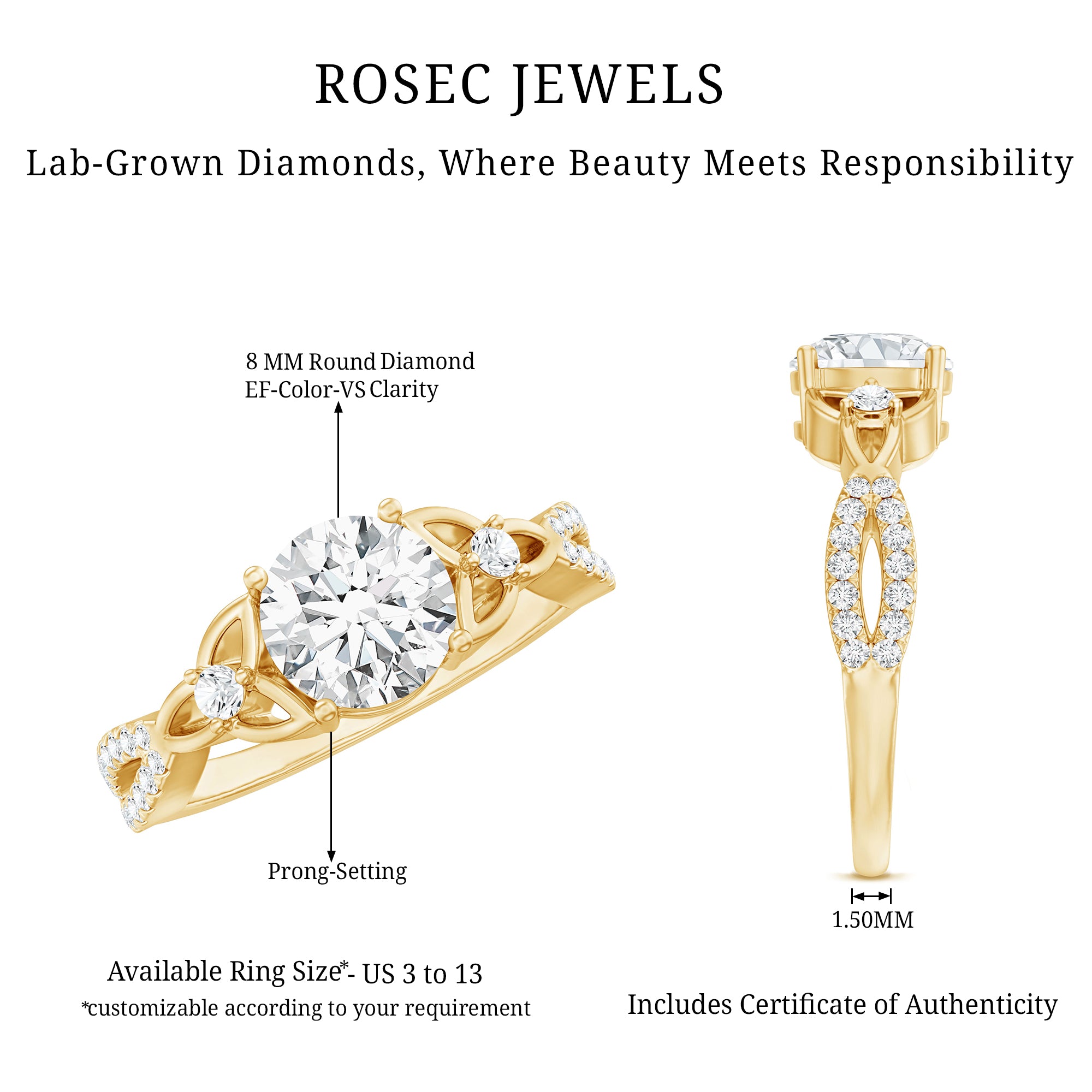 Round-Cut Solitaire Rings: These lab diamond solitaire rings feature classical round-cut gemstone with maximized sparkle.
