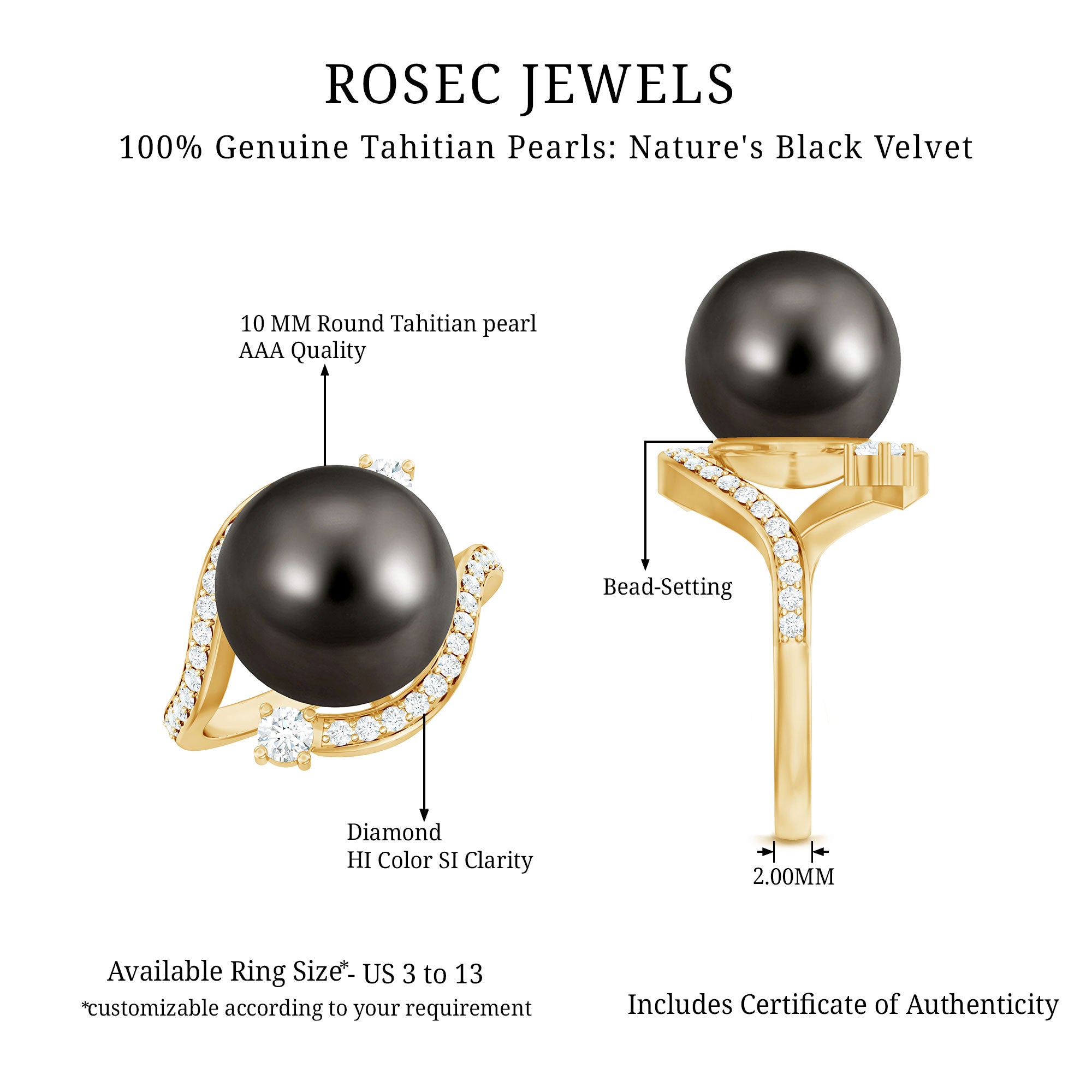 Rosec Jewels est une entreprise indépendante de fabrication artisanale de bijoux. Nous vendons des bijoux en perles de Tahiti haut de gamme, des alliances à la bague vintage en perles noires, nous avons tout certifié dans notre magasin. Offrant une politique de retour gratuit de 30 jours pour combler de bonheur les clients du monde entier, notre société se consacre à vous offrir des services gratuits.