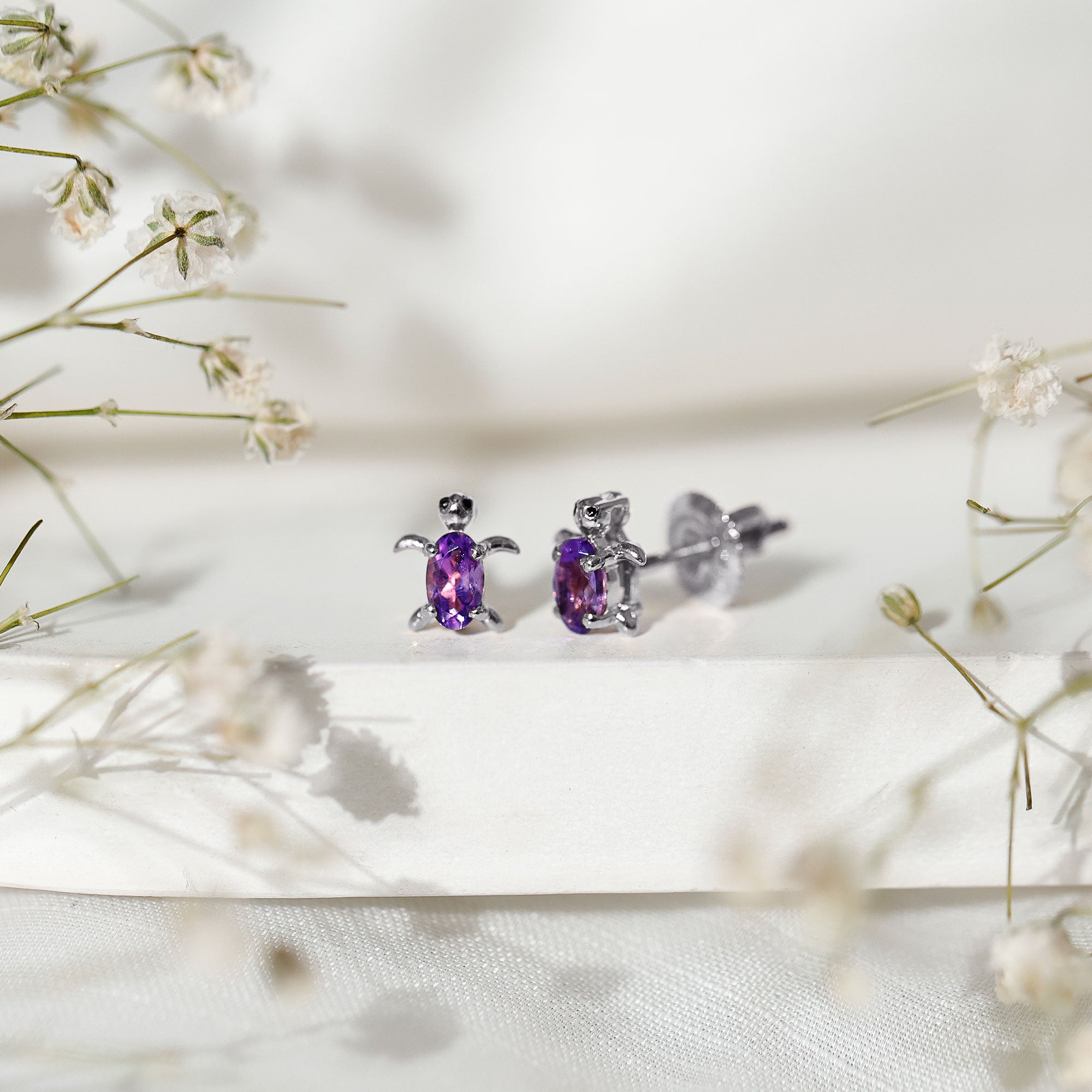 Adorablement conçues, ces boucles d'oreilles tortue constituent un choix tendance pour les occasions décontractées. Ces jolies boucles d'oreilles à tige en forme d'animal sont ornées d'améthyste de taille ovale et confectionnées en or pour un look charmant.