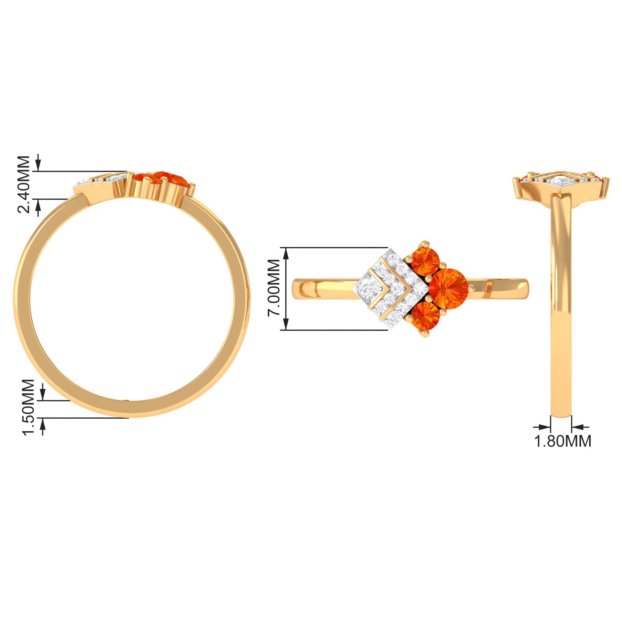 Équilibrant élégance et glamour, cette bague Art déco est ornée de saphir orange de forme ronde et de diamant. Offrez à l'être aimé un cadeau qu'elle chérira pour toujours et symbolisez votre amour avec cette magnifique bague de fiançailles.
