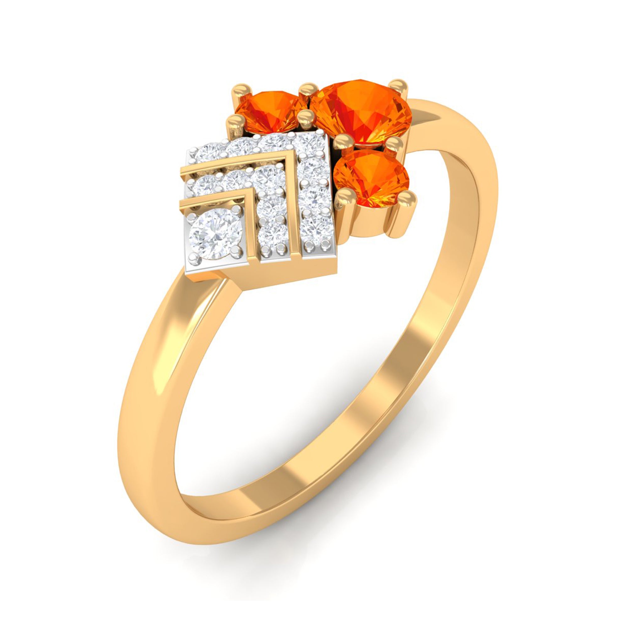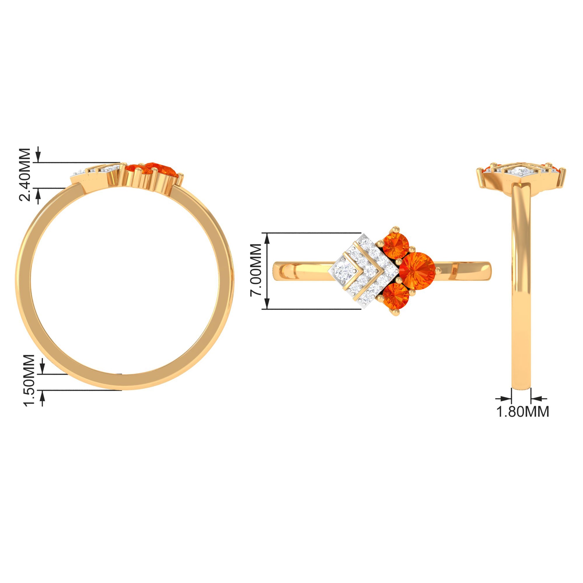 Bague de fiançailles Art Déco Saphir Orange 1/2 CT avec Diamant